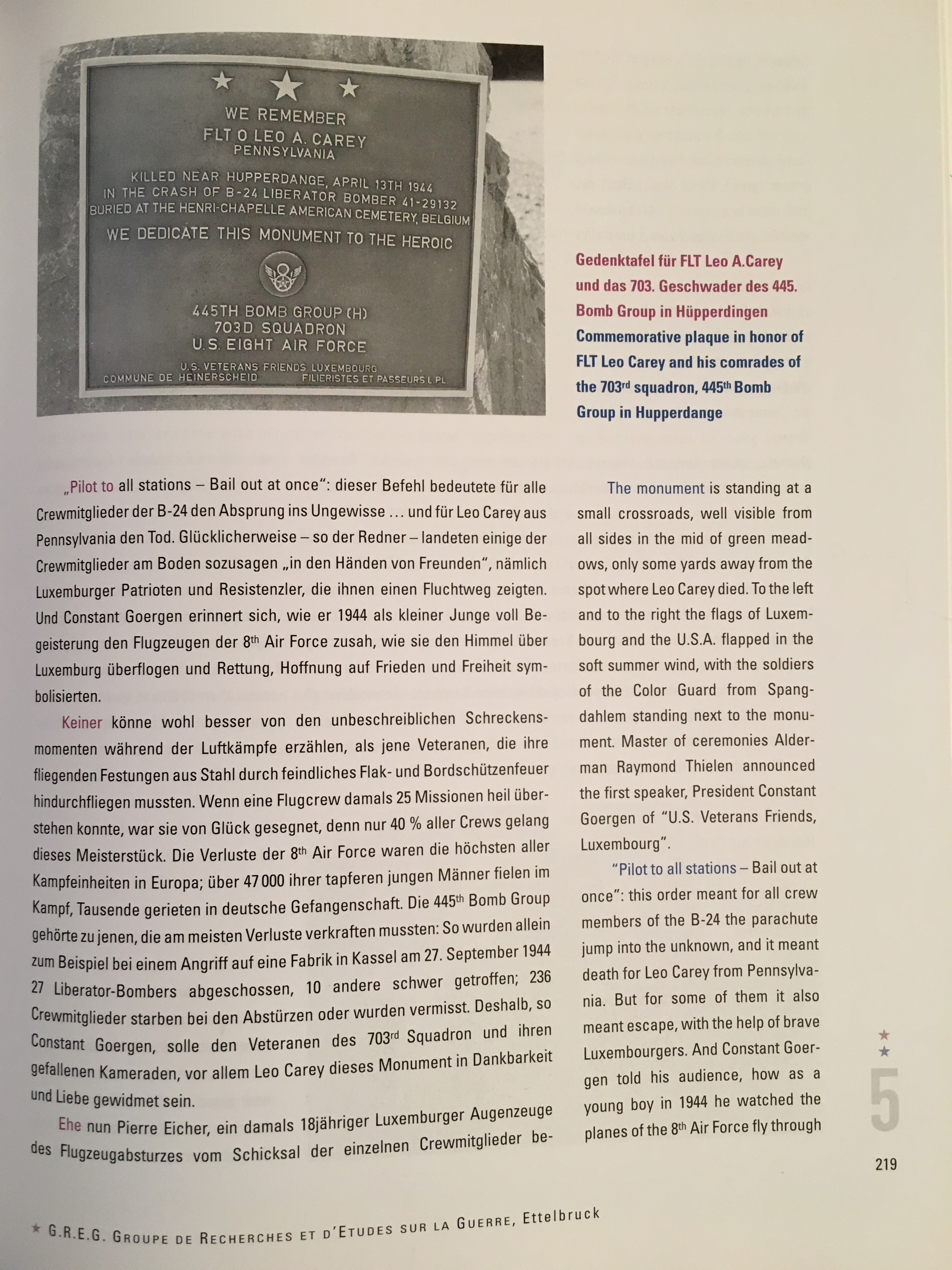 Hupperange_Monument_445th_Bomb_Group_Extrait_Livre_USVFL_Mir_soen_Merci_2002