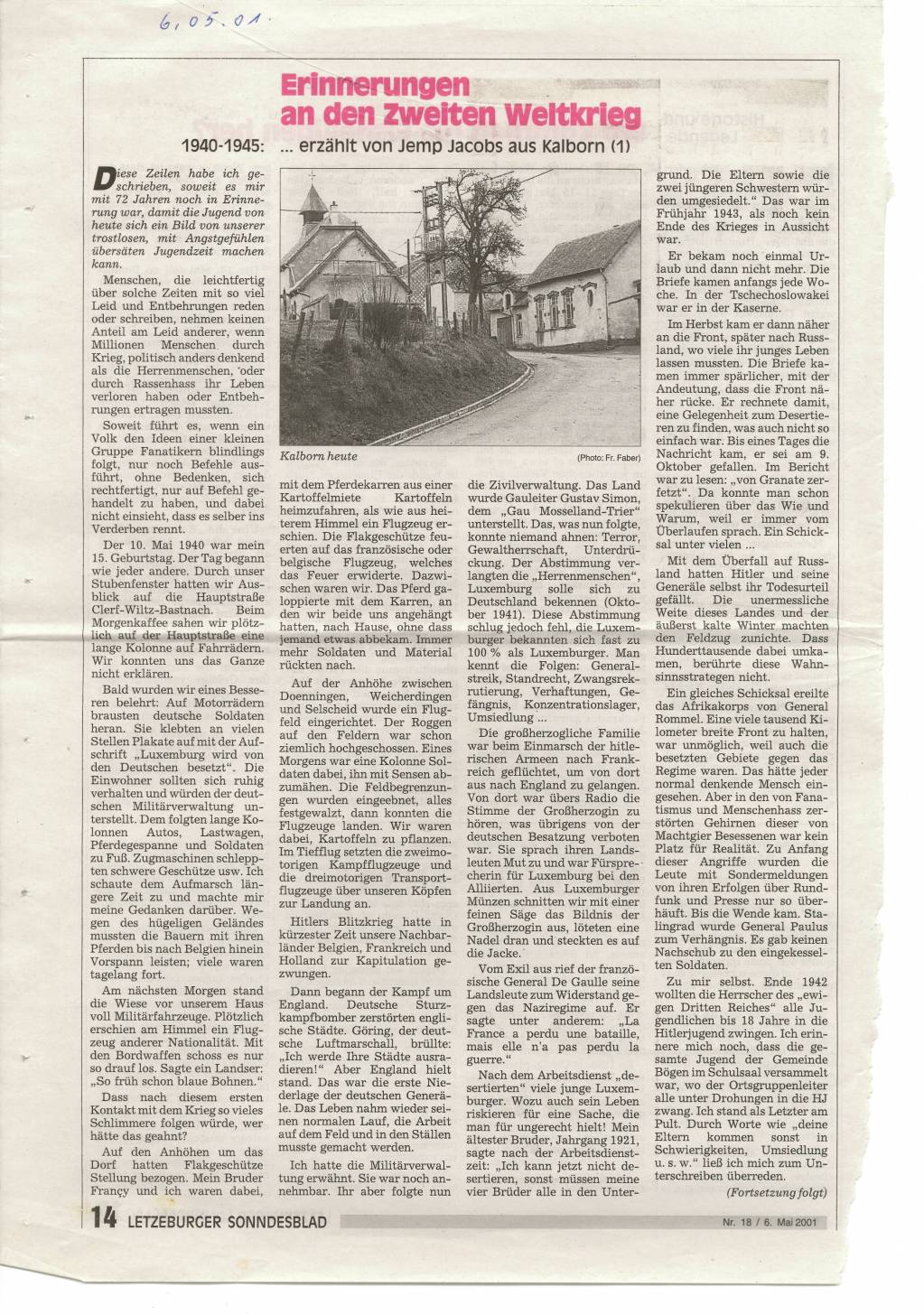 Jacobs Jemp Kalborn Sonndesblad 06.05.2001