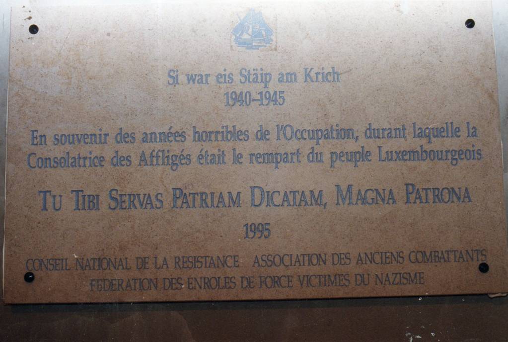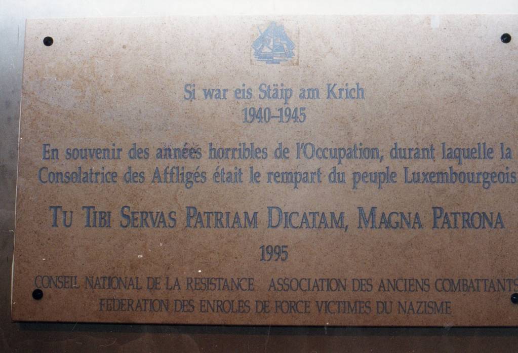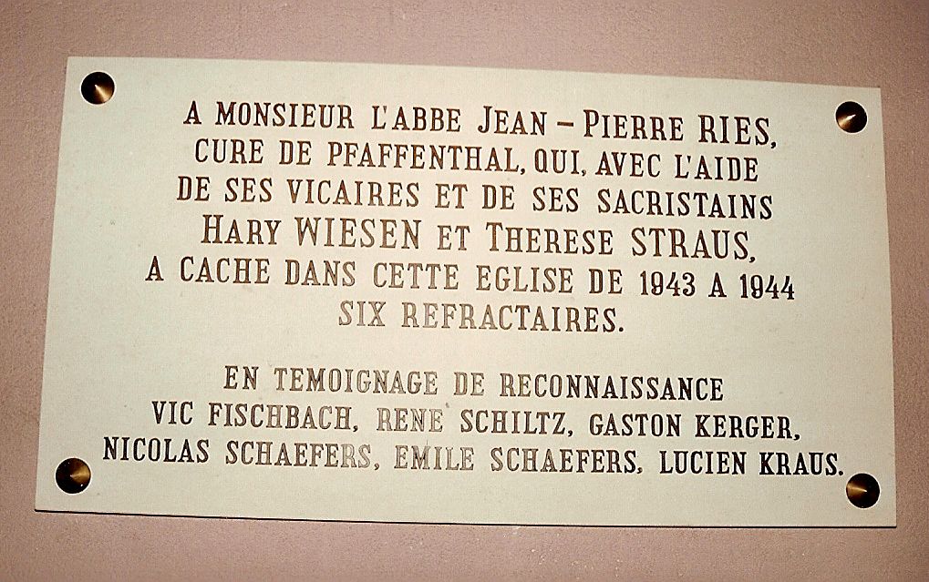 Pafendaller Kiirch, Plaque bannen an der Kiirch, 6 Refraktären, 1, rue Vauban HOHENGARTEN.jpg
