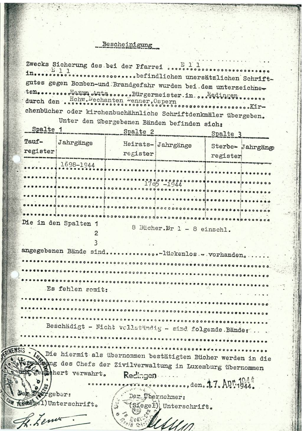 Archives Communale REDANGE Kirchenbücher [Untitled]001.jpg Télécharger le document [Untitled]002.jpg Télécharger le document Dt Horchposten Eltz-Ospern, FRANKC Eugène Bettborn img443.jpg Télécharger le document