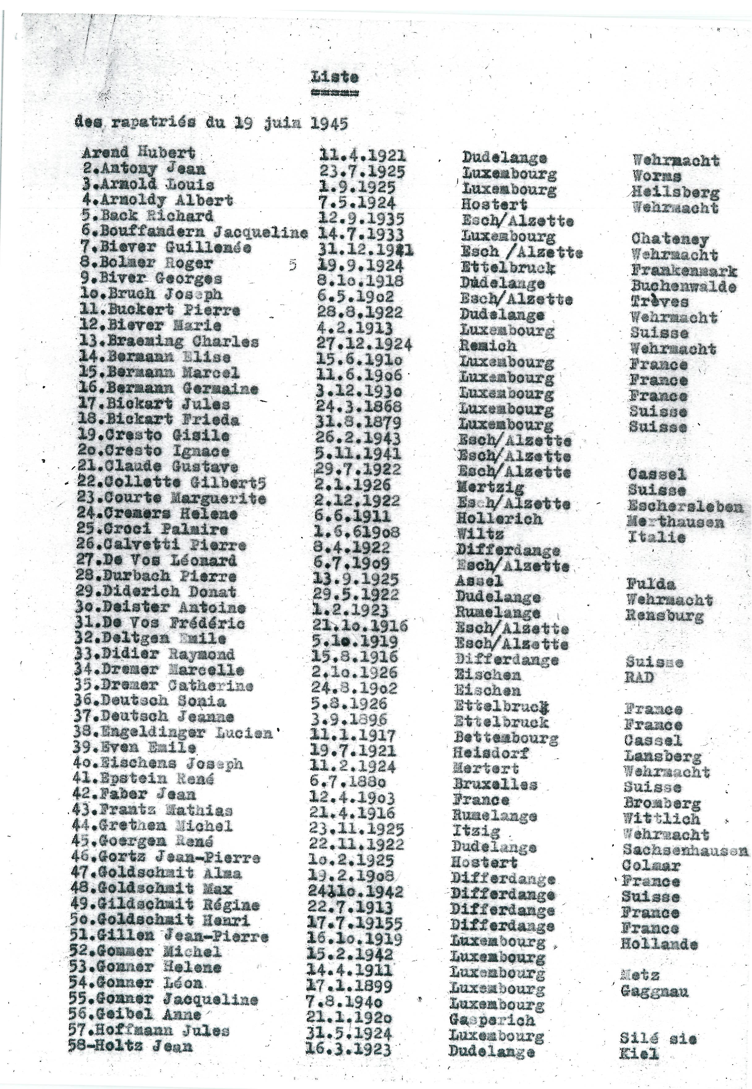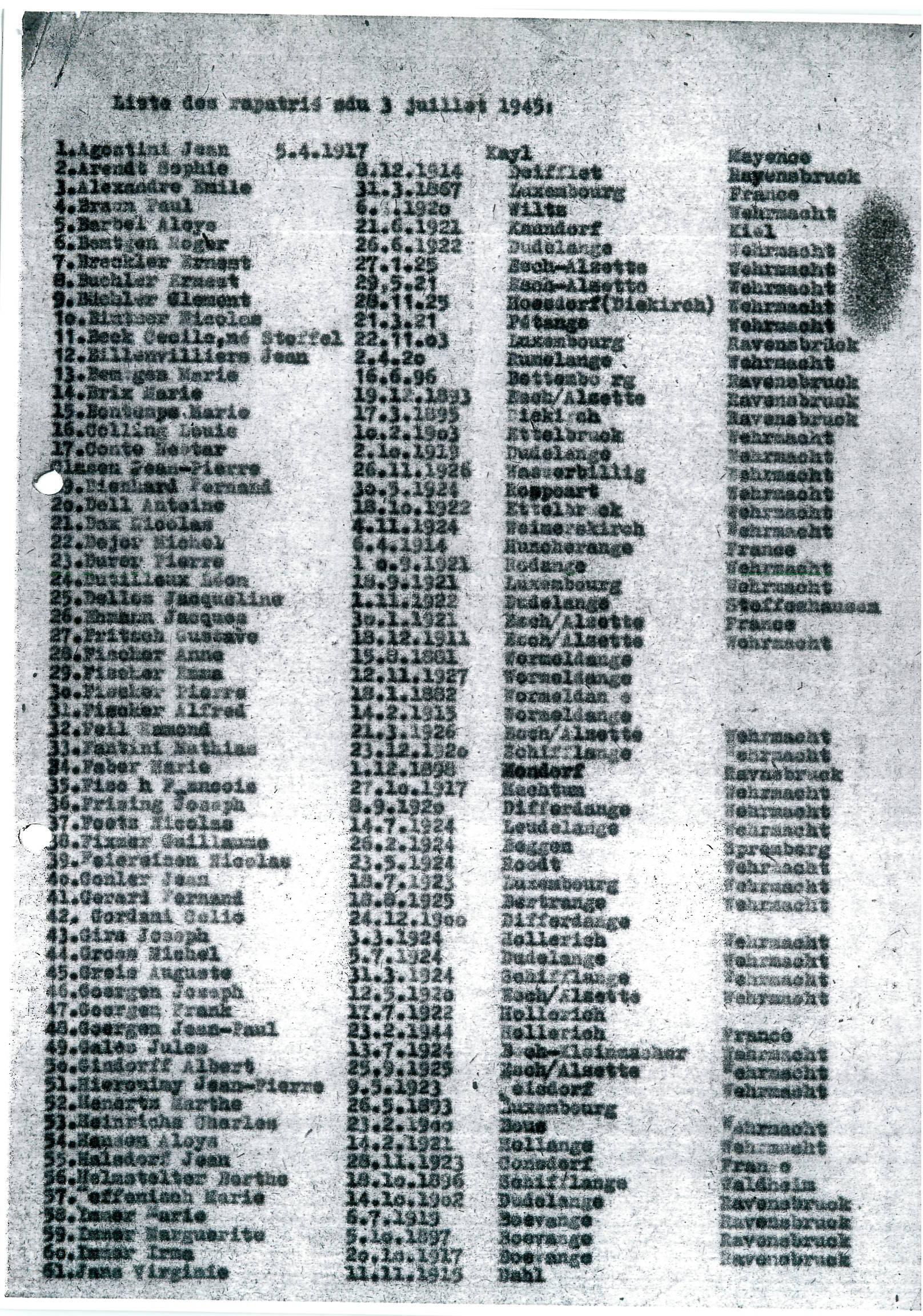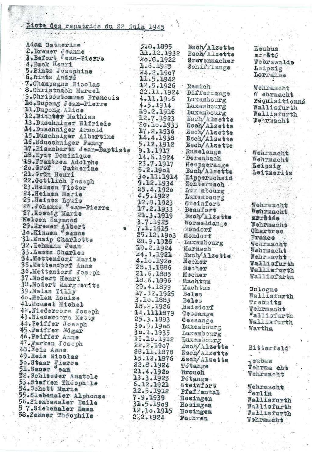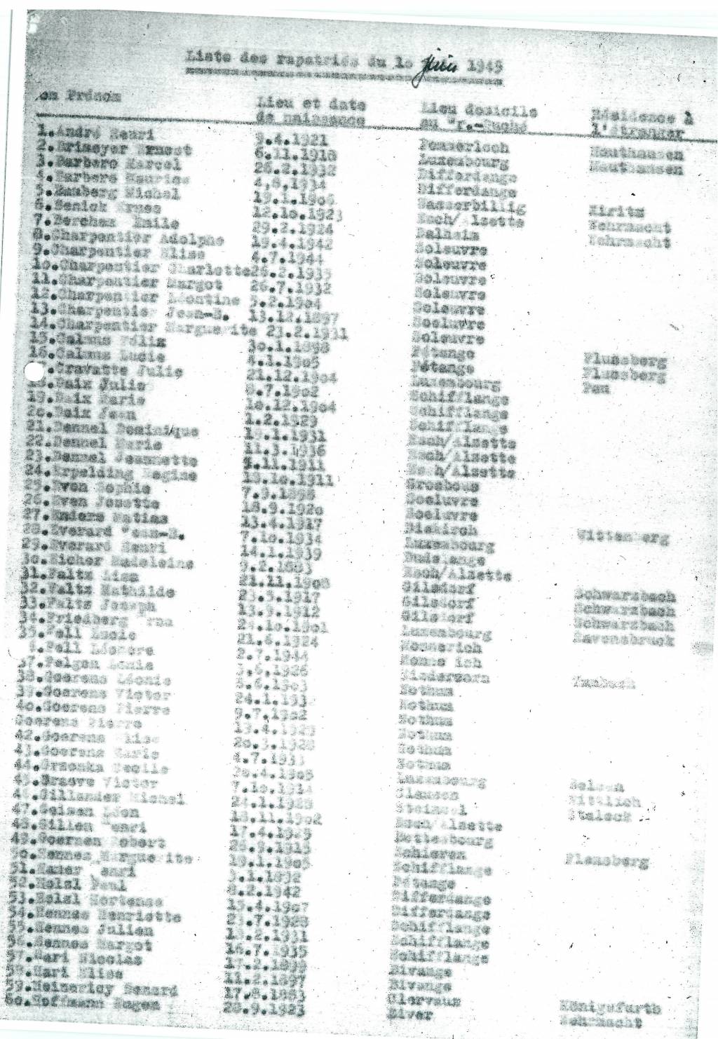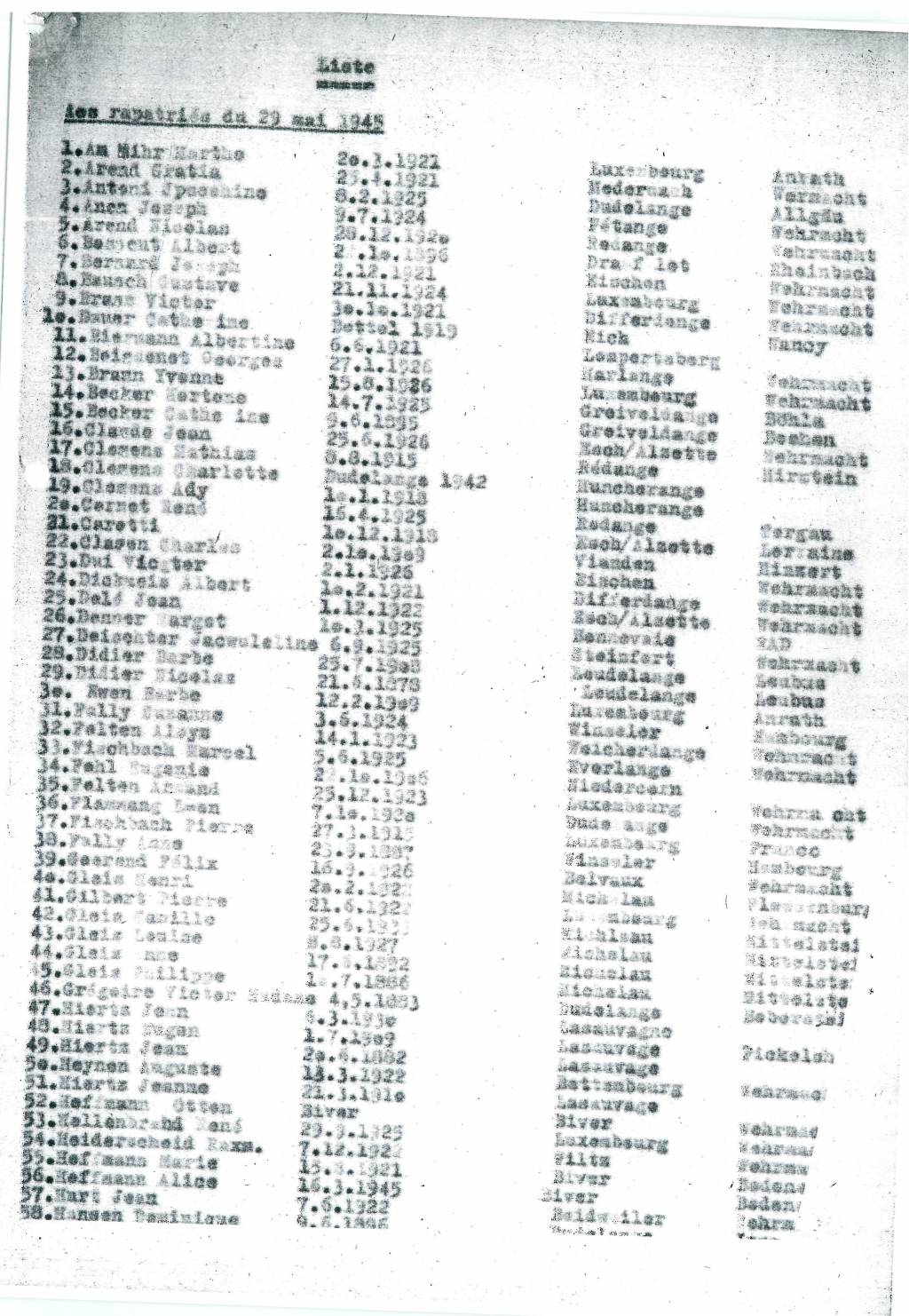 Rapatriés en 1945 POW Liste EDF HOLLERICH