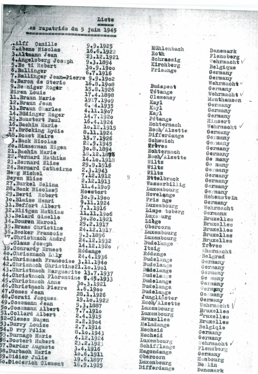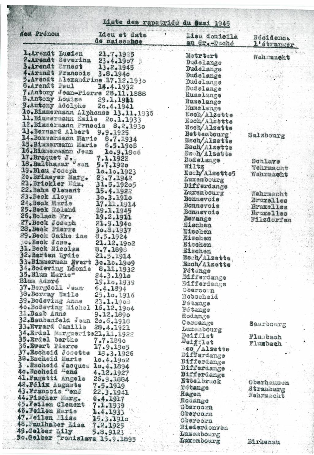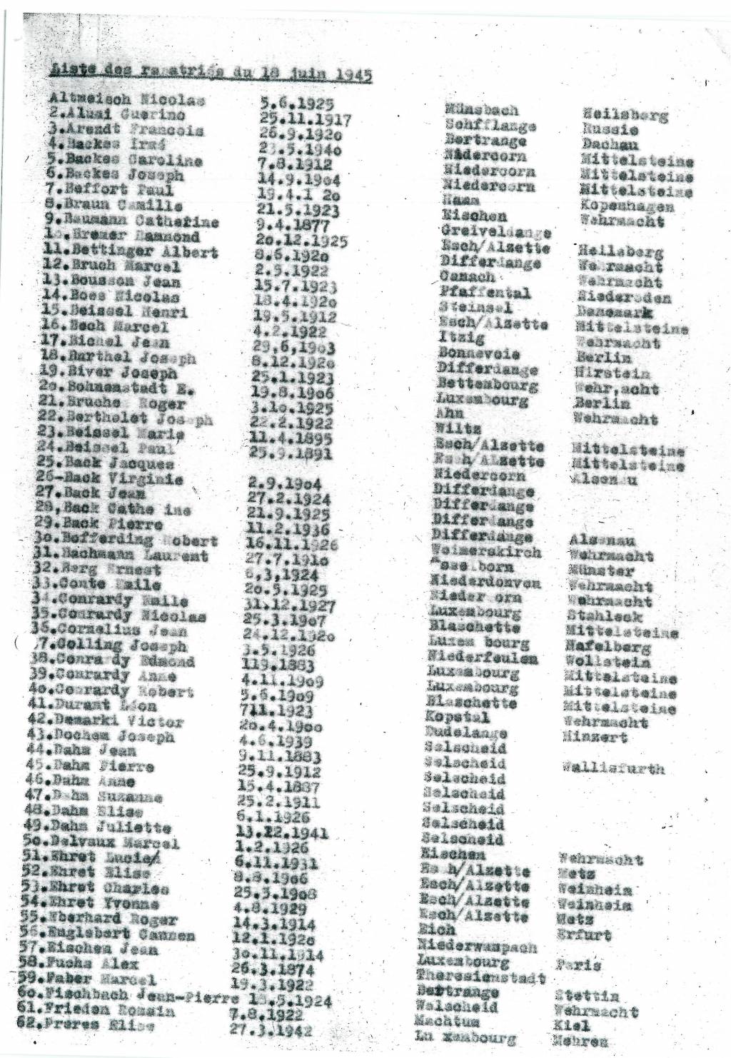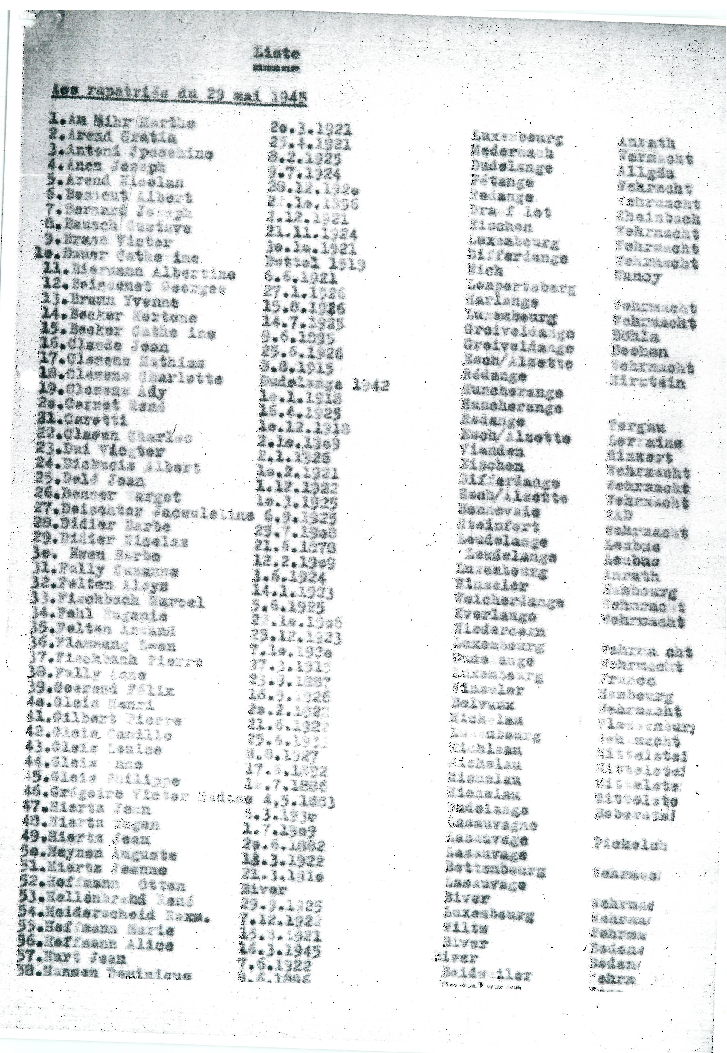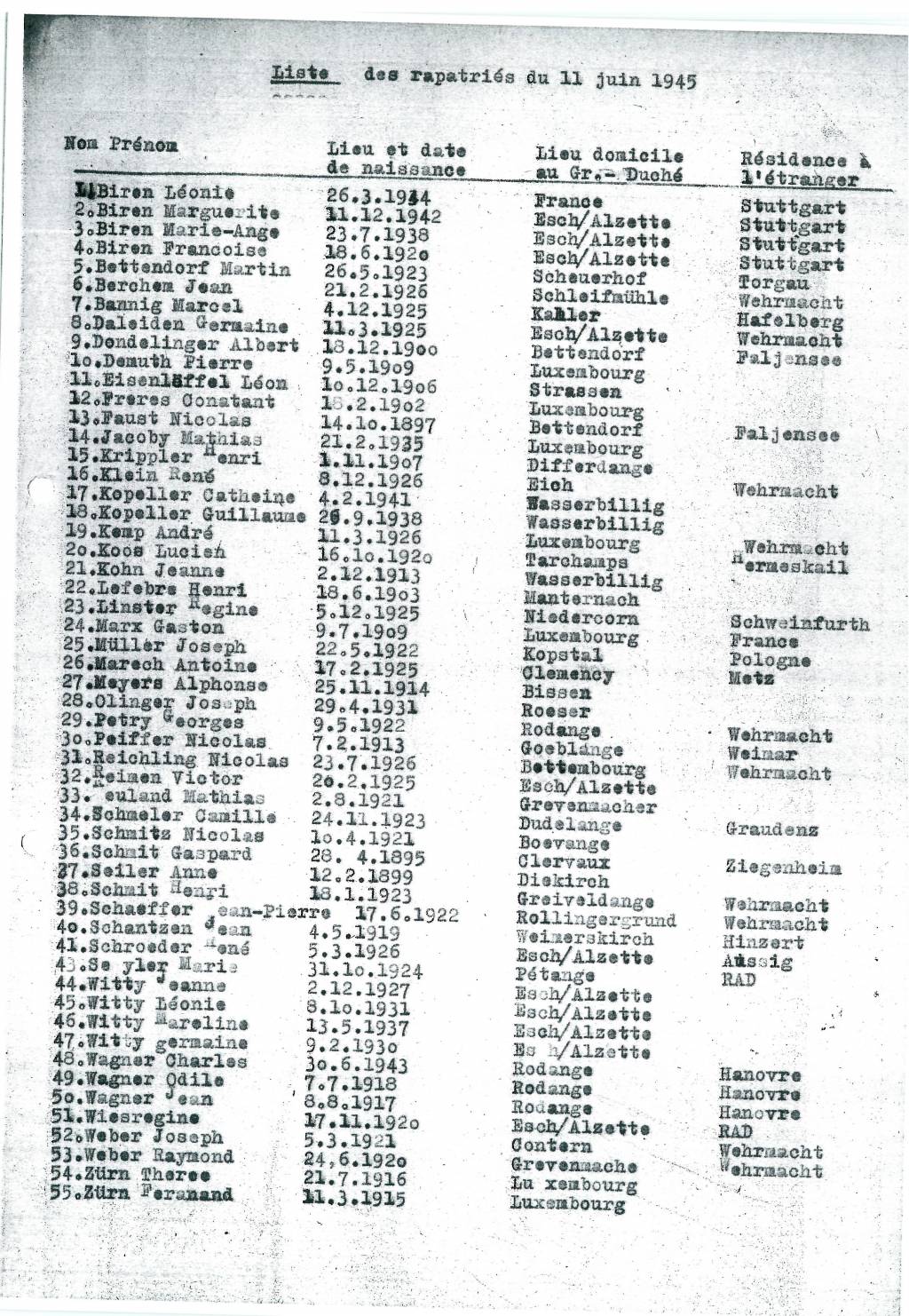 Rapatriés en 1945 POW Liste EDF HOLLERICH