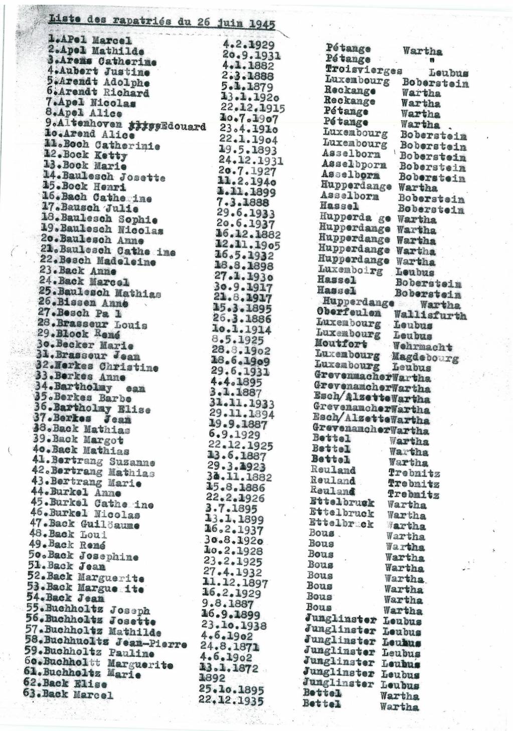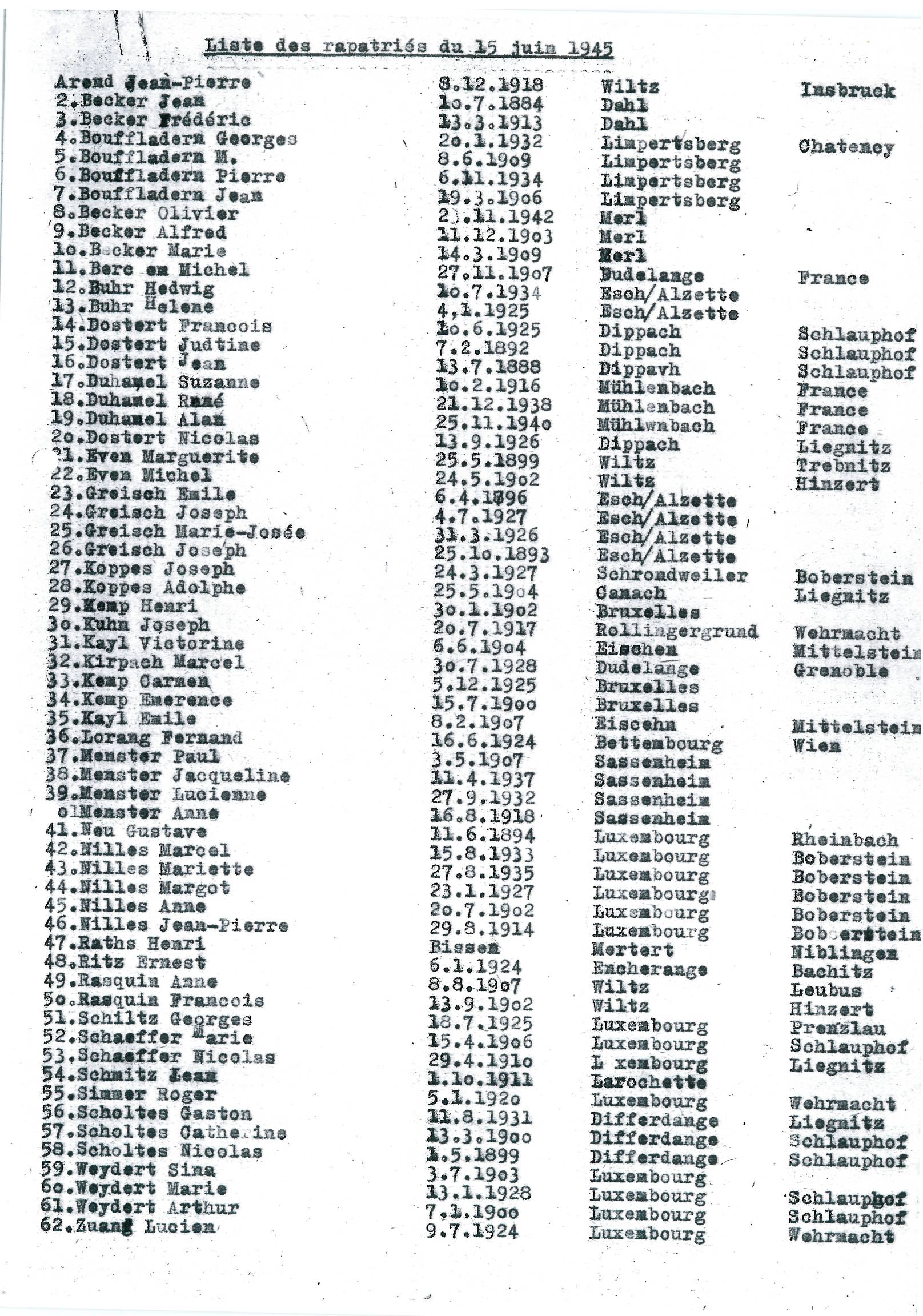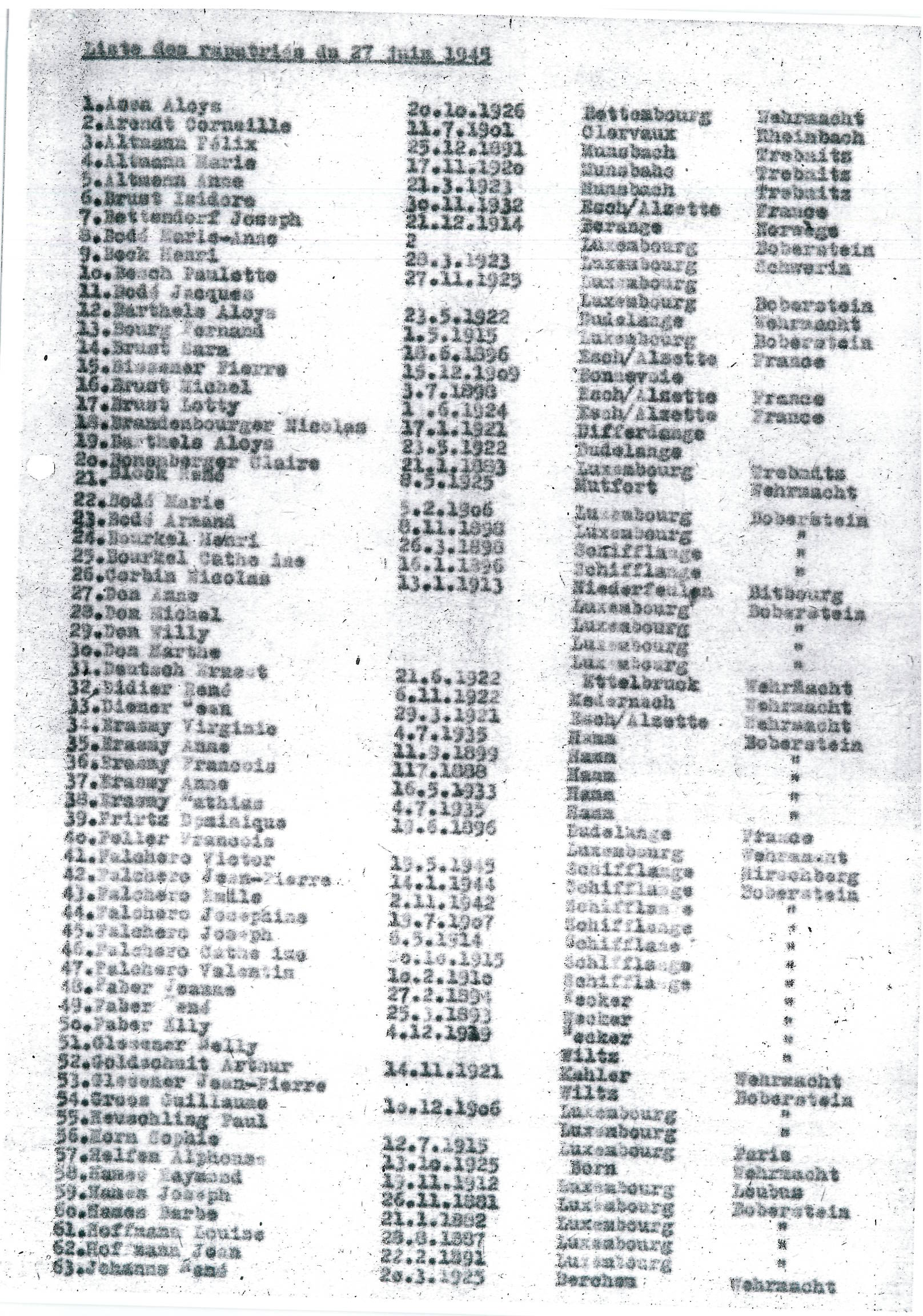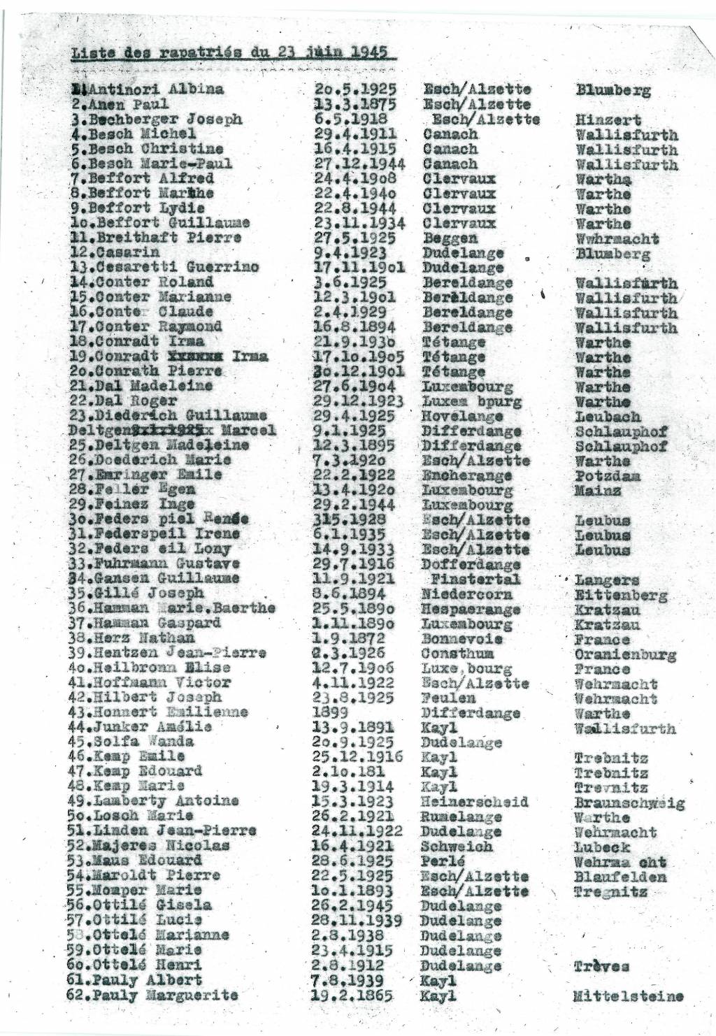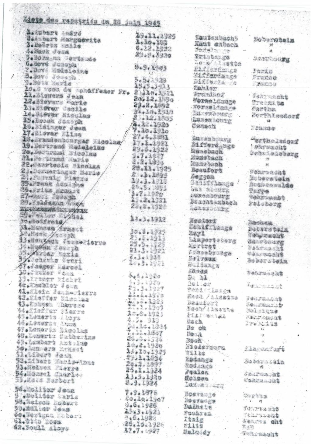 Rapatriés en 1945 POW Liste EDF HOLLERICH