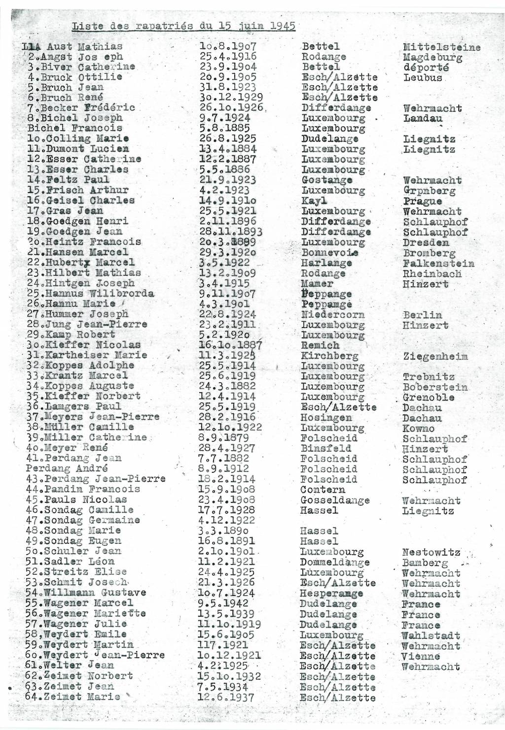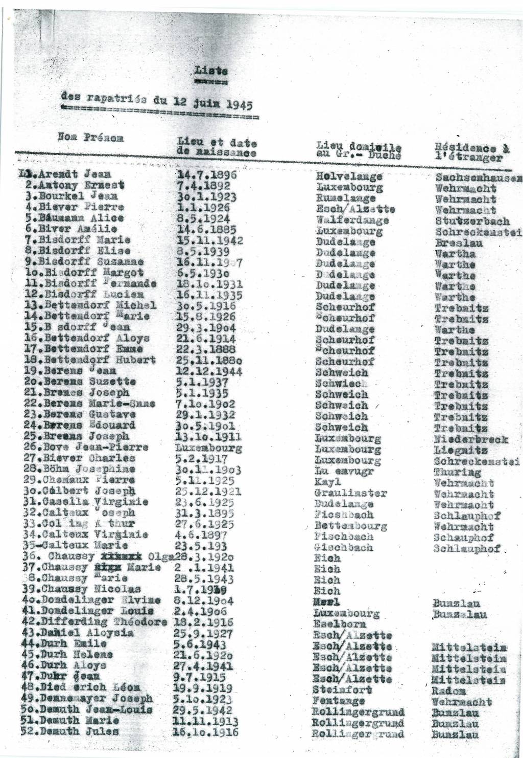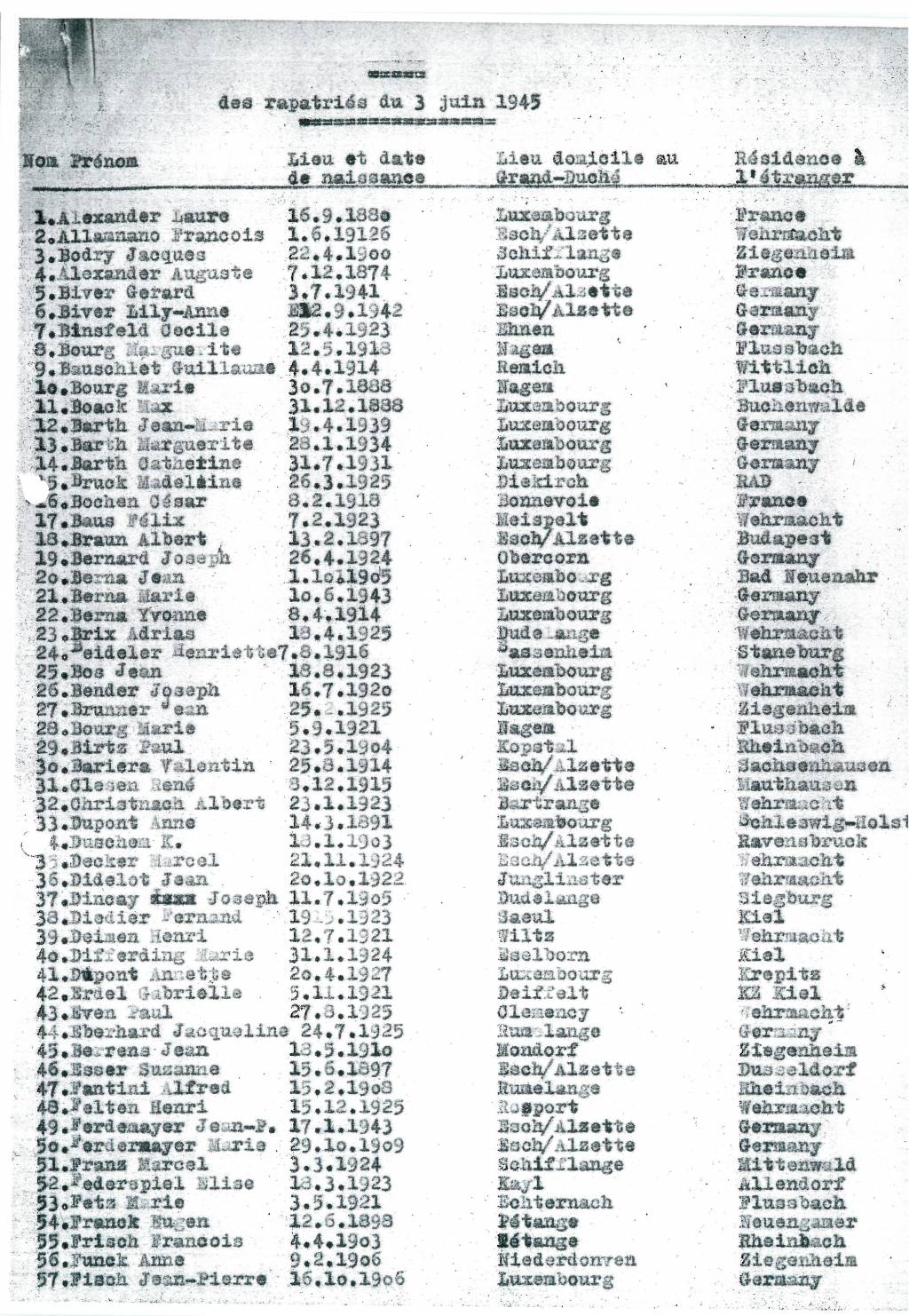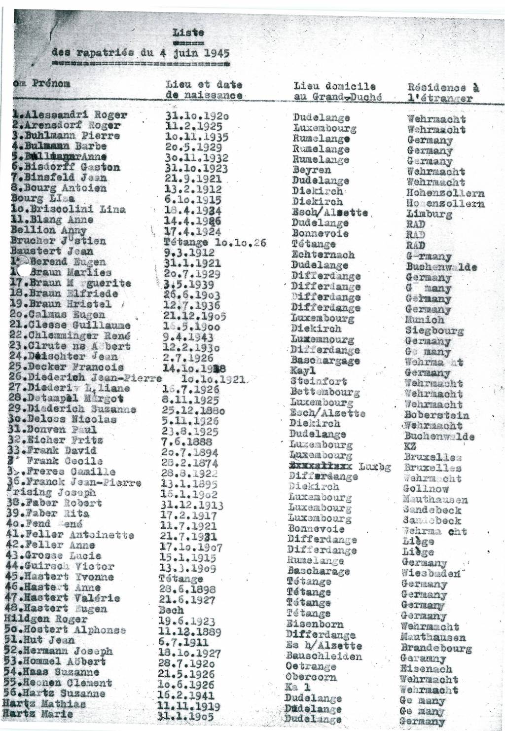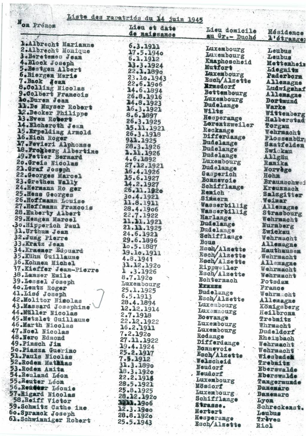 Rapatriés en 1945 POW Liste EDF HOLLERICH