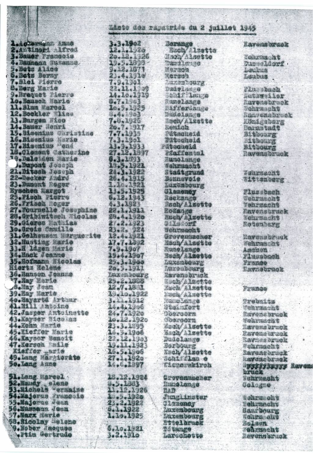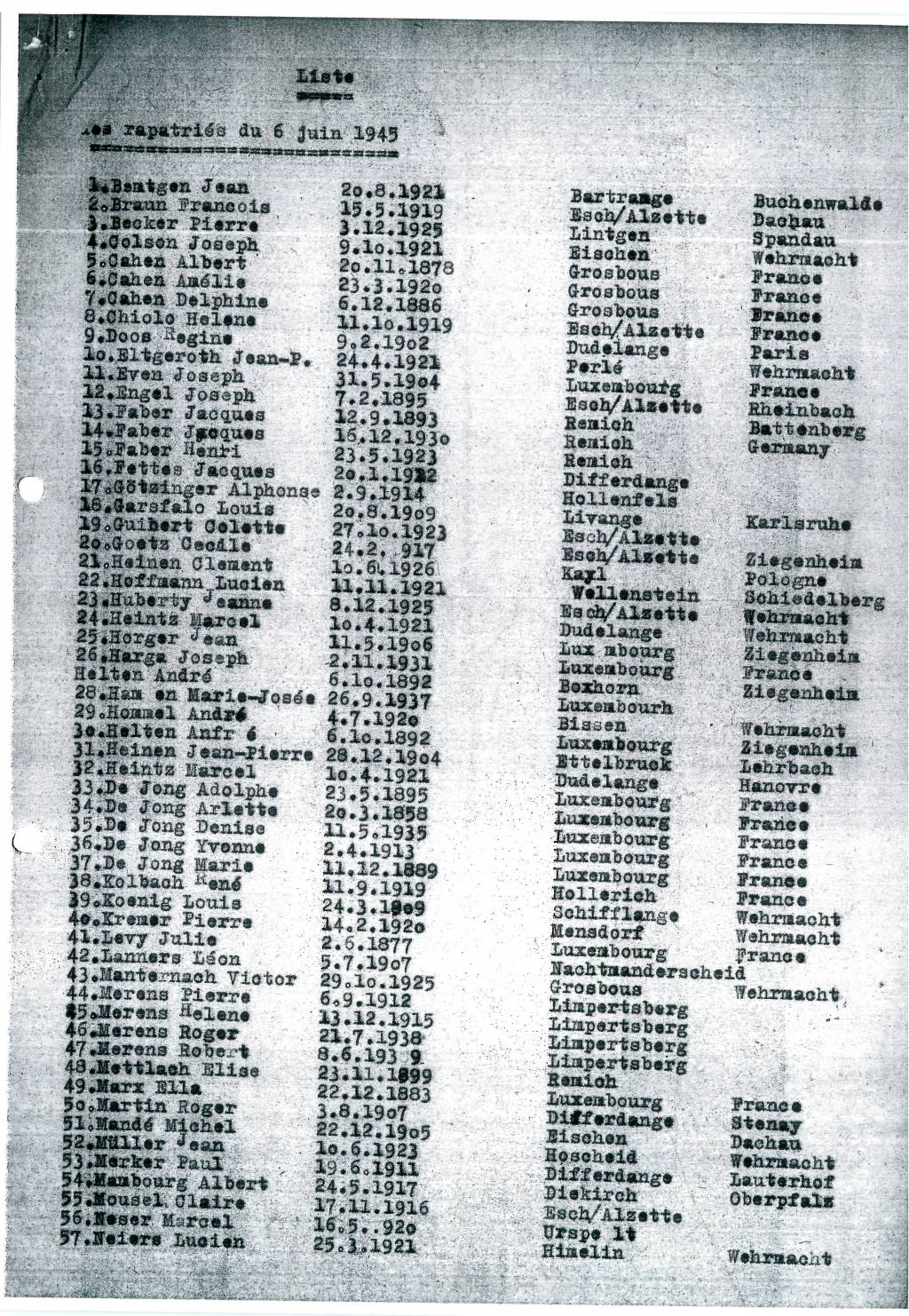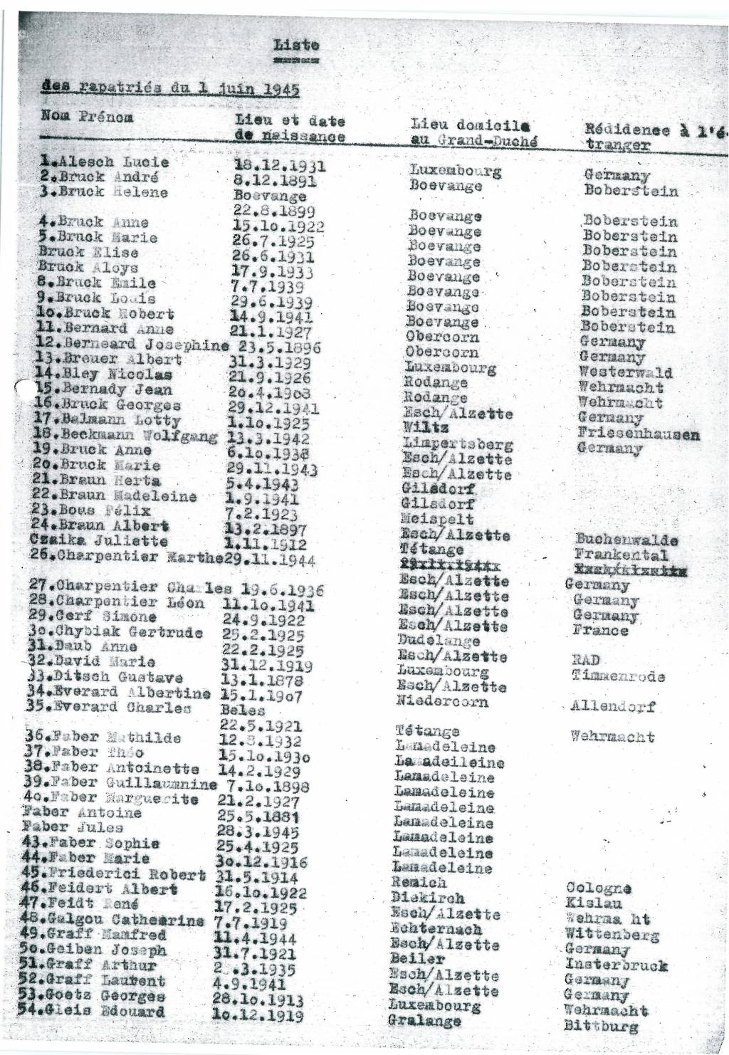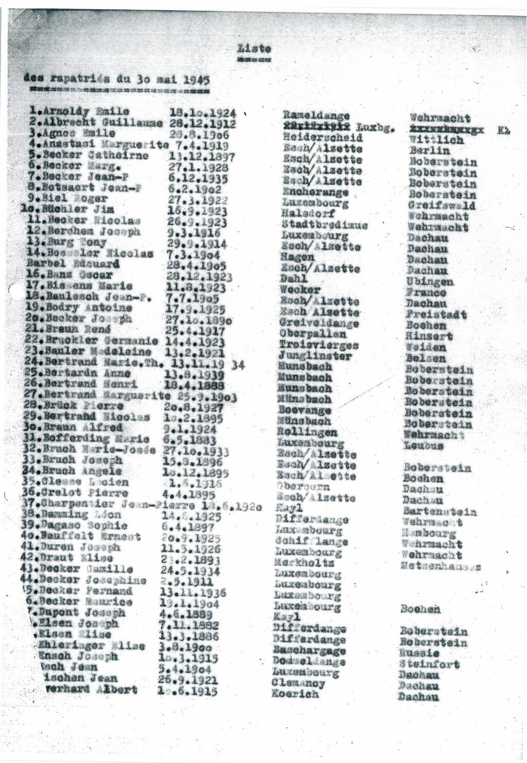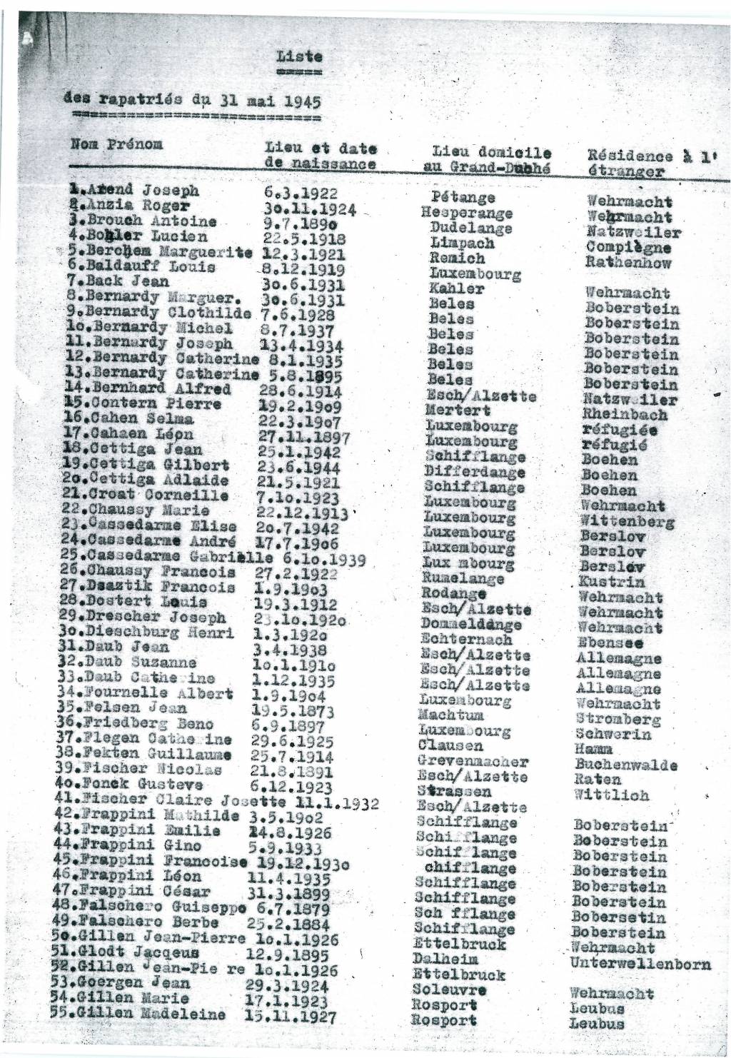 Rapatriés en 1945 POW Liste EDF HOLLERICH