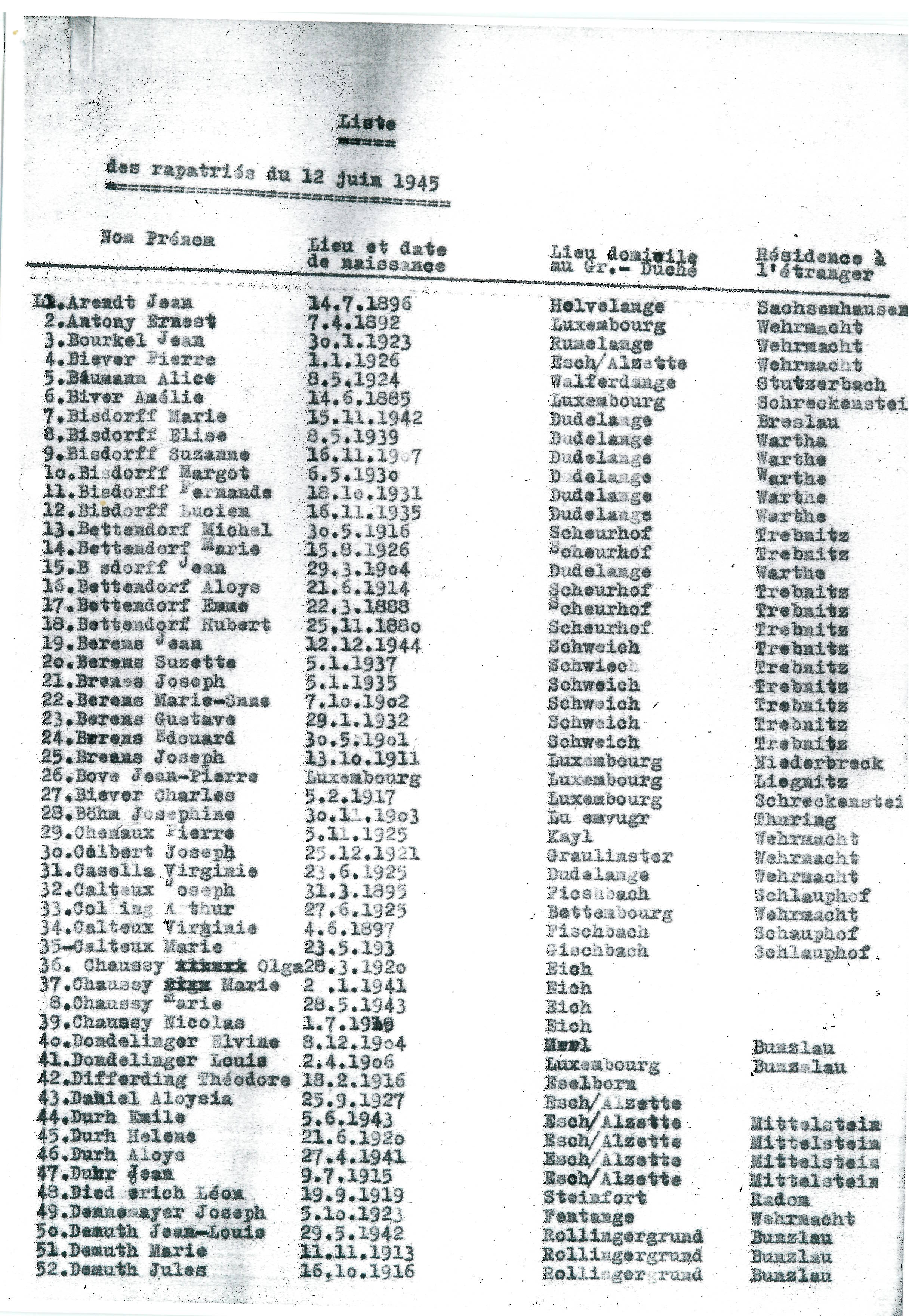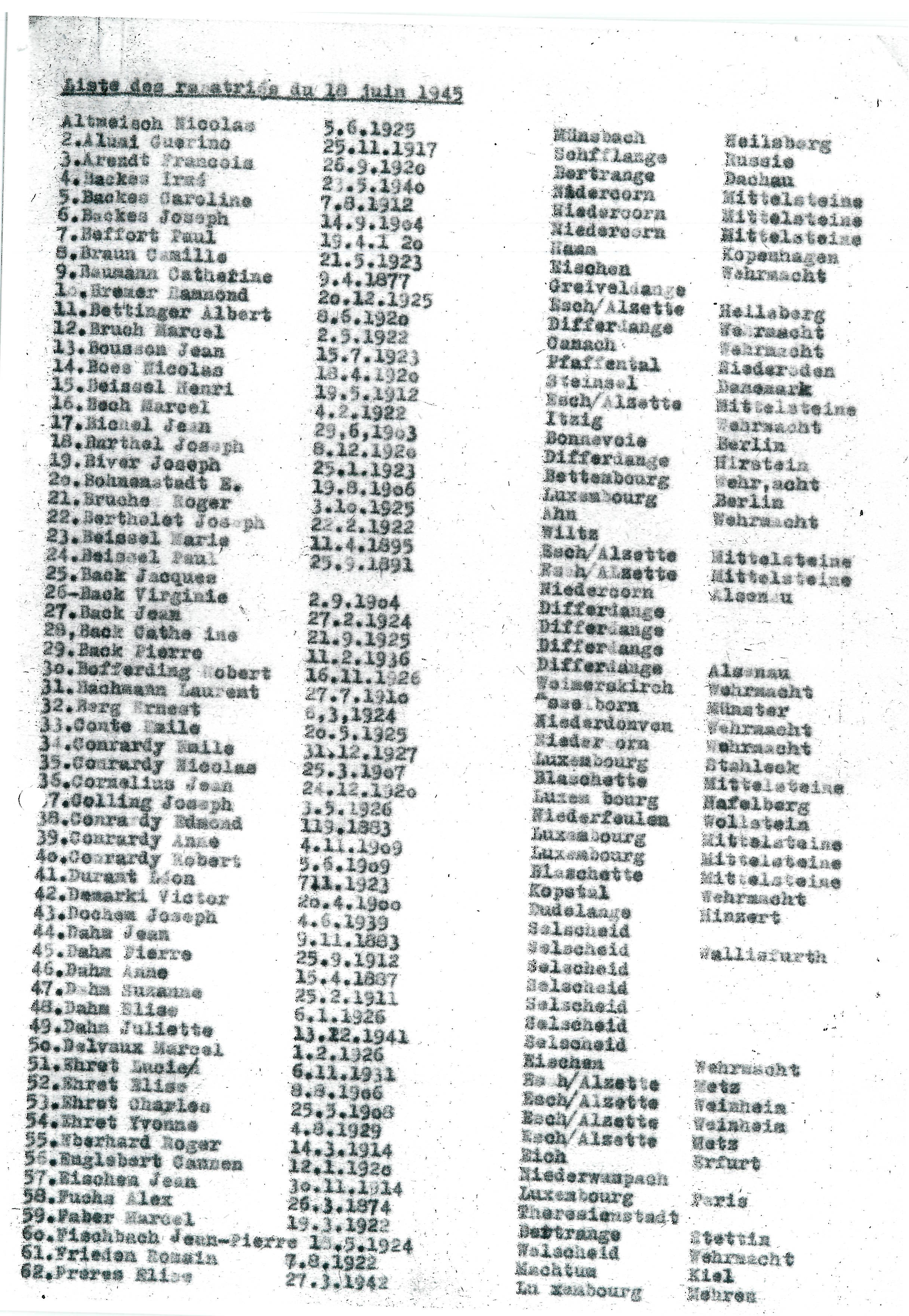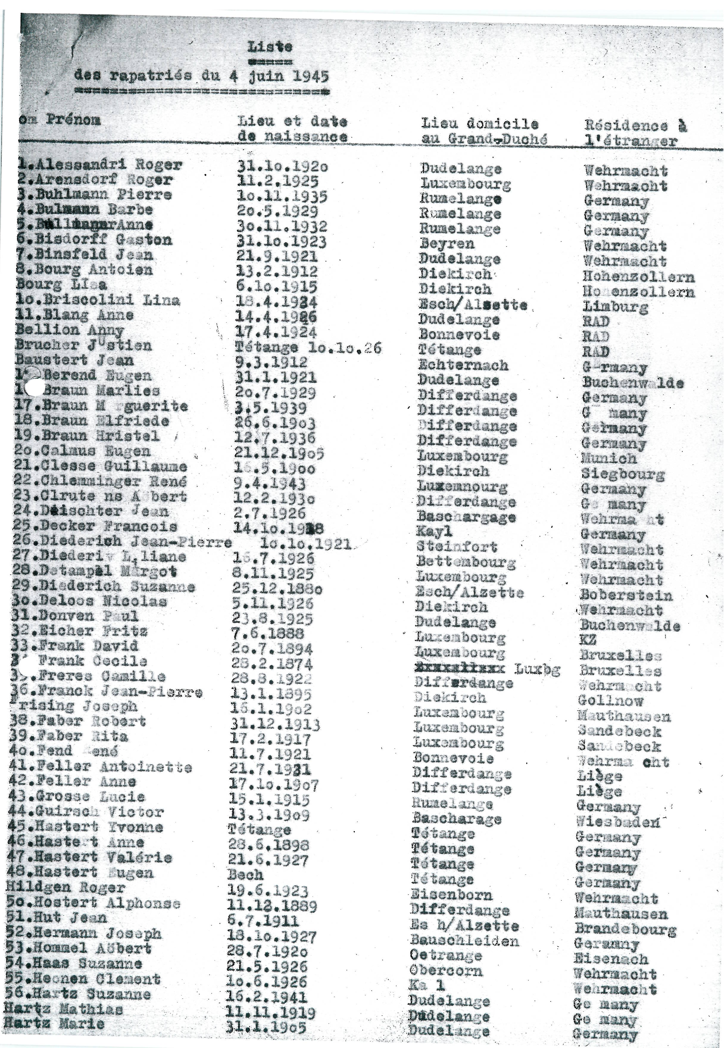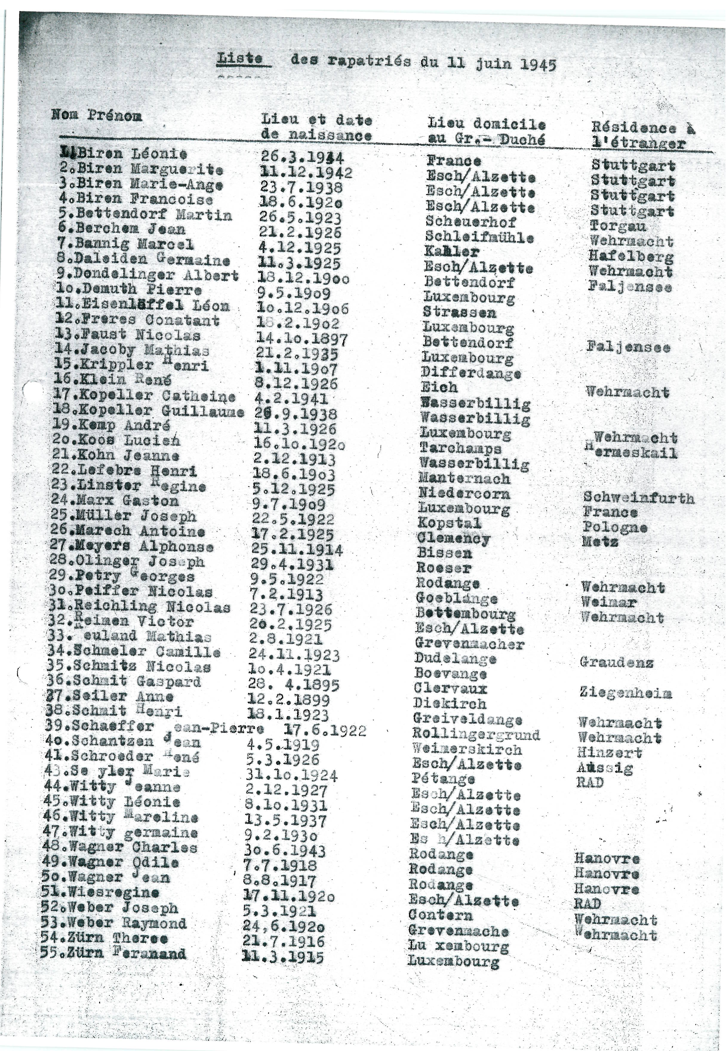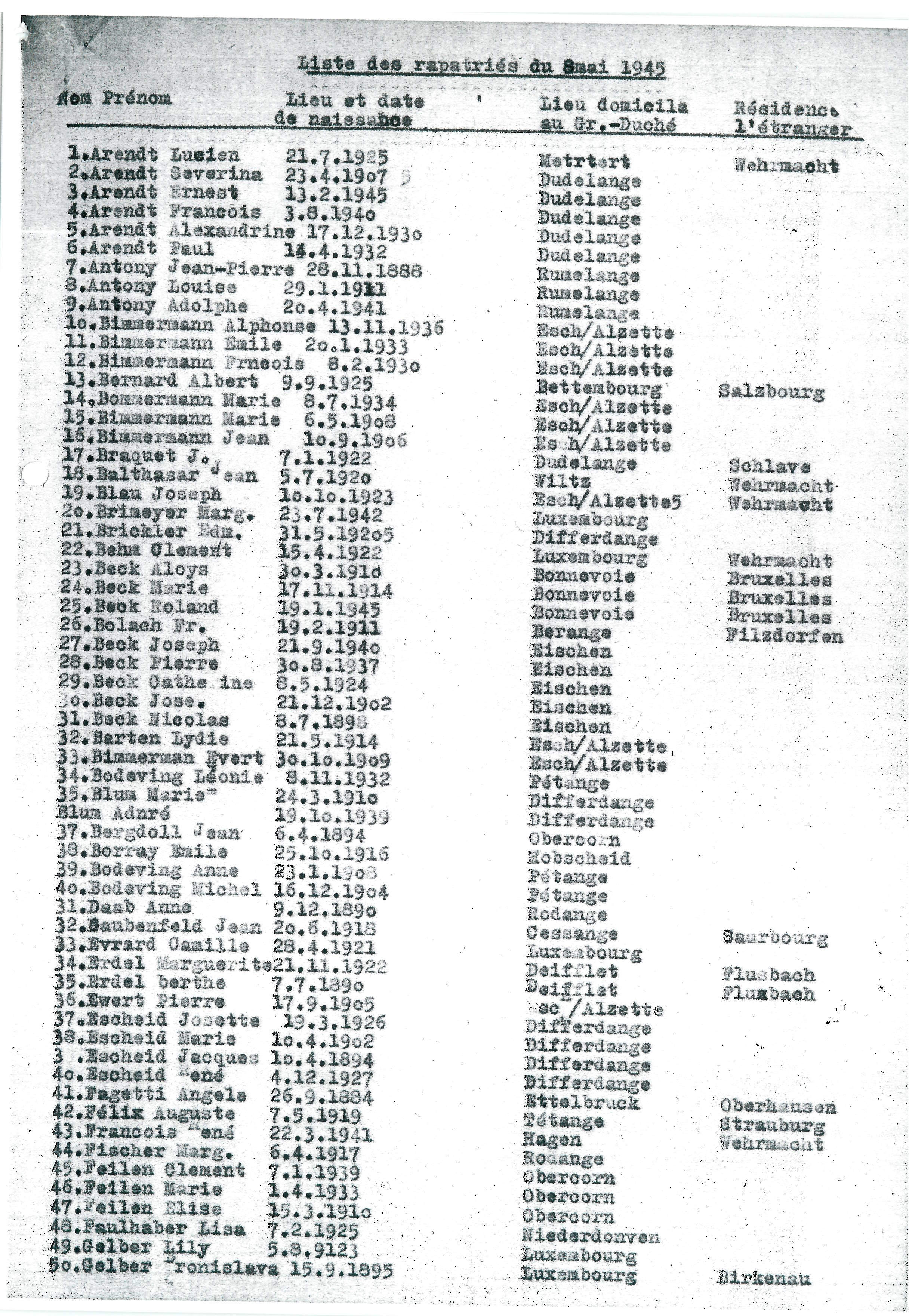 Rapatriés en 1945 POW Liste EDF HOLLERICH