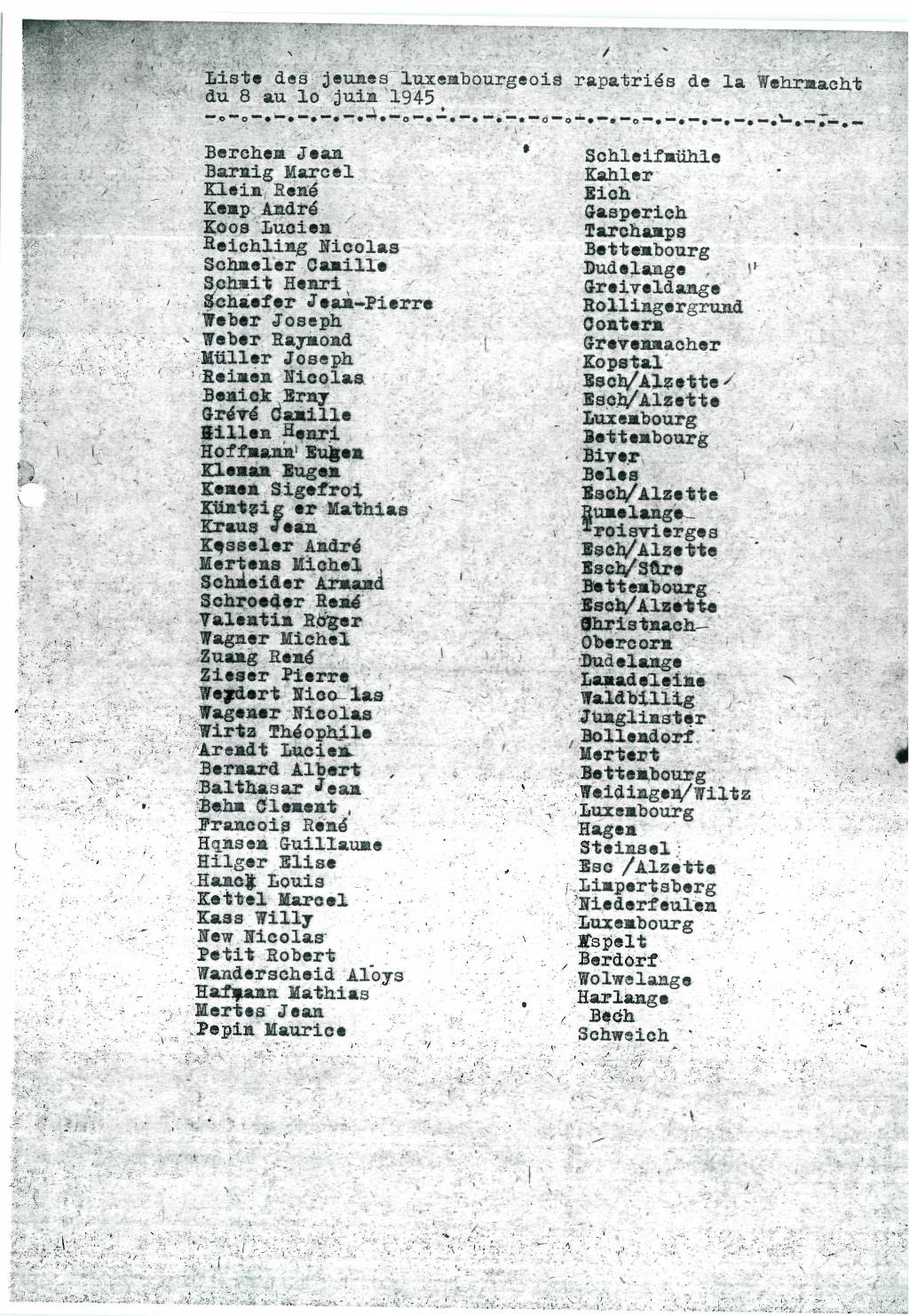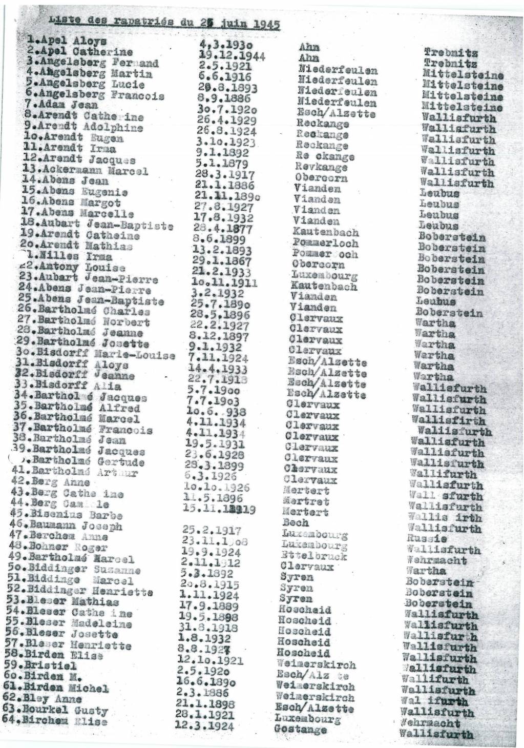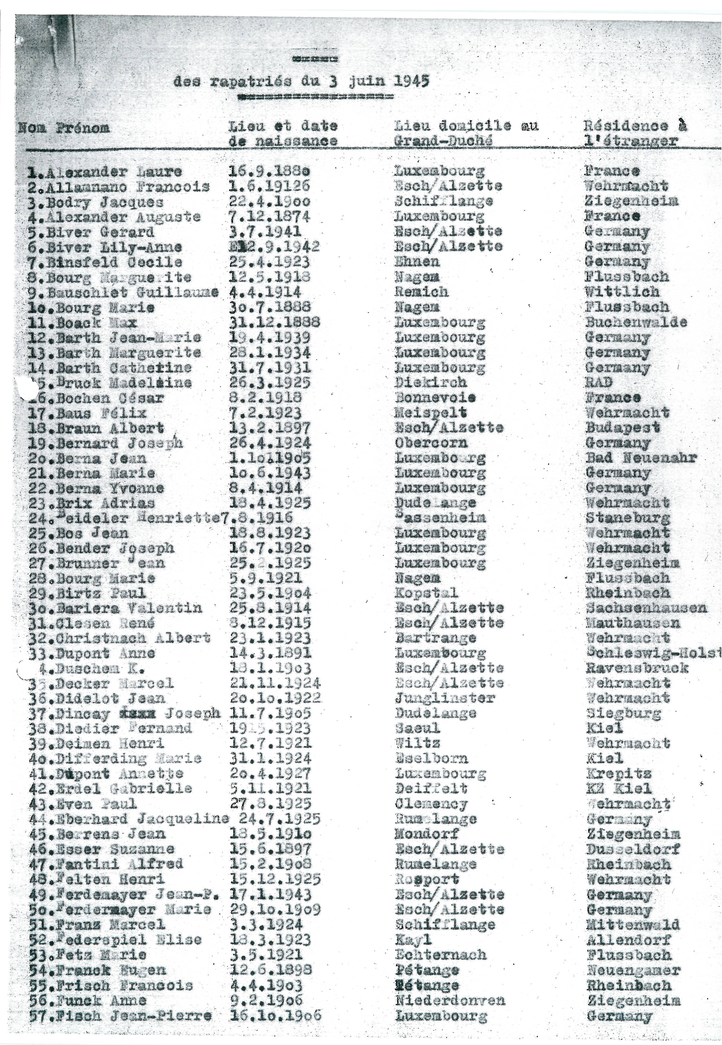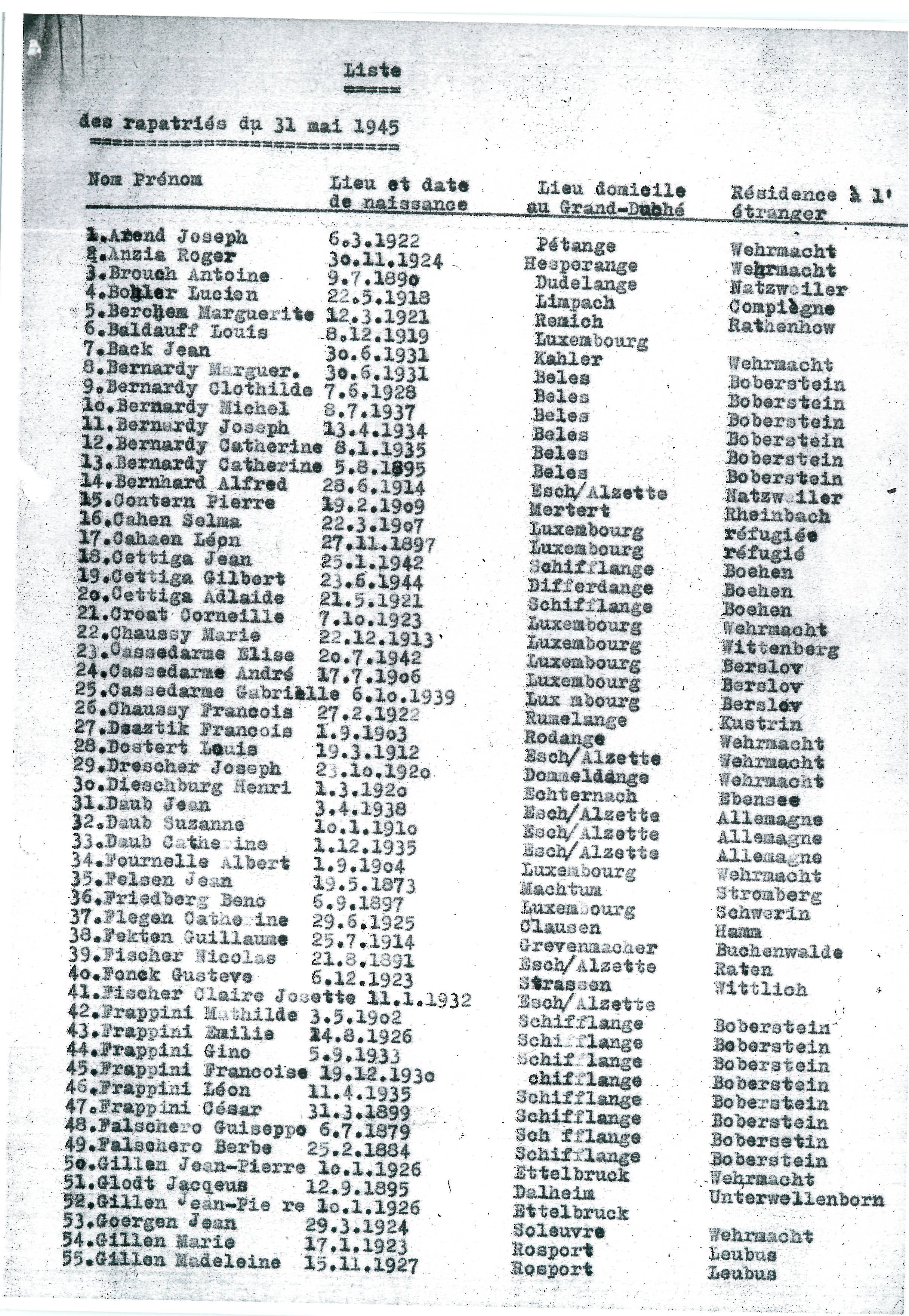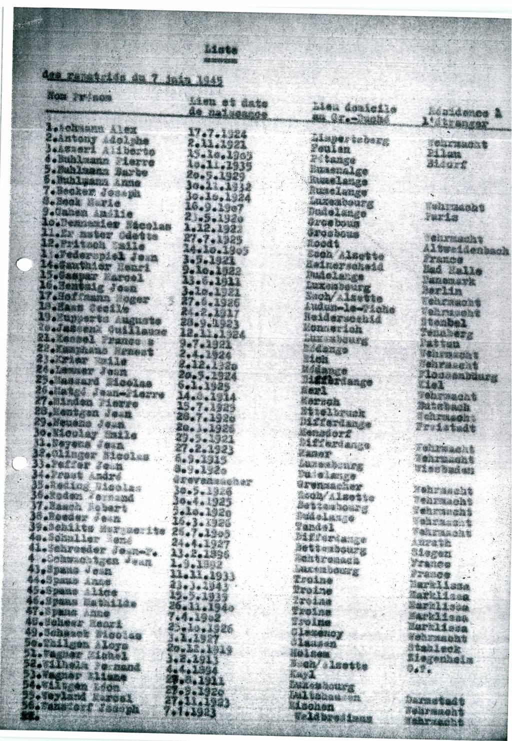 Rapatriés en 1945 POW Liste EDF HOLLERICH