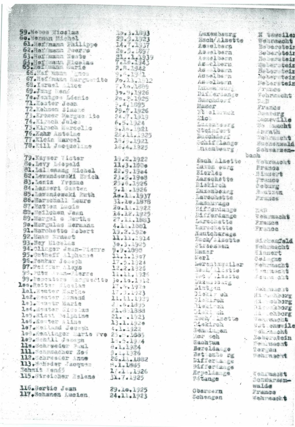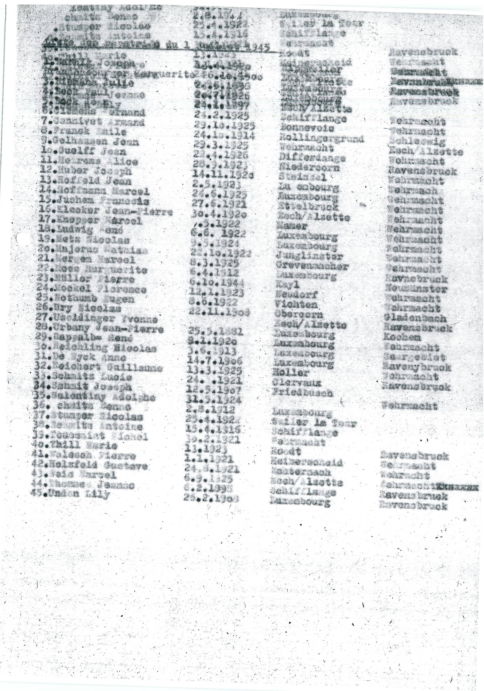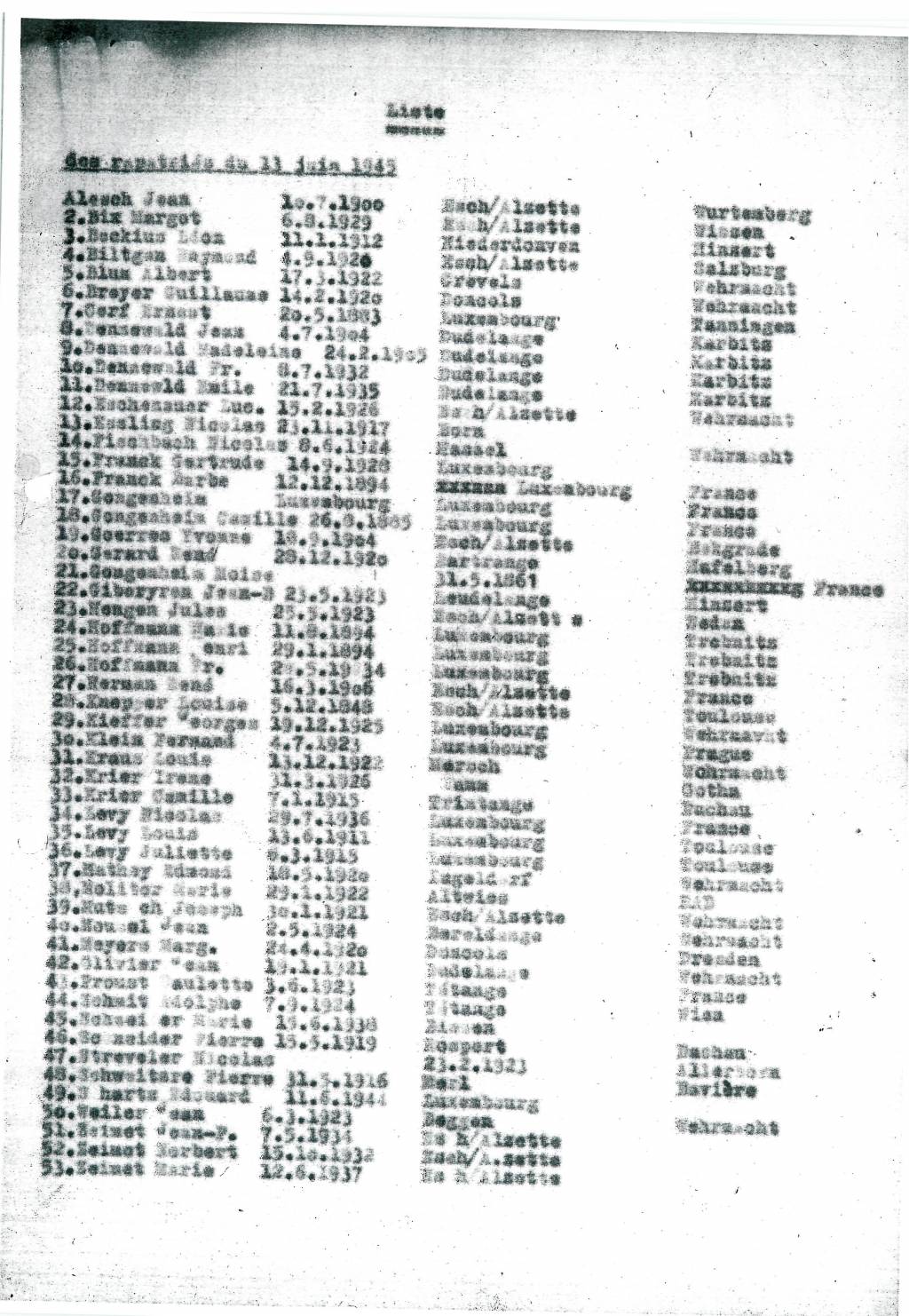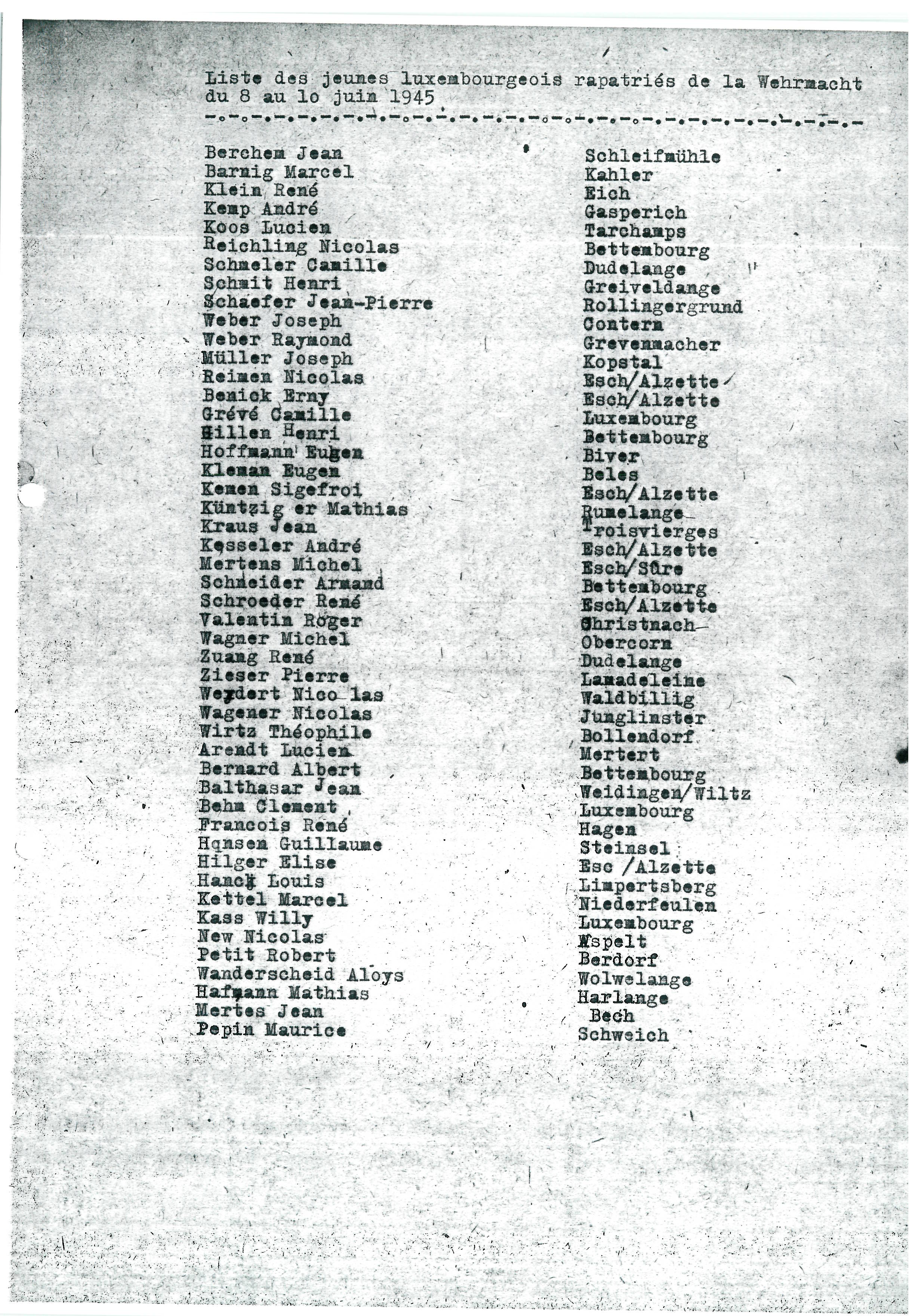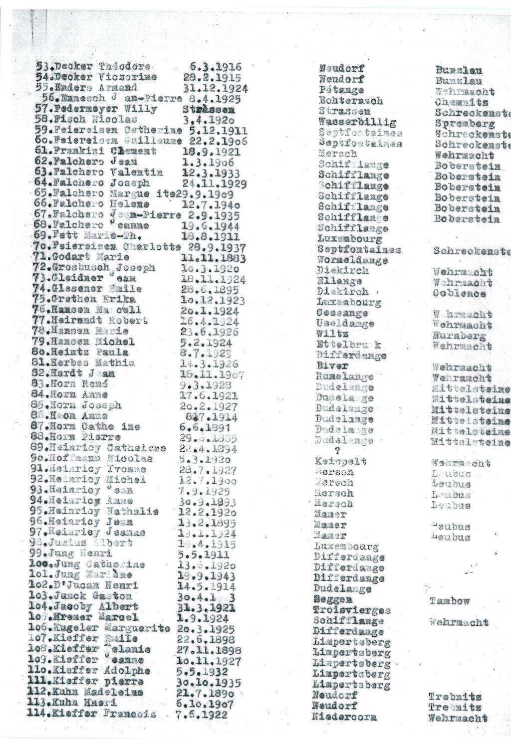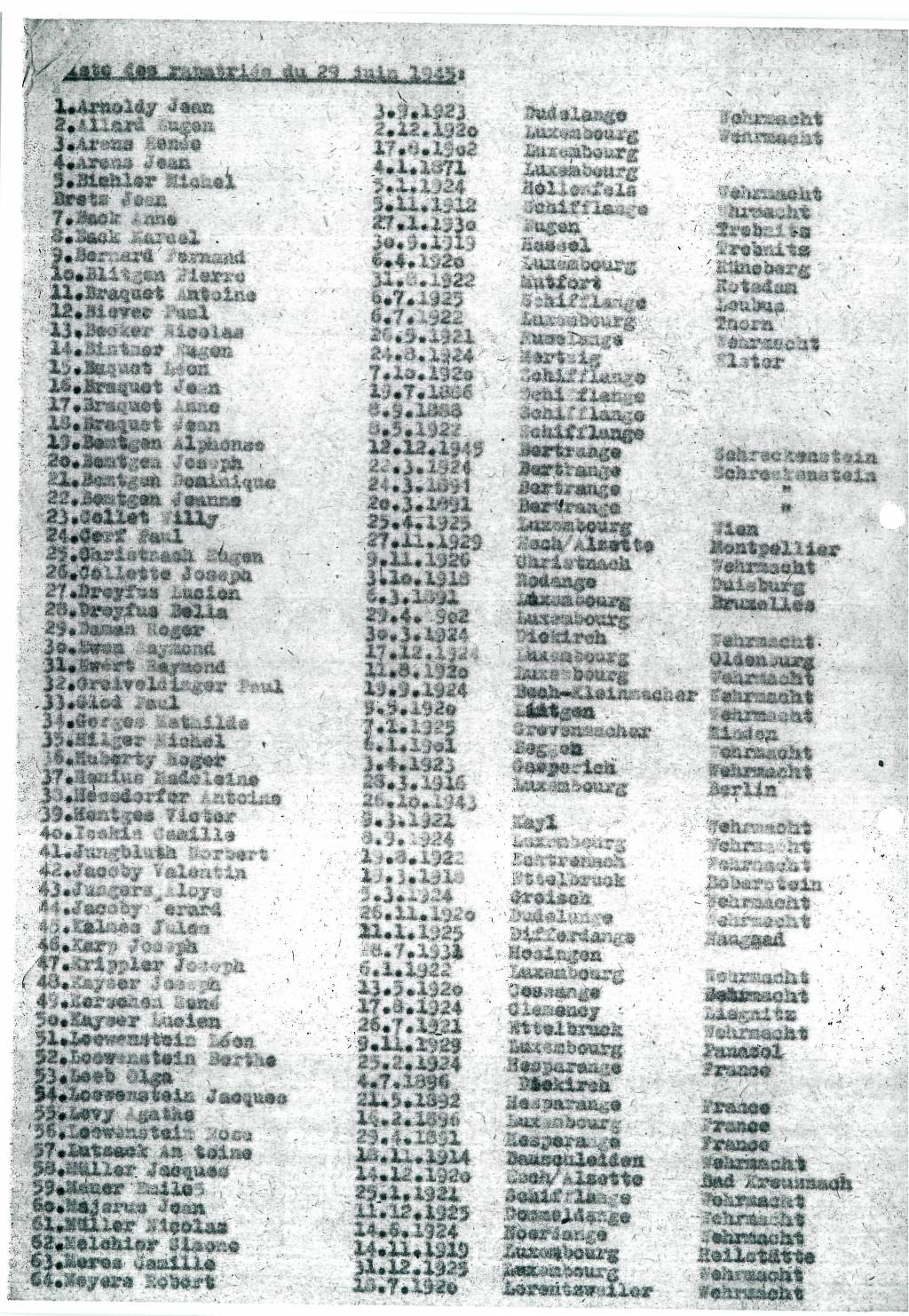 Rapatriés en 1945 POW Liste EDF HOLLERICH