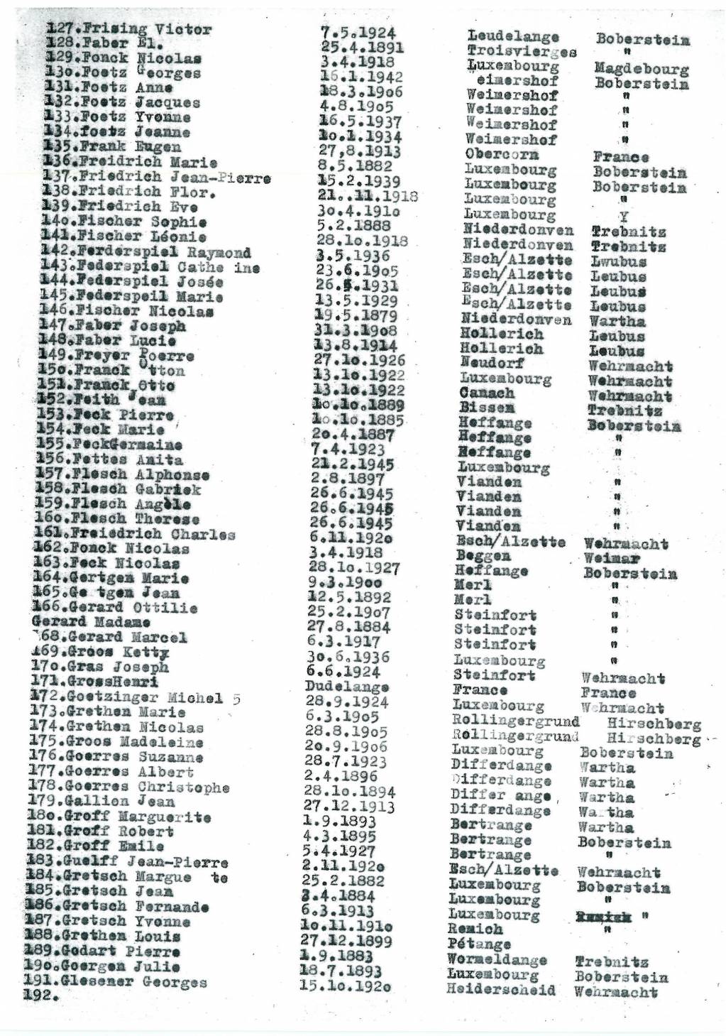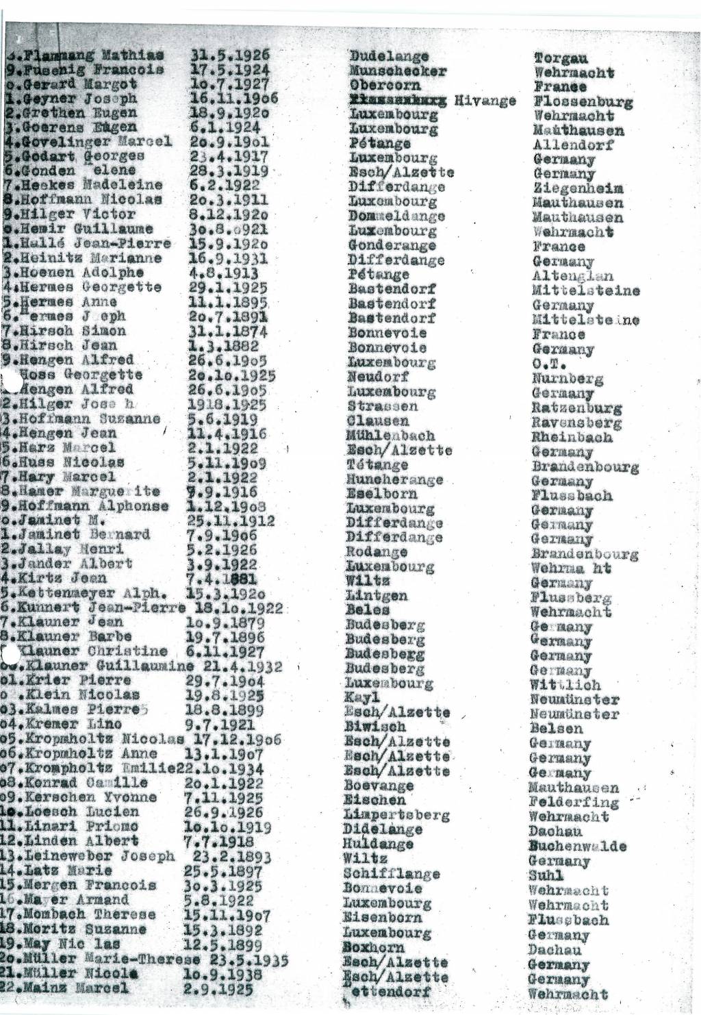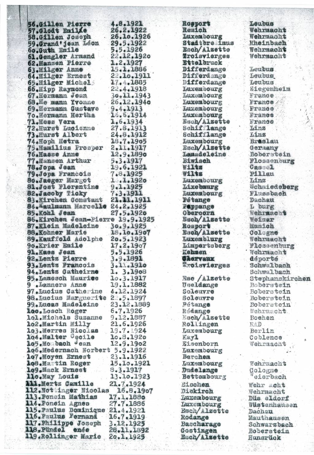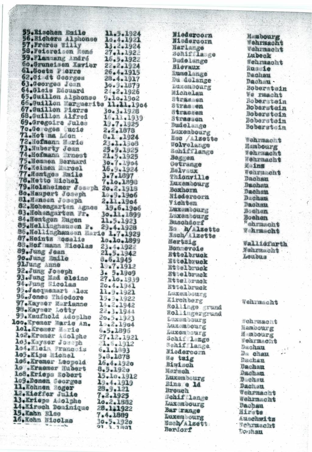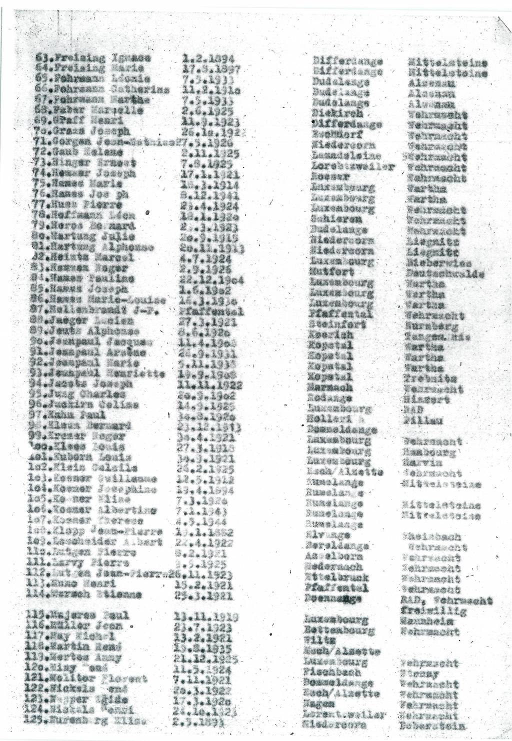 Rapatriés en 1945 POW Liste EDF HOLLERICH