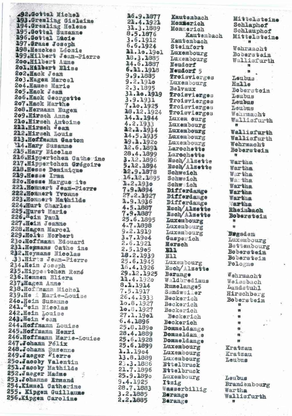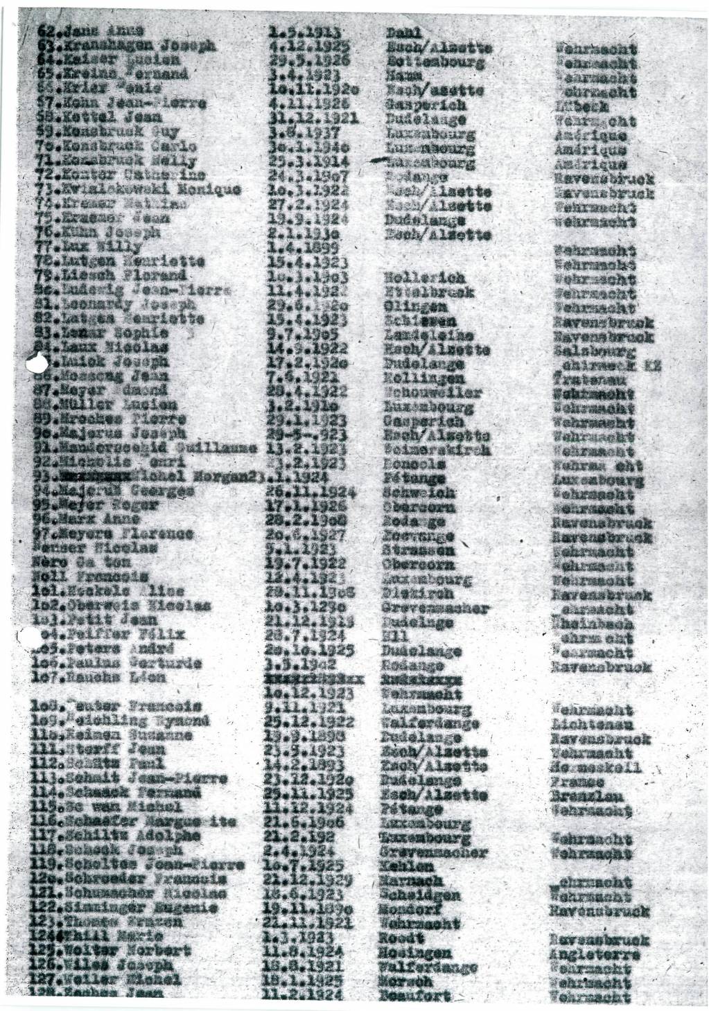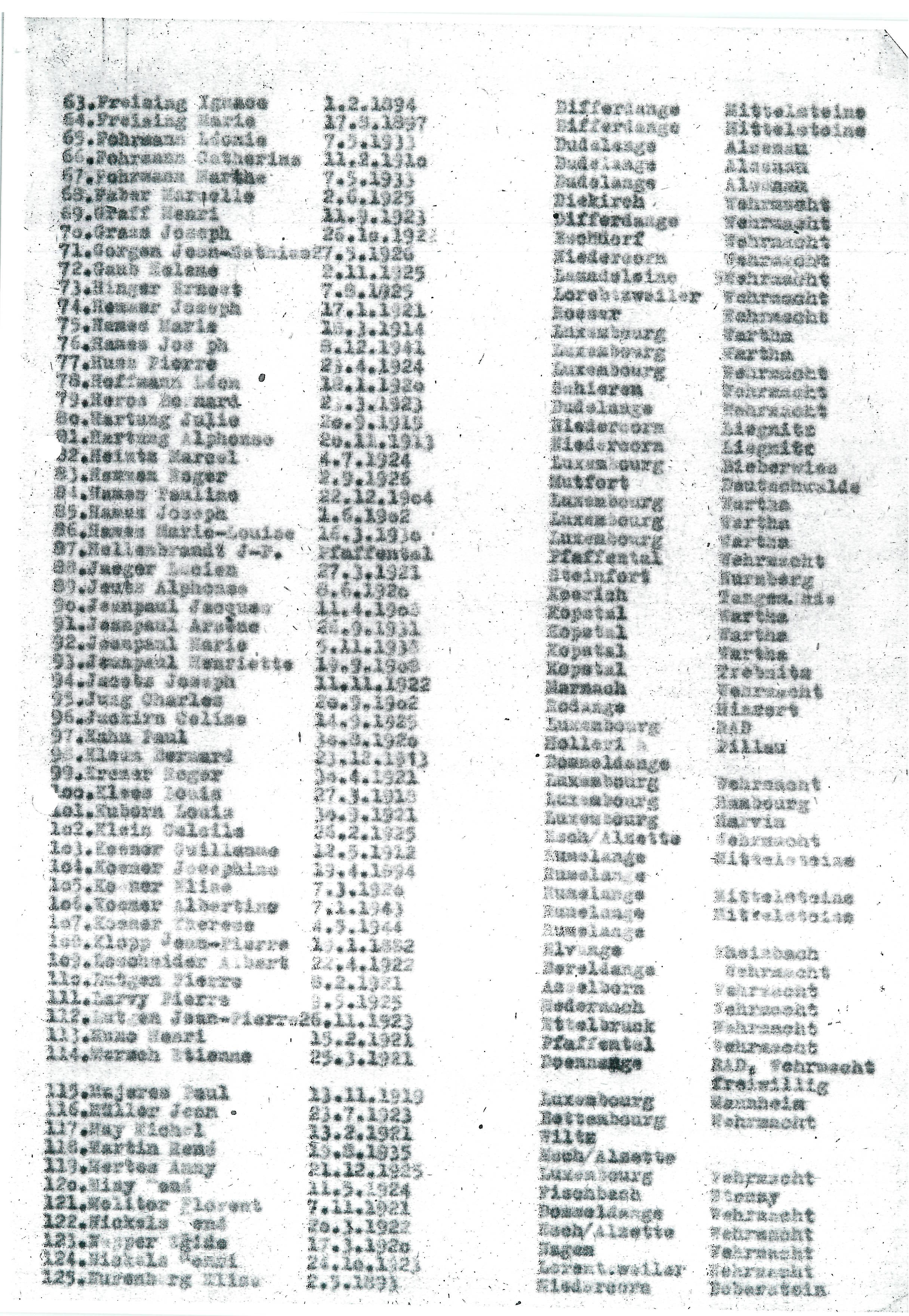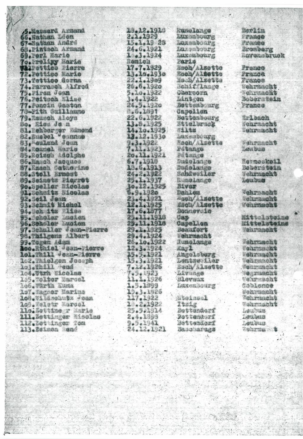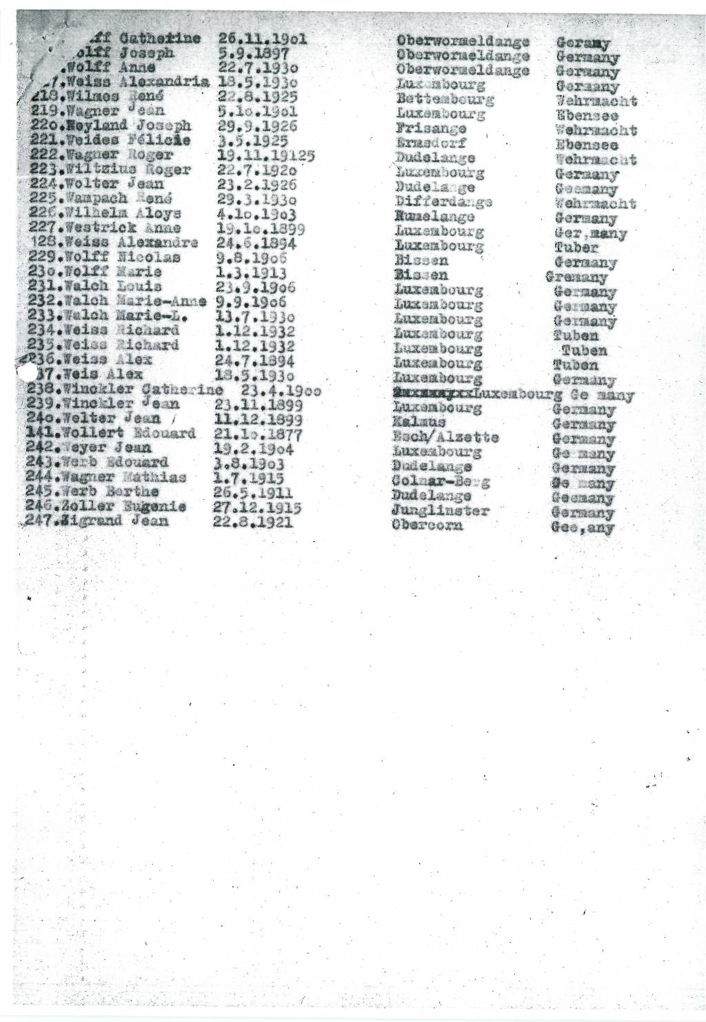Rapatriés en 1945 POW Liste EDF HOLLERICH