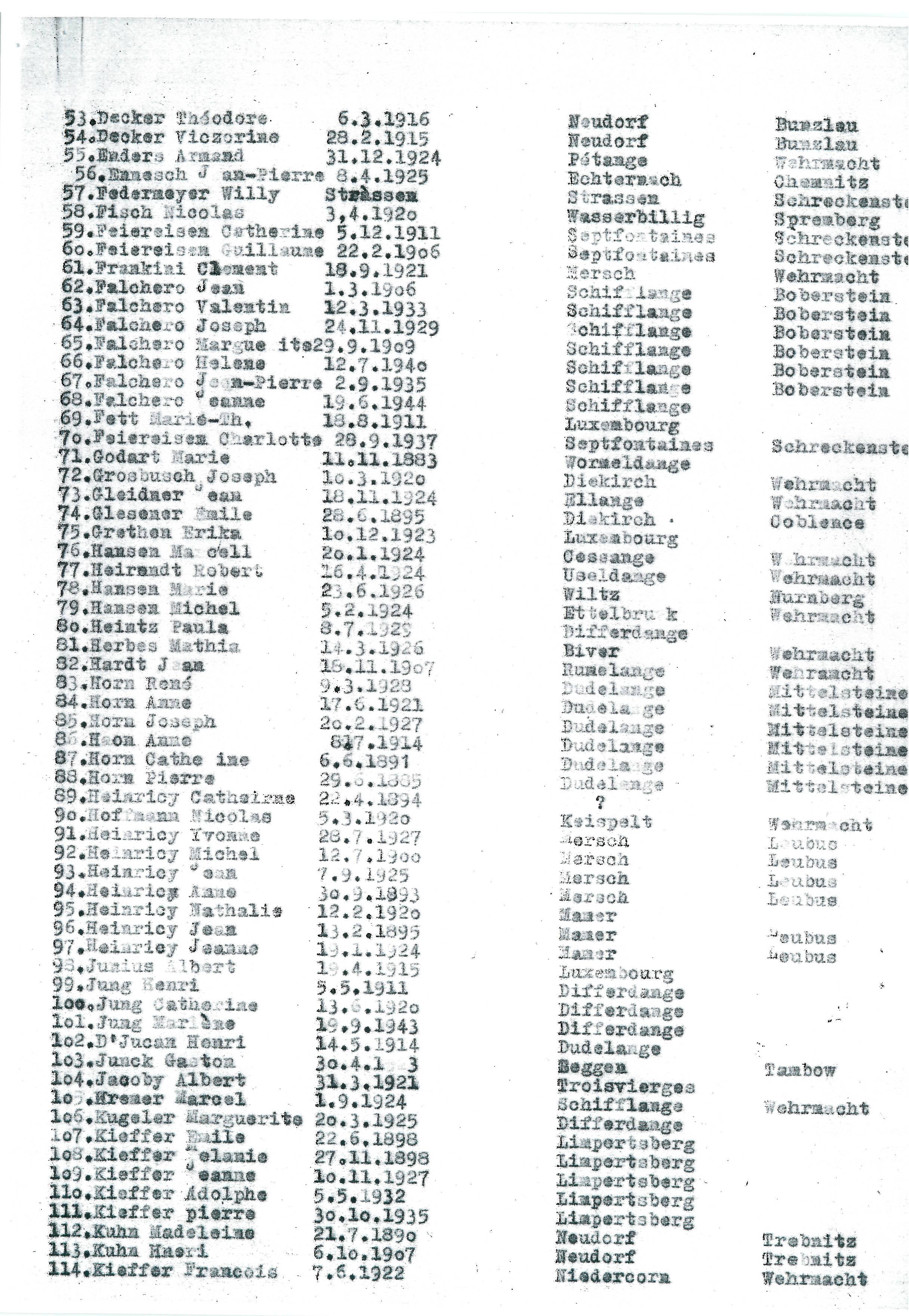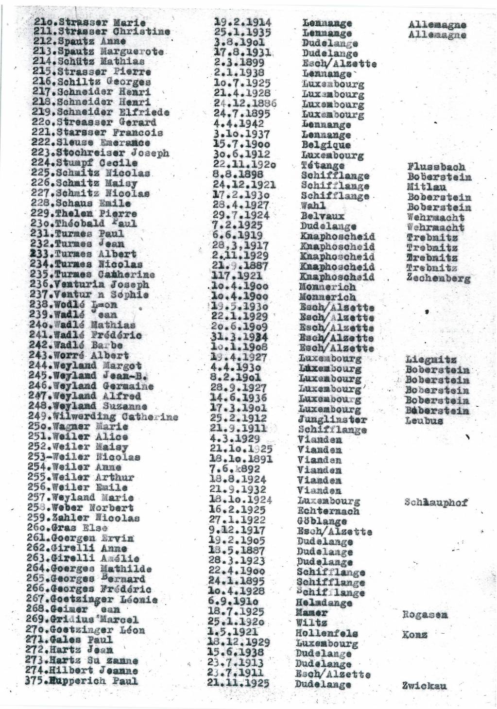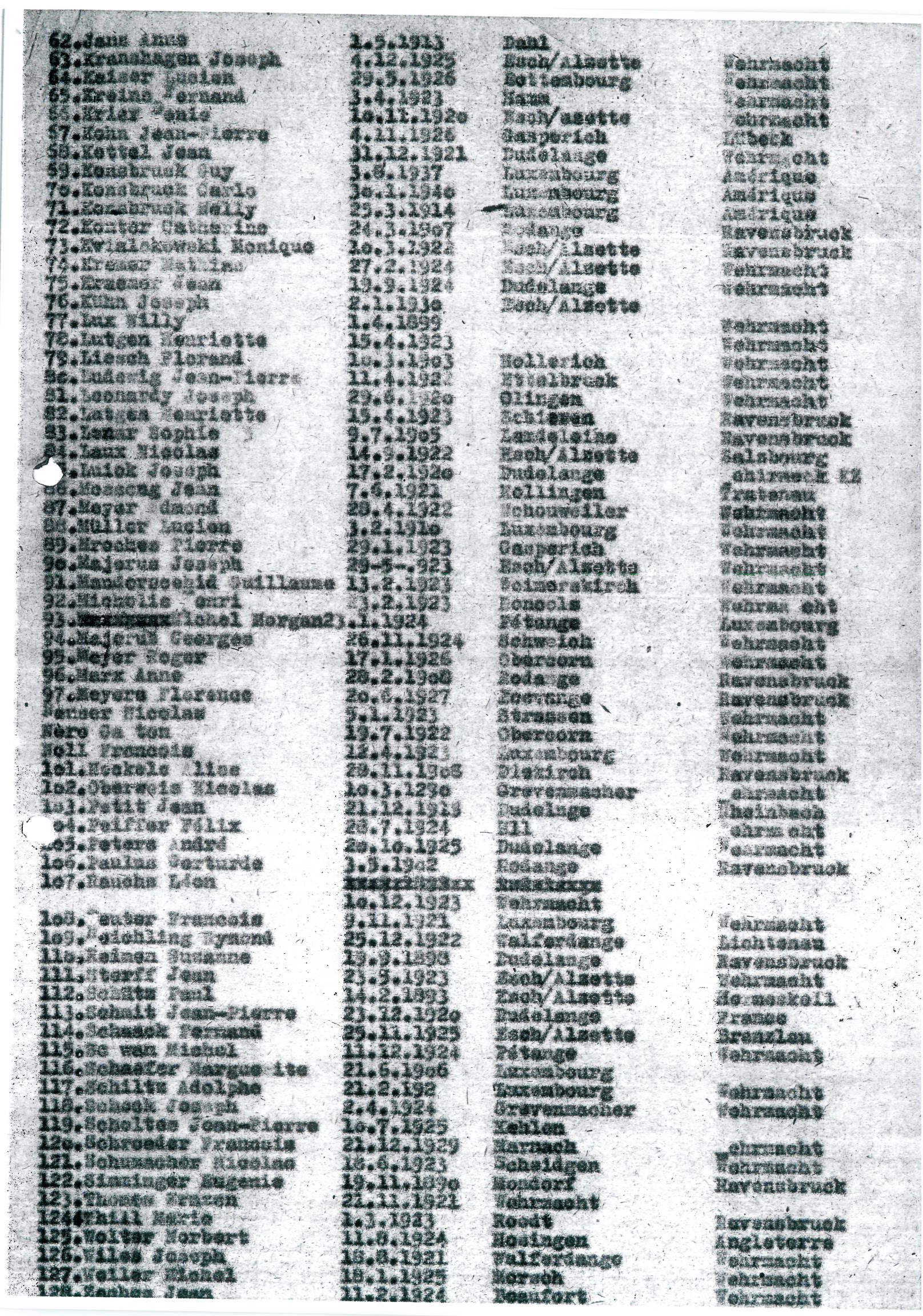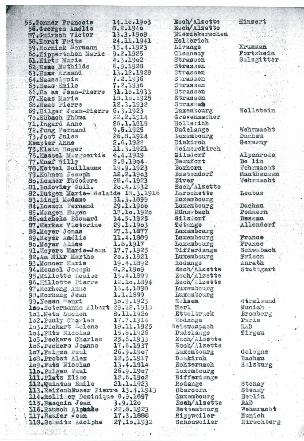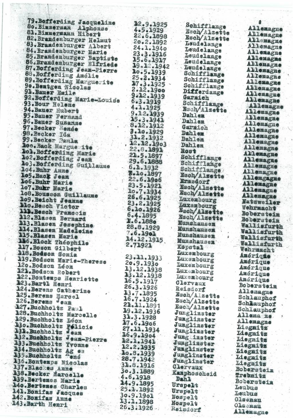 Rapatriés en 1945 POW Liste EDF HOLLERICH