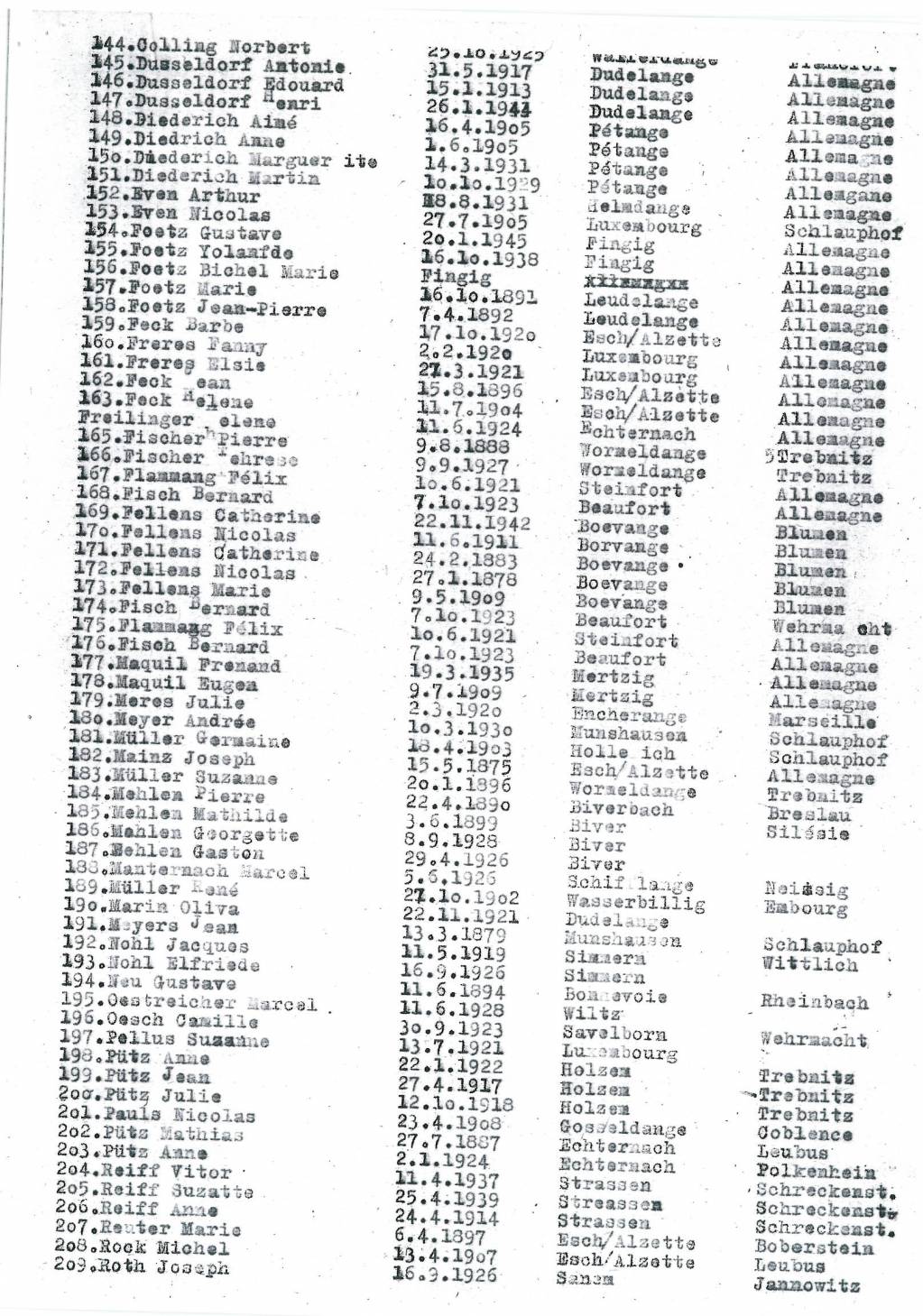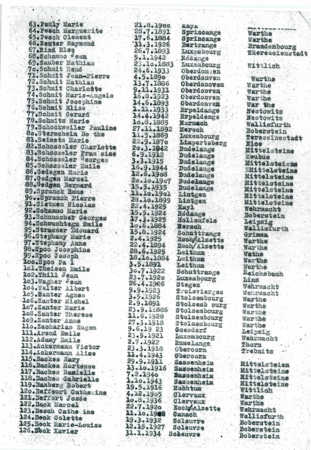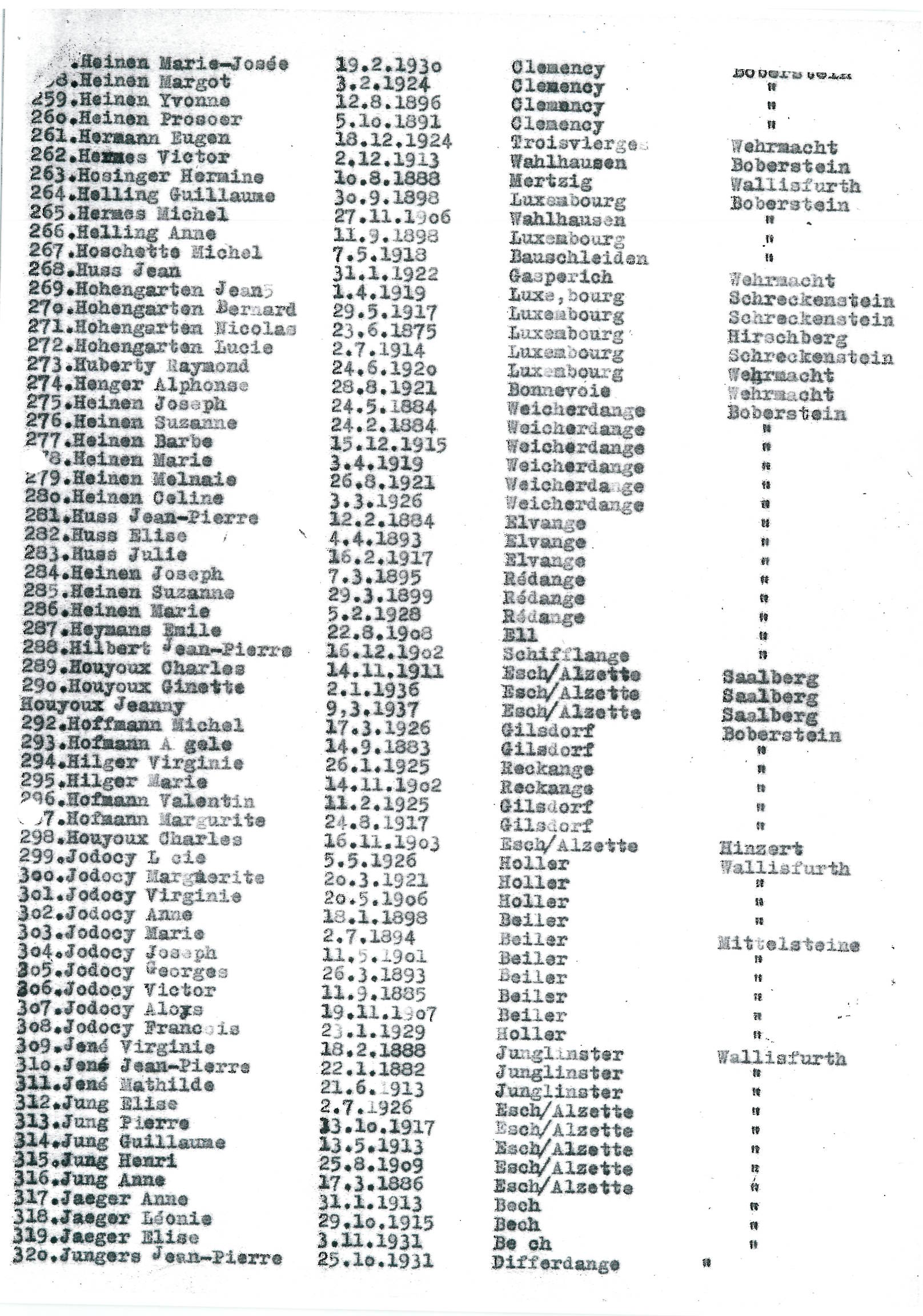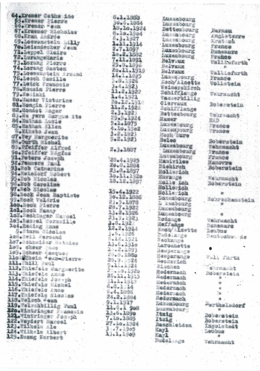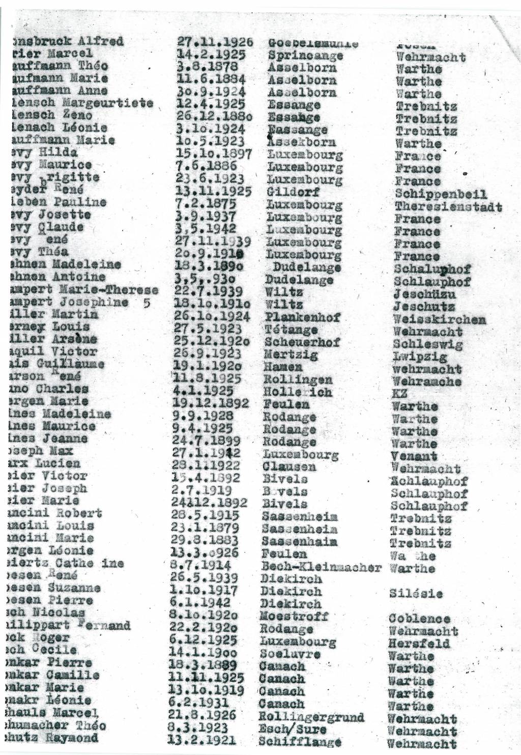 Rapatriés en 1945 POW Liste EDF HOLLERICH