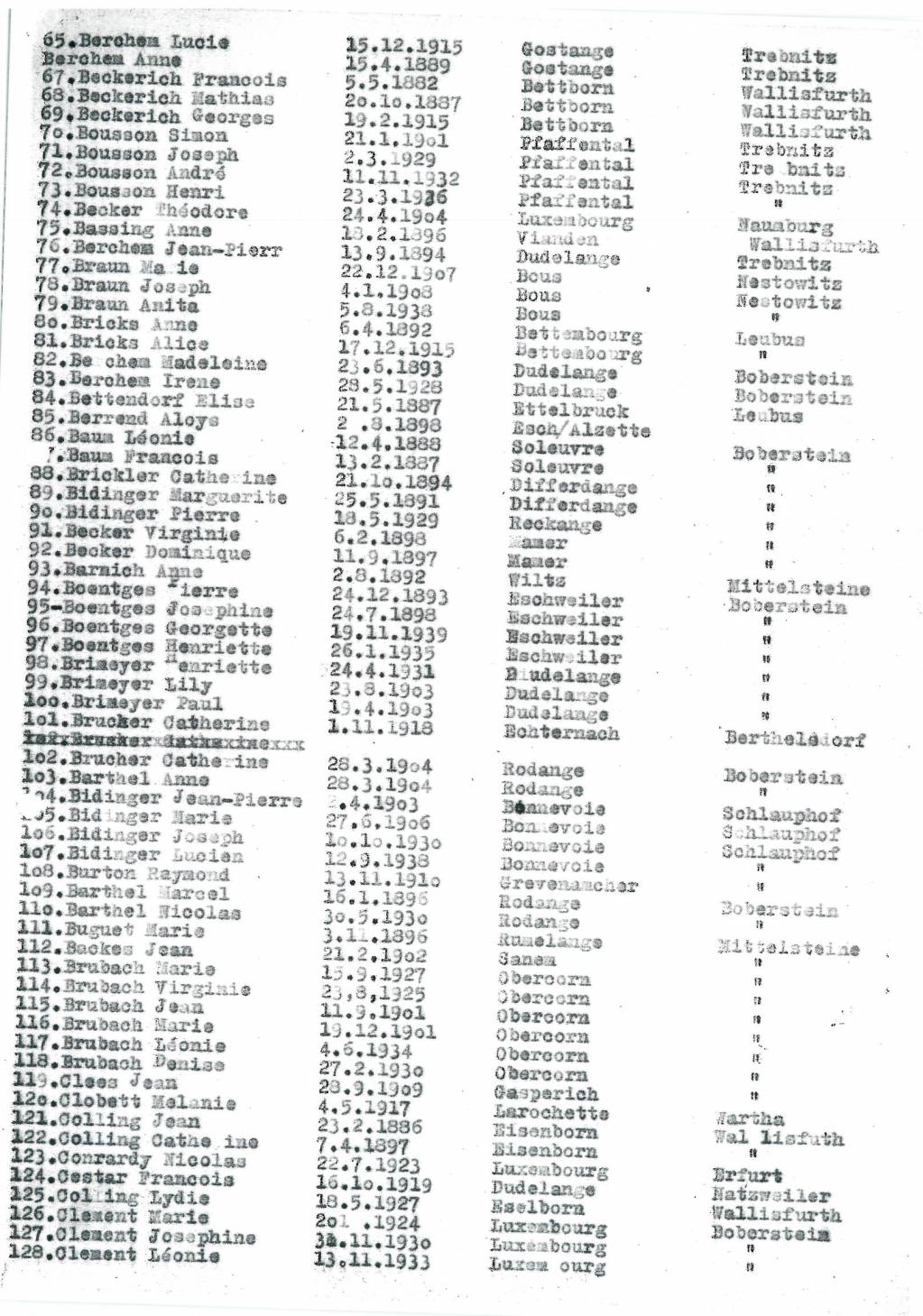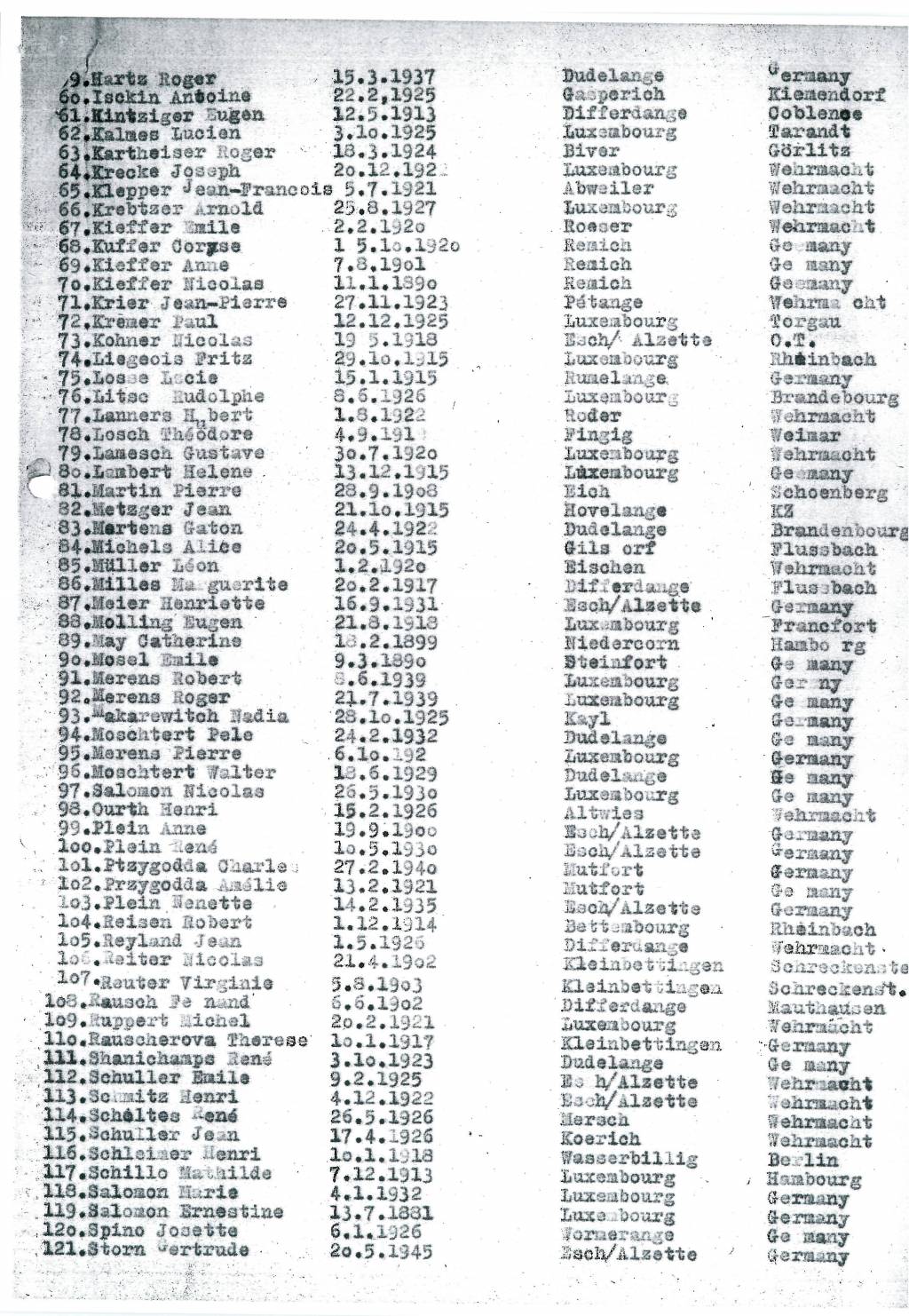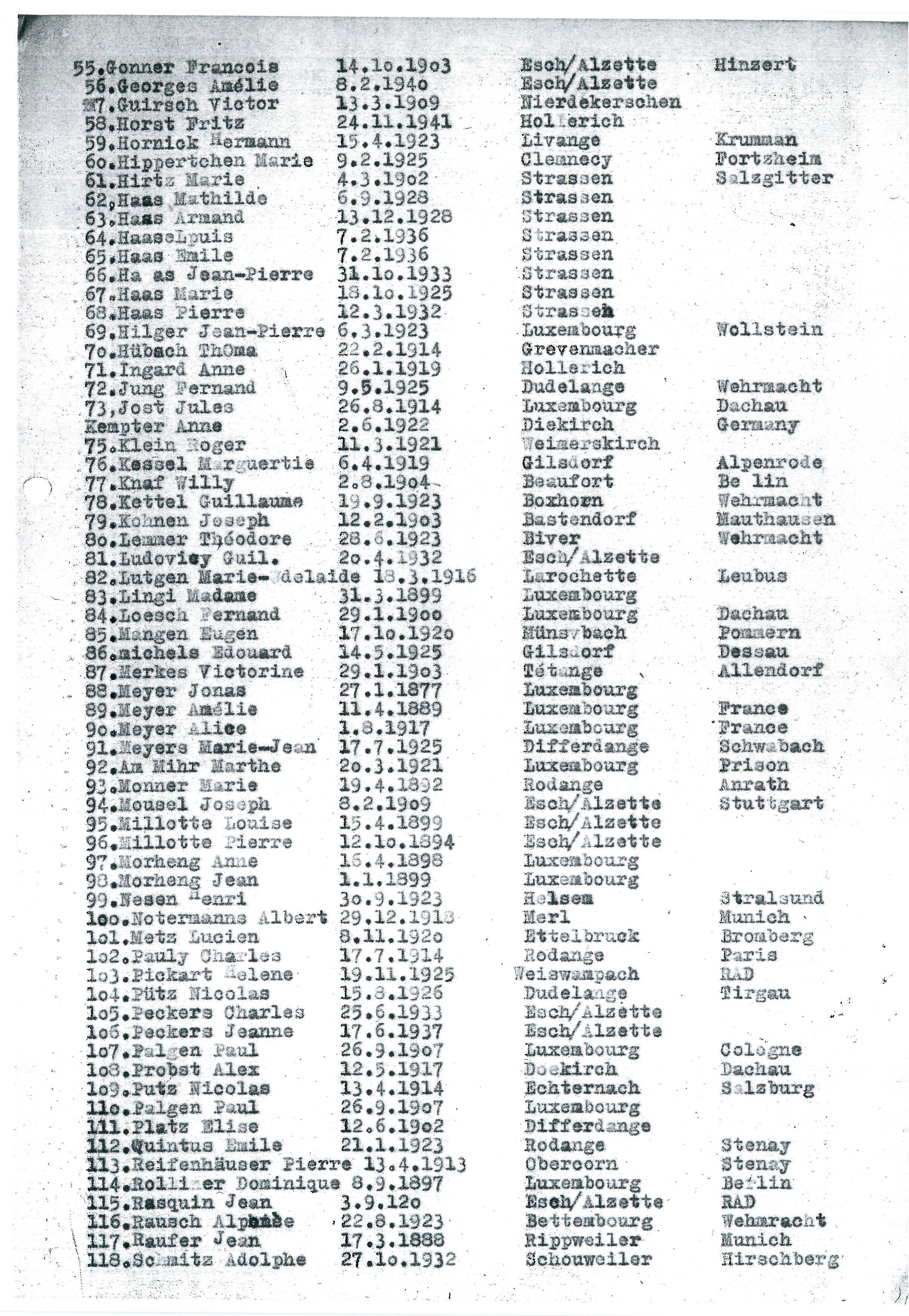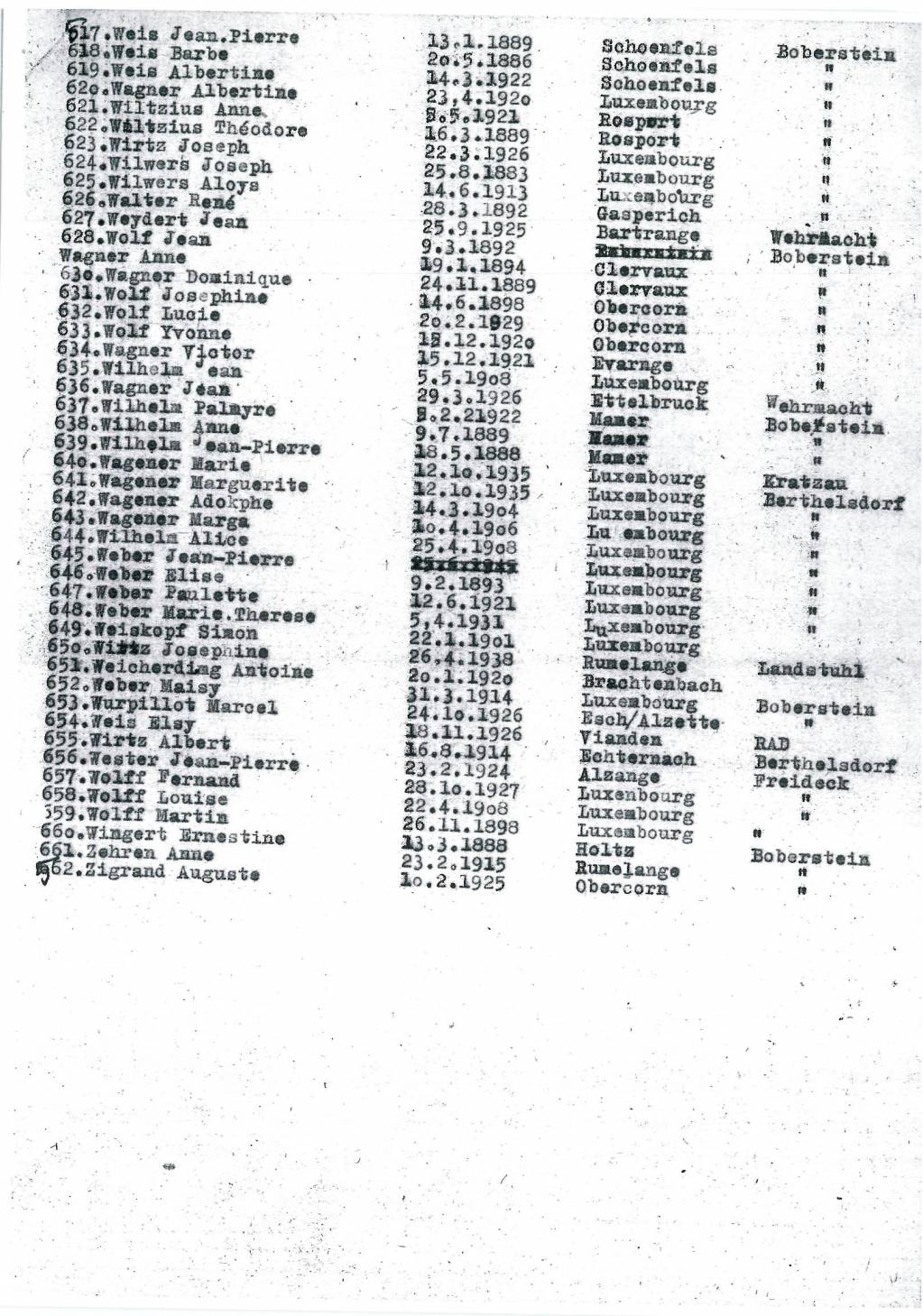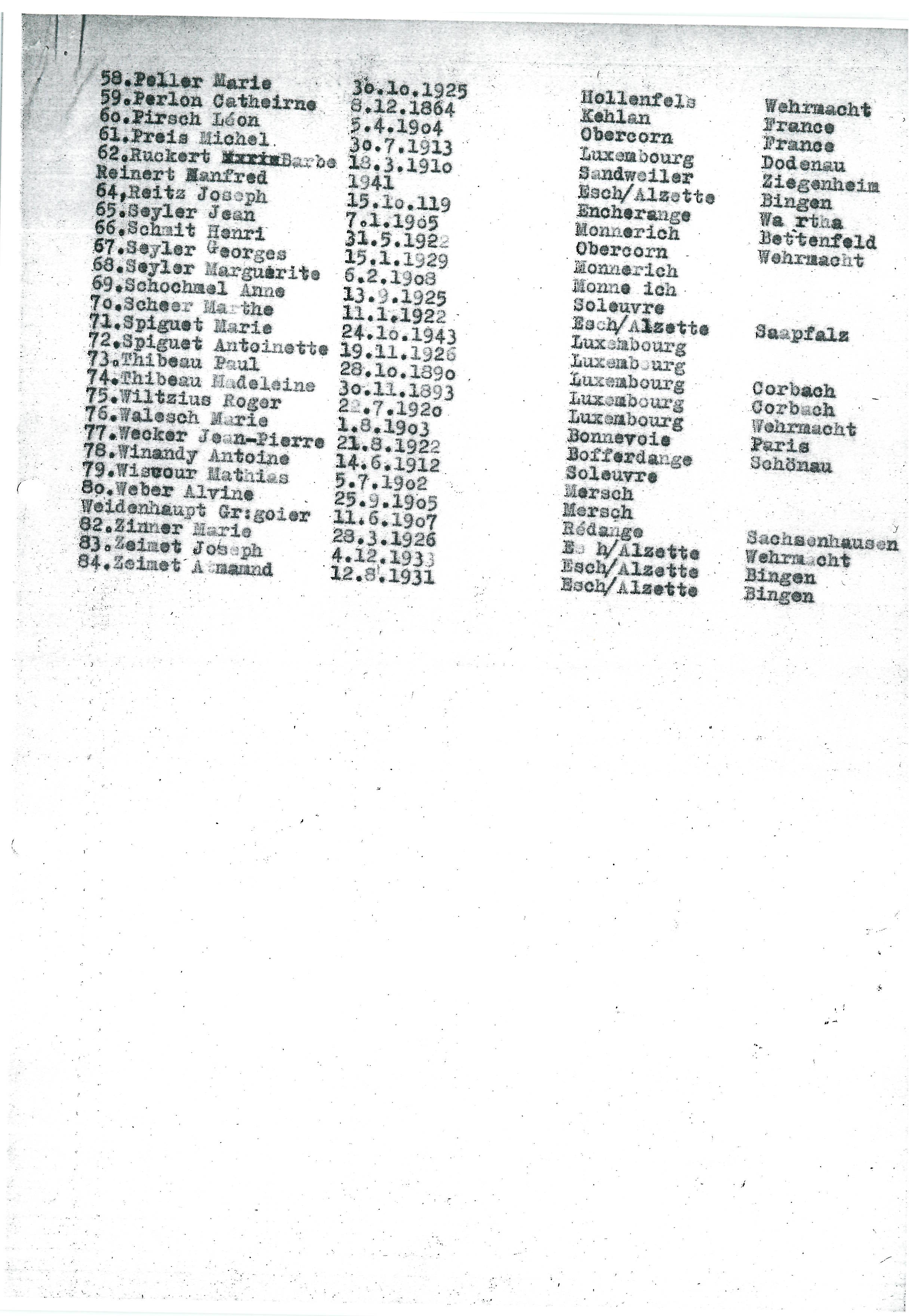 Rapatriés en 1945 POW Liste EDF HOLLERICH