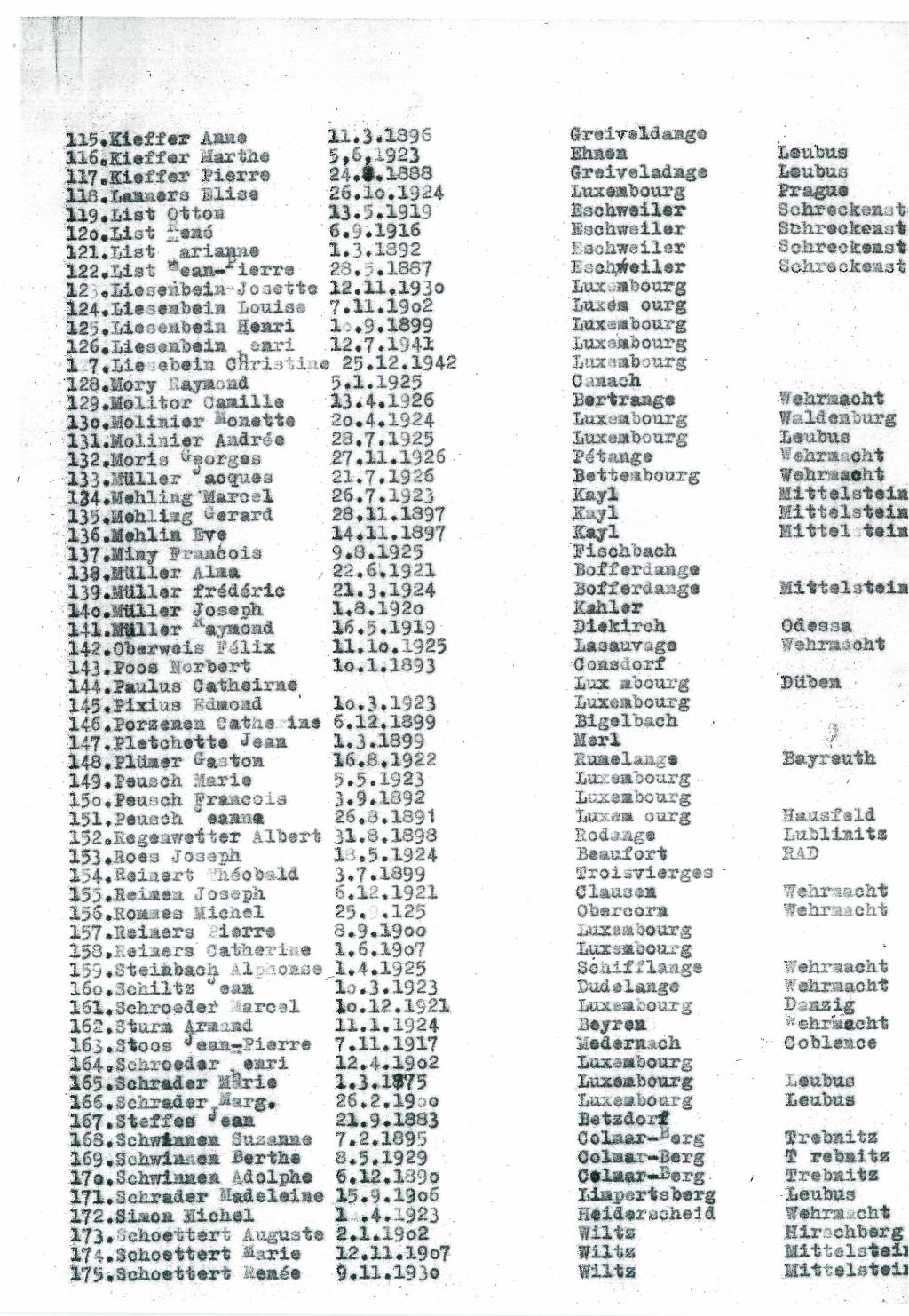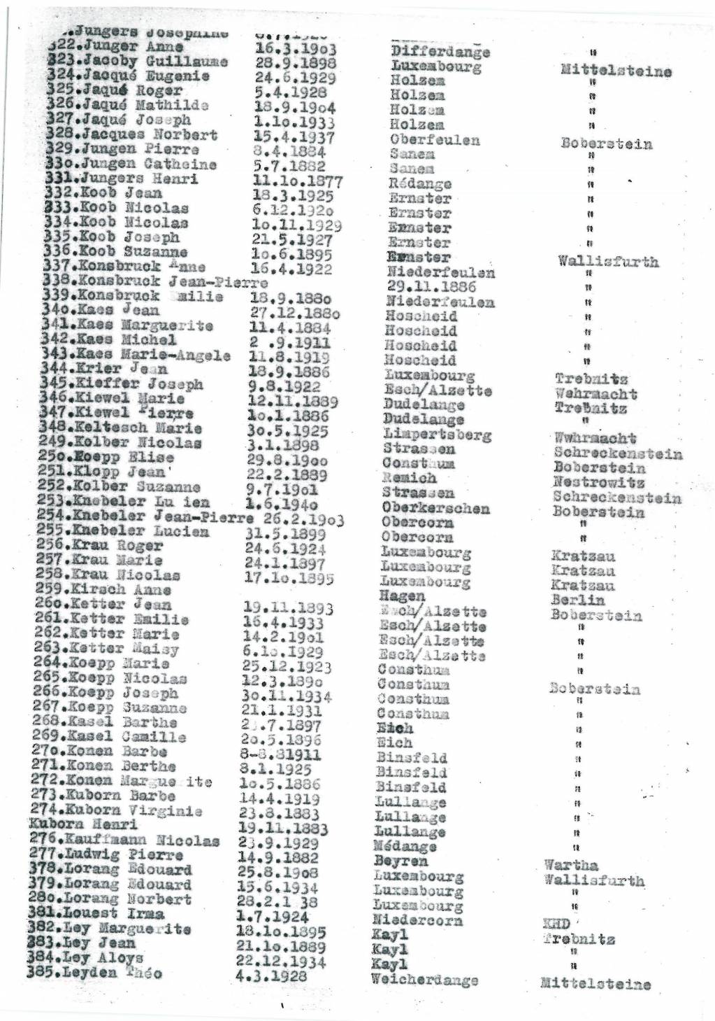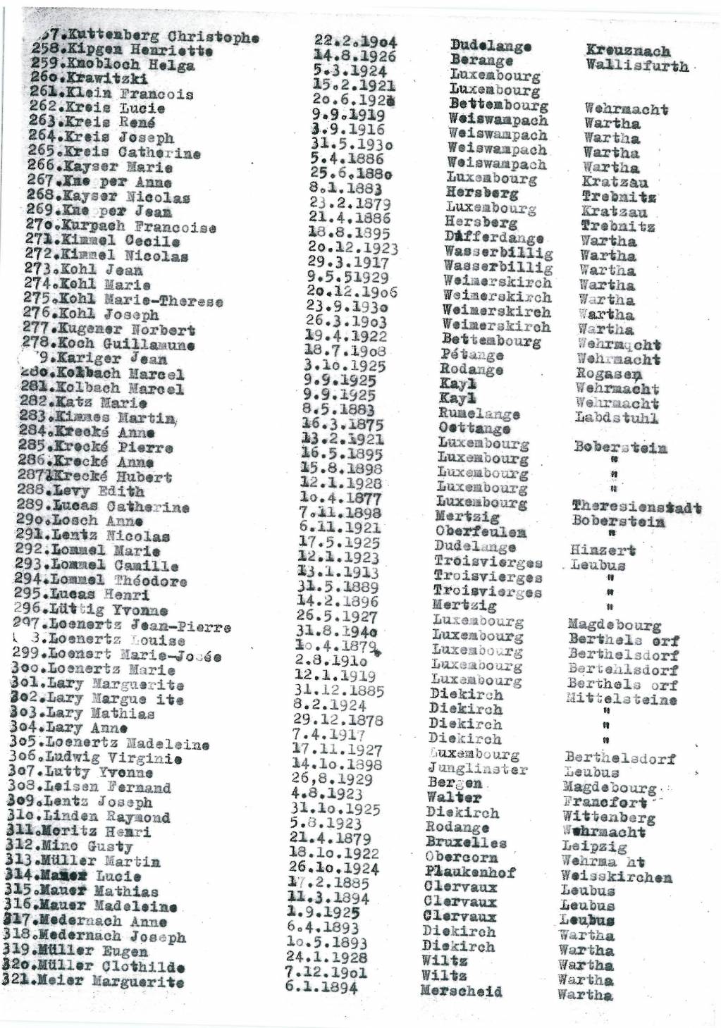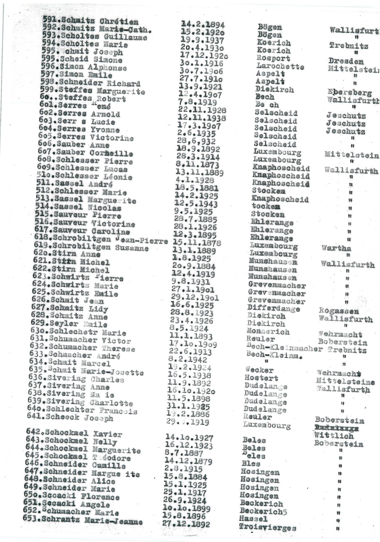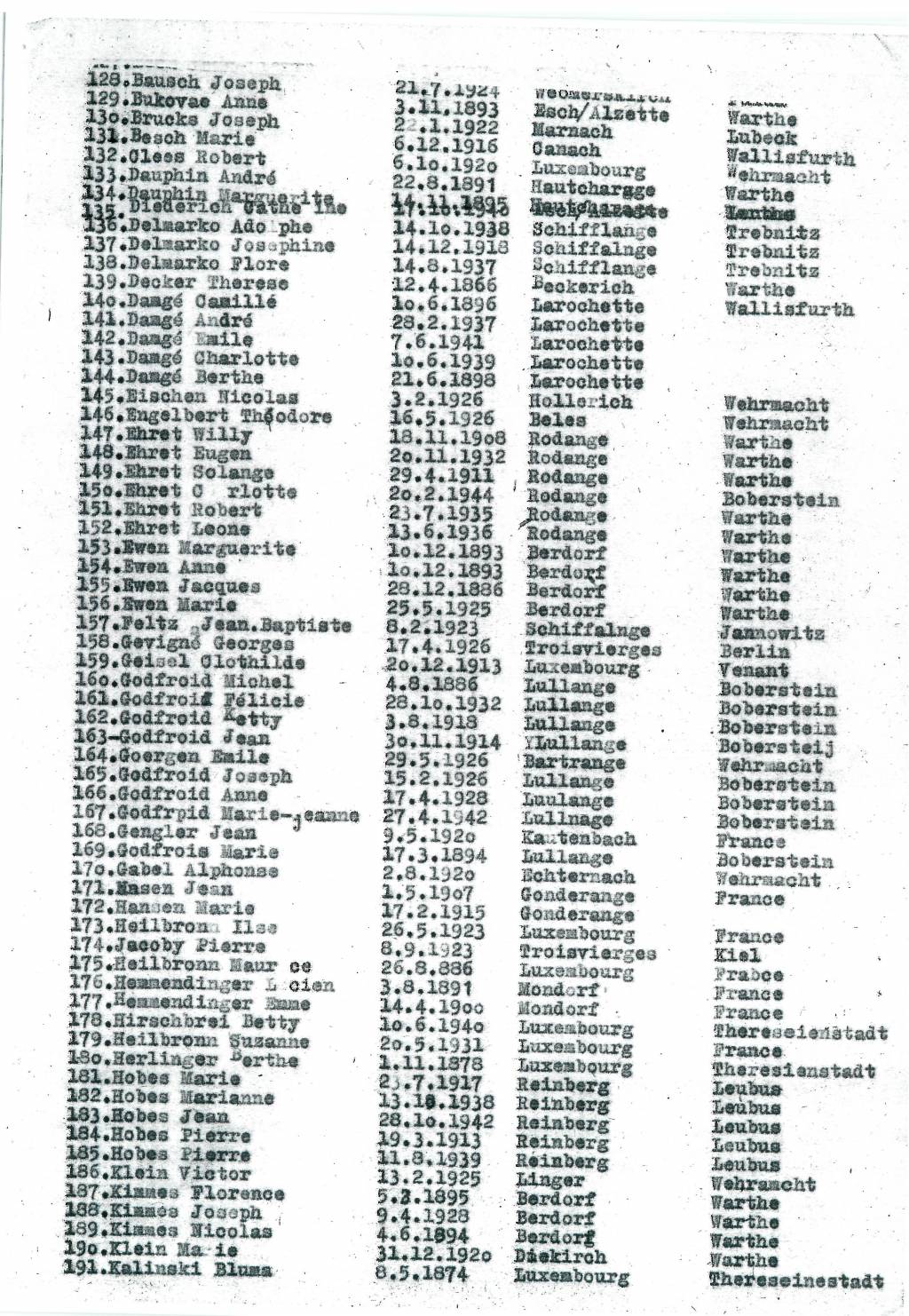 Rapatriés en 1945 POW Liste EDF HOLLERICH