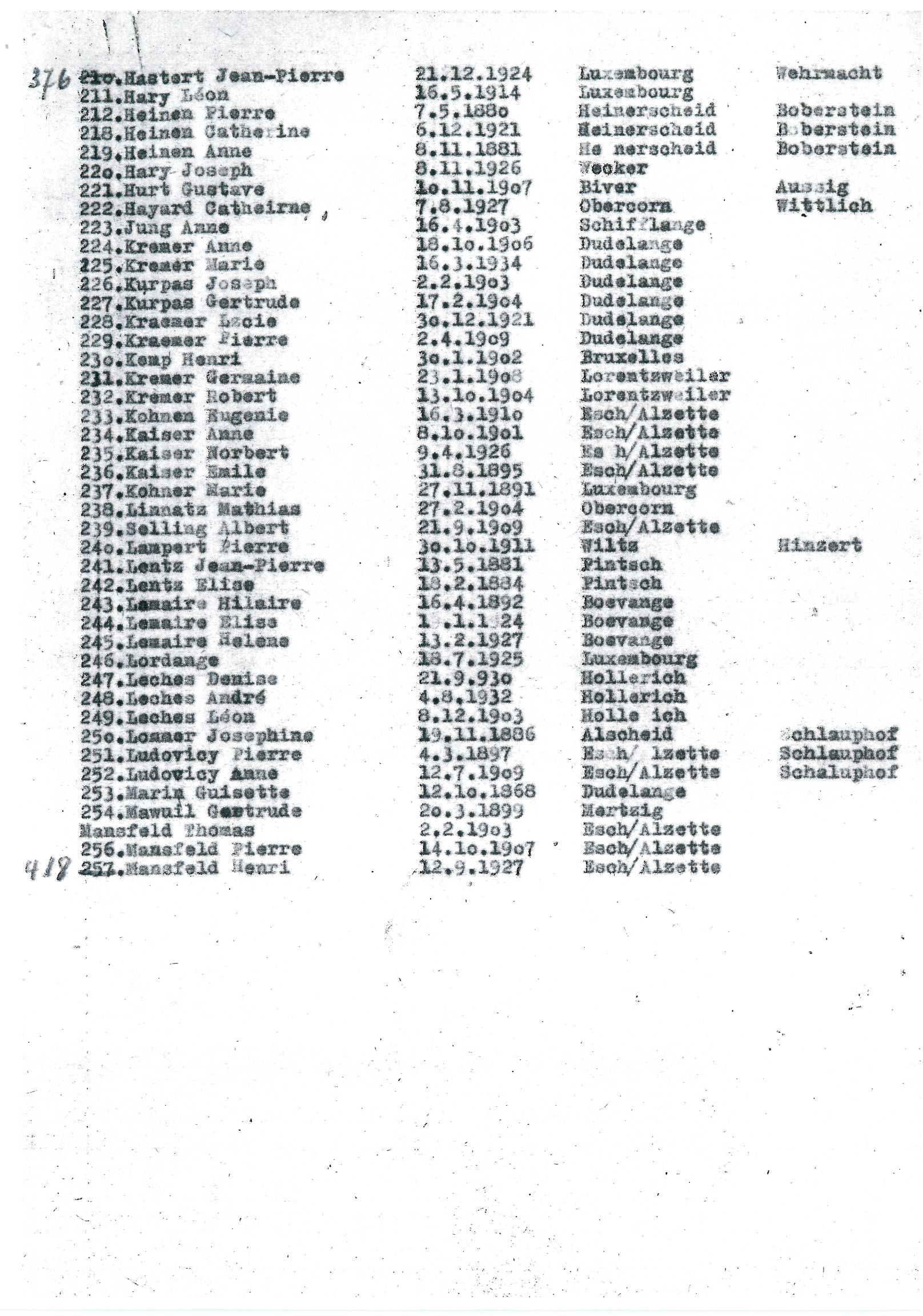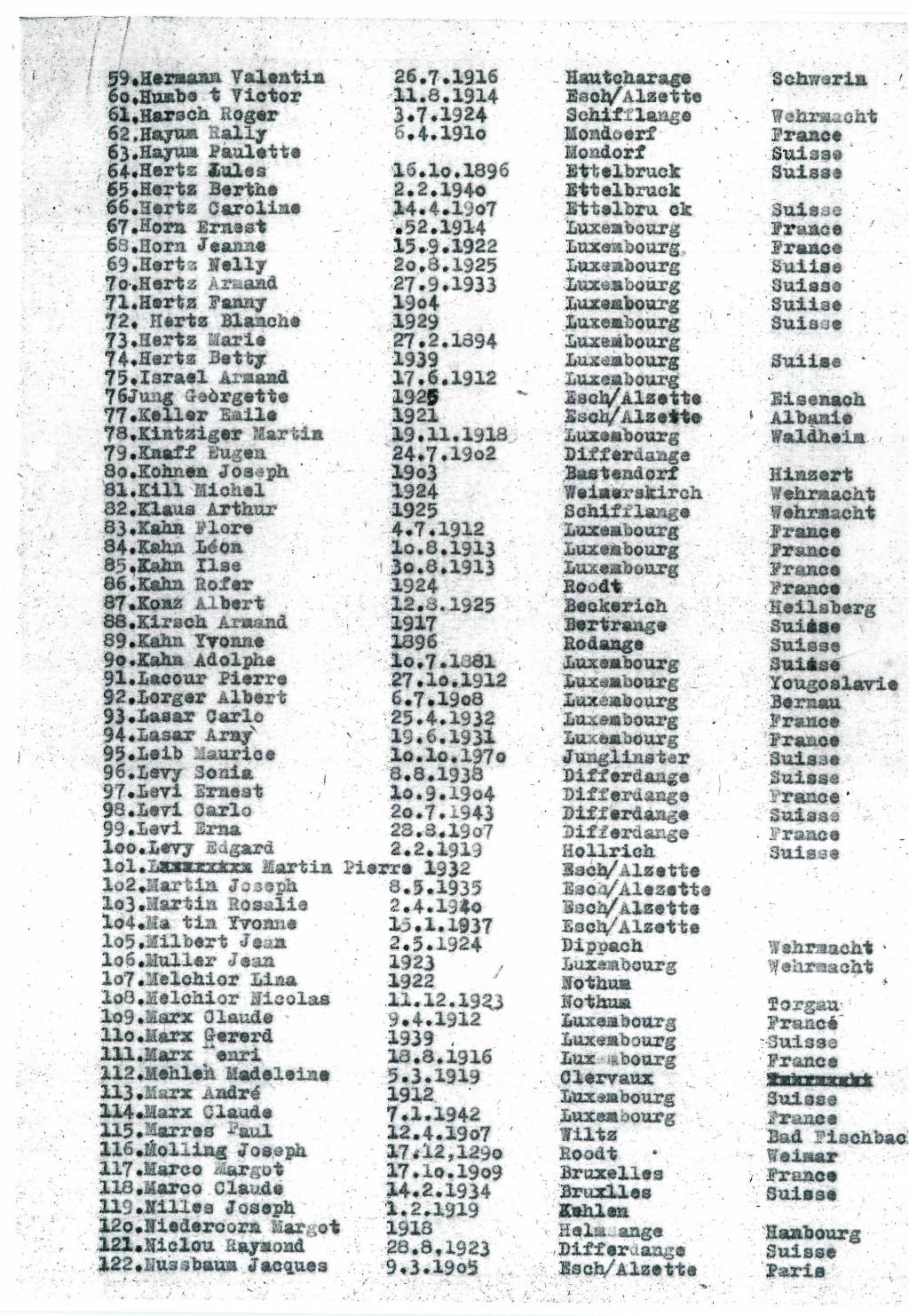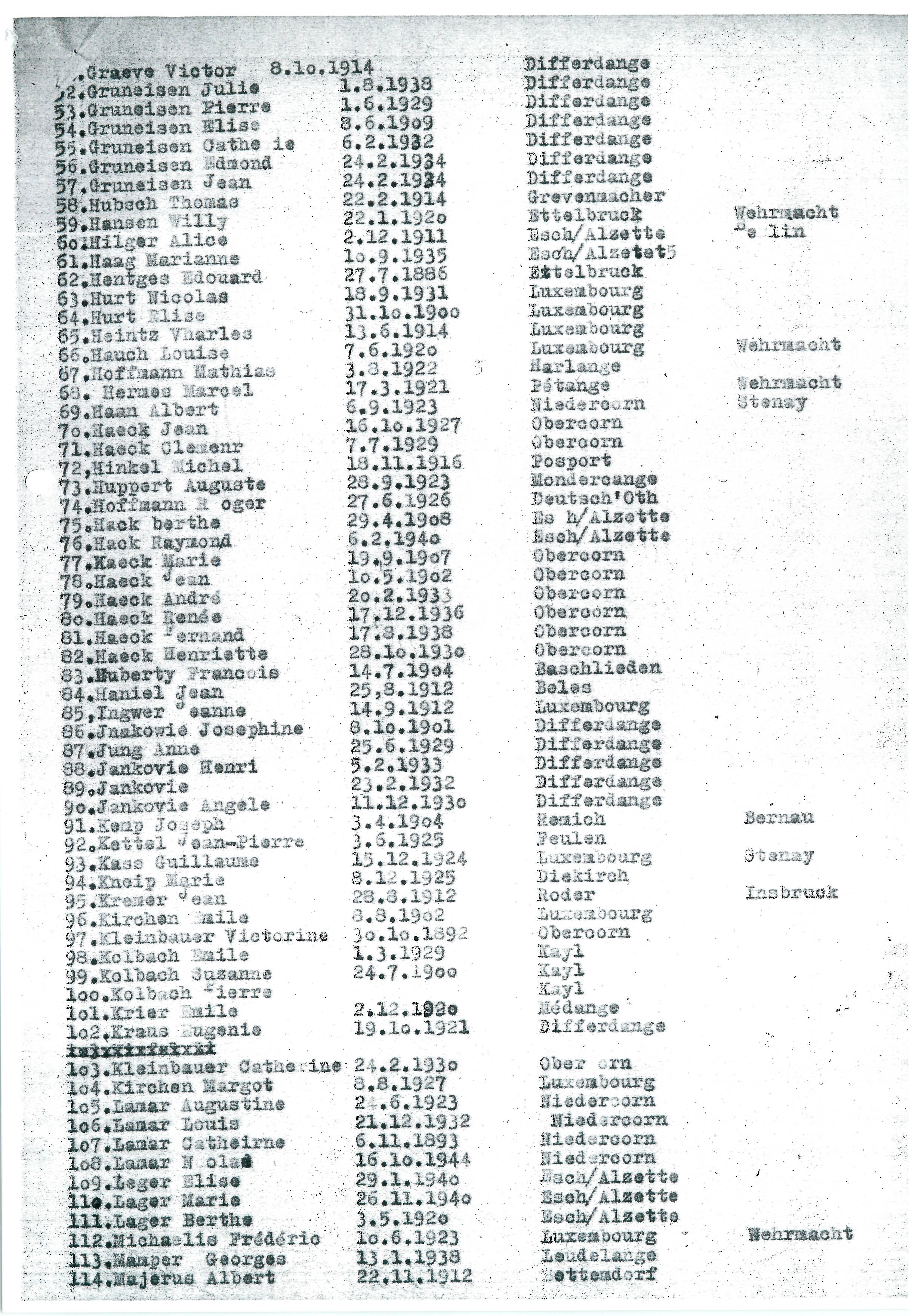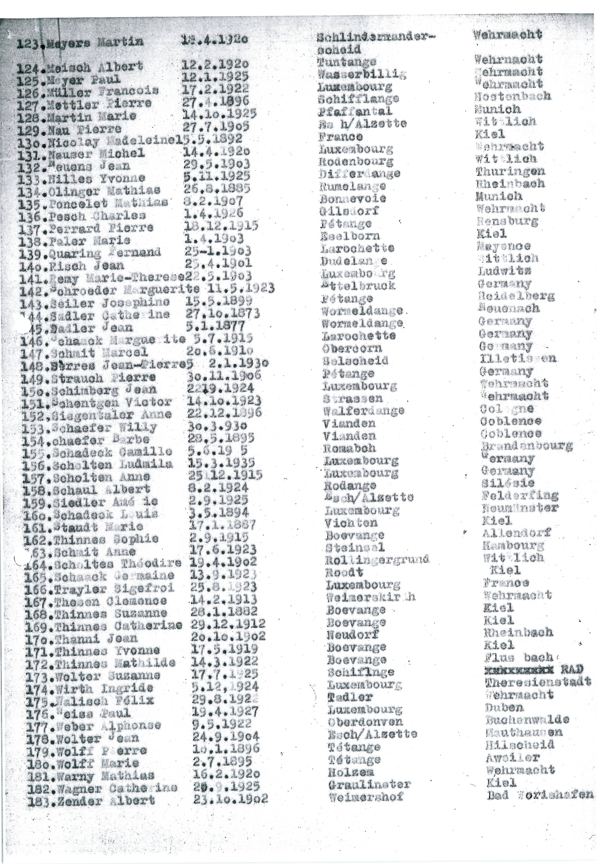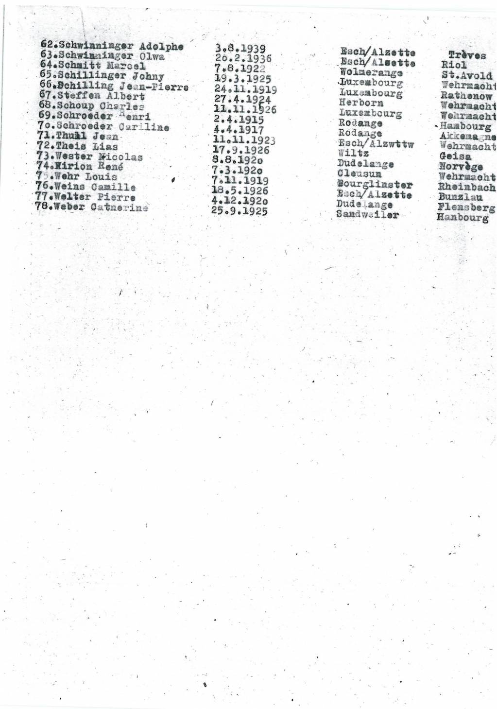 Rapatriés en 1945 POW Liste EDF HOLLERICH