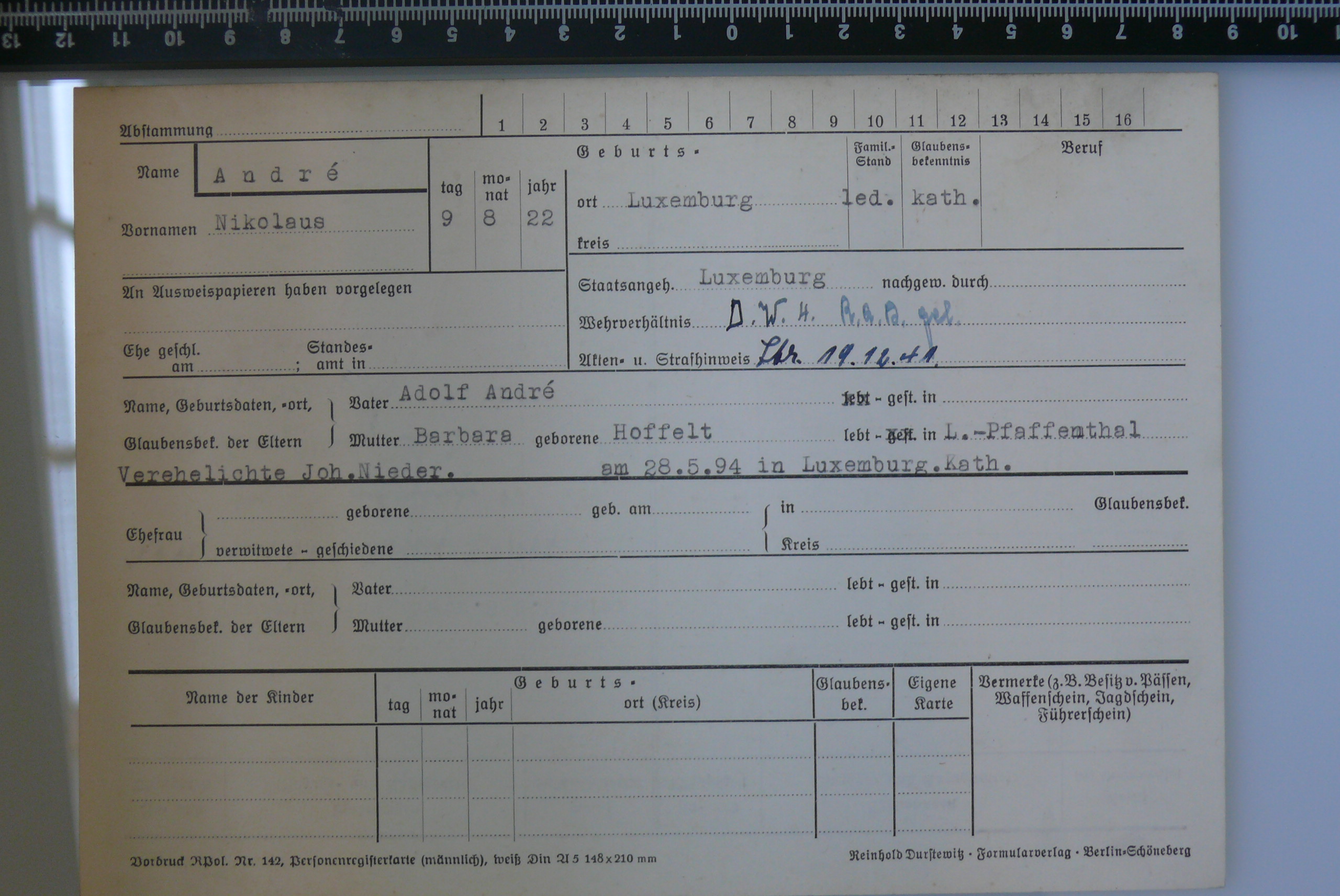 Nom, prénom, nom pendant l'occupation