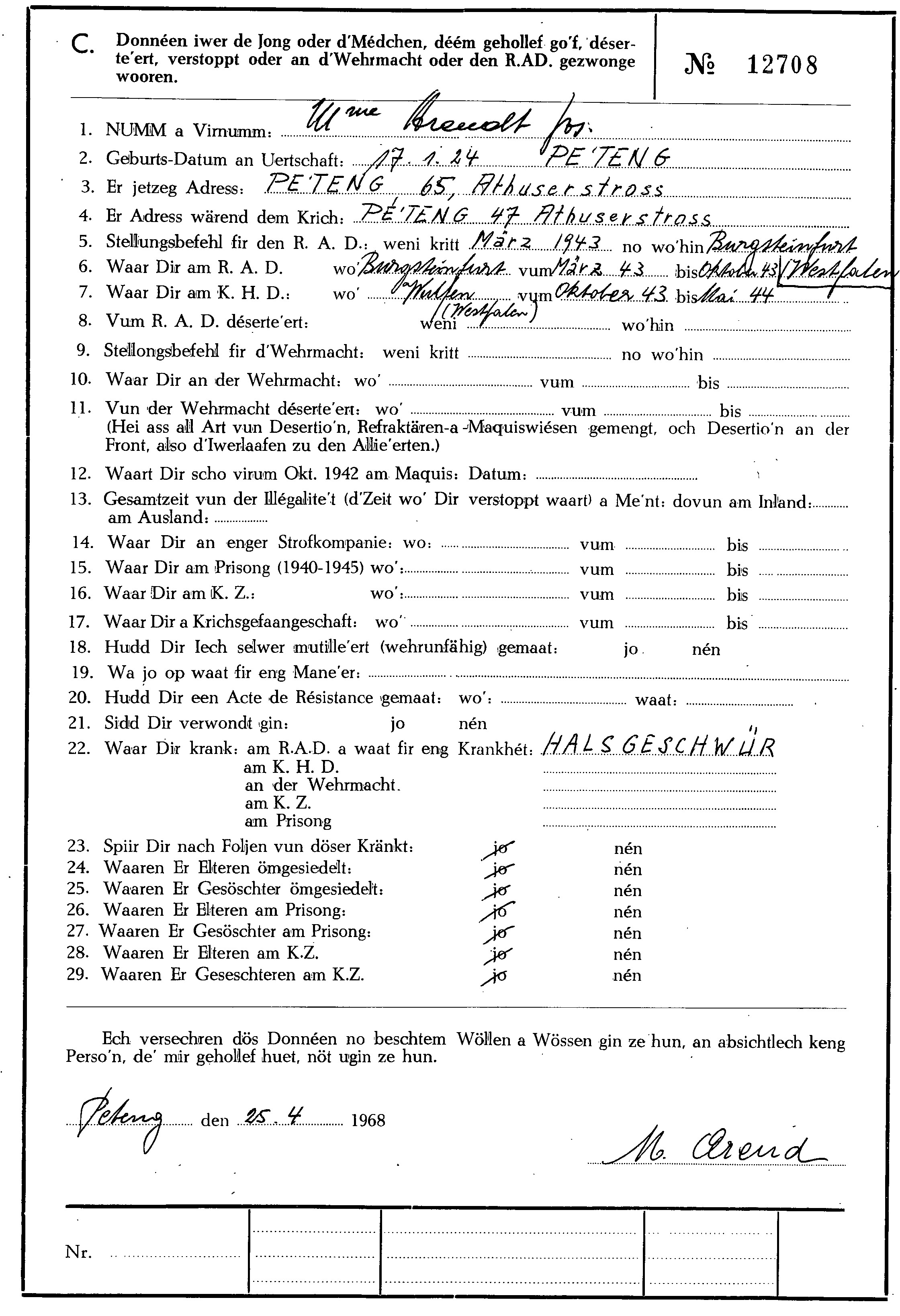 Nom, prénom, nom pendant l'occupation
