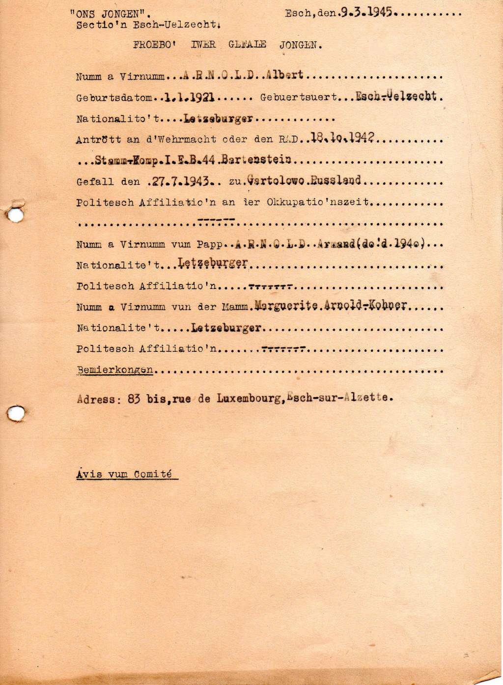 Nom, prénom, nom pendant l'occupation