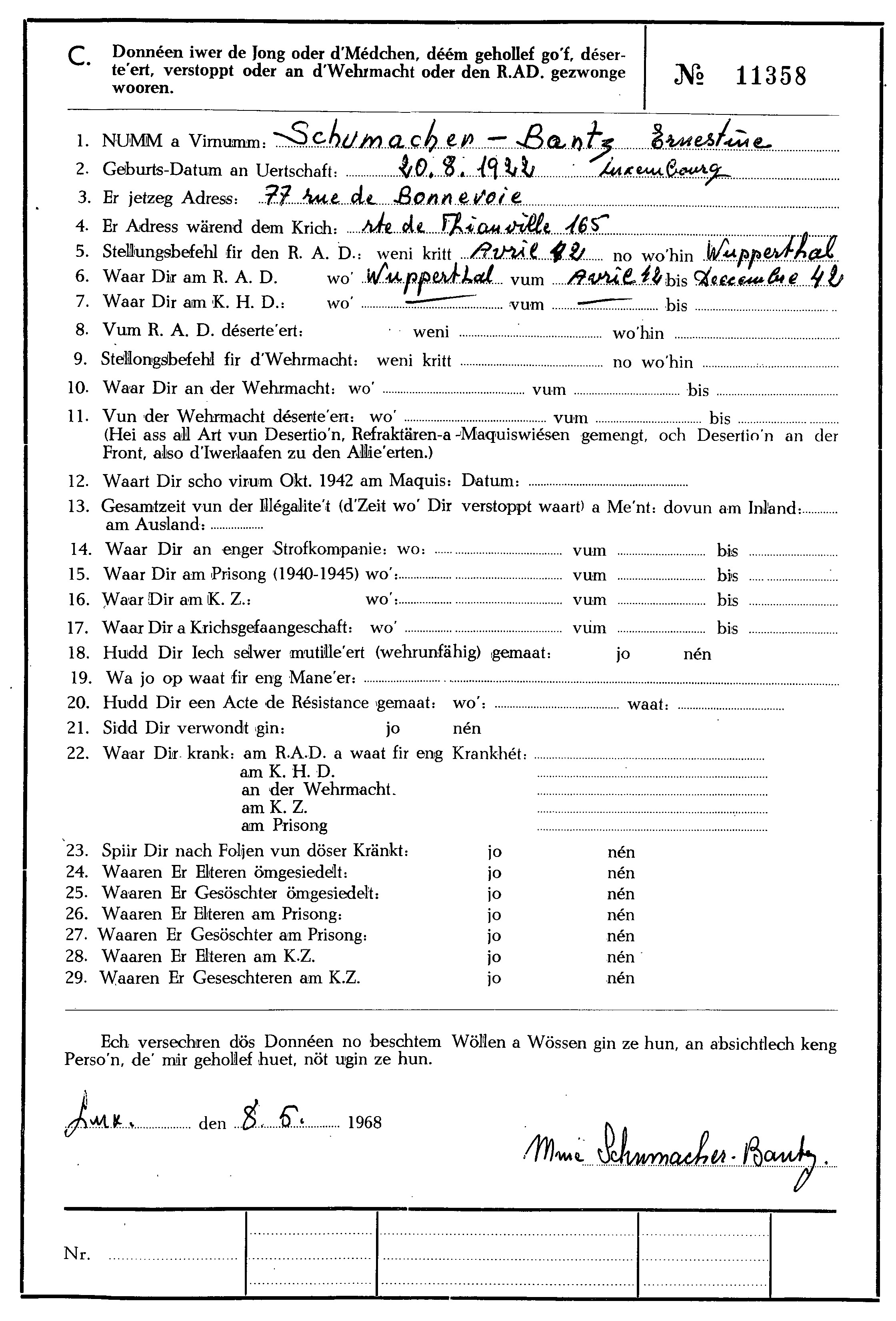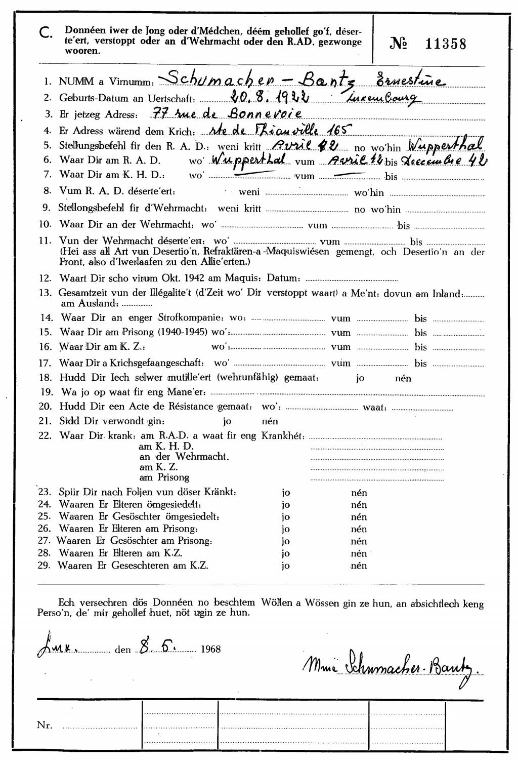 Nom, prénom, nom pendant l'occupation