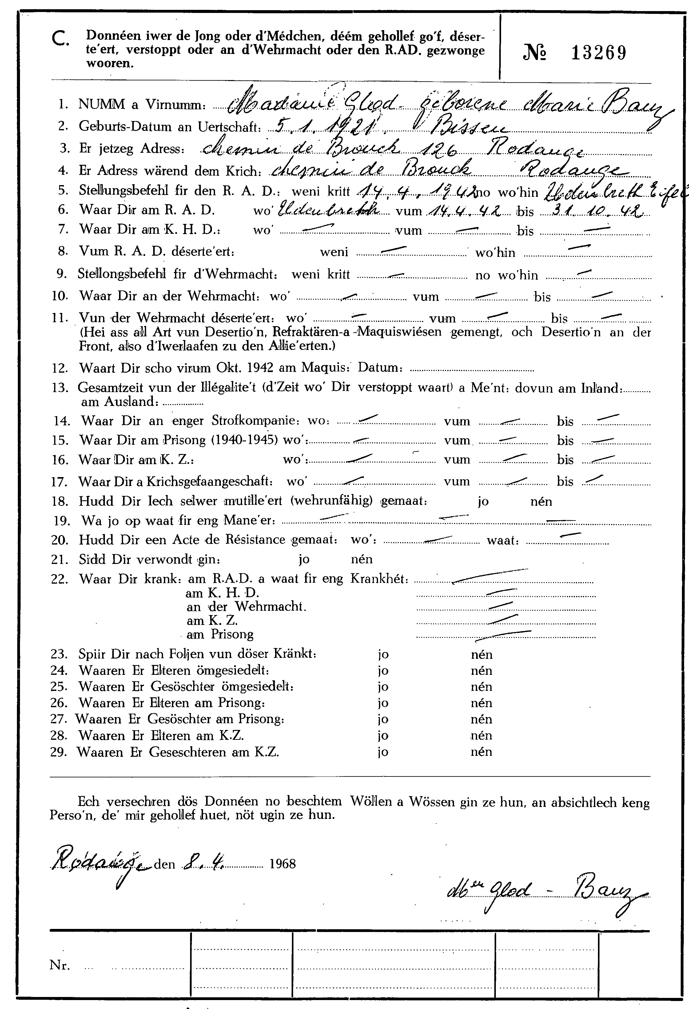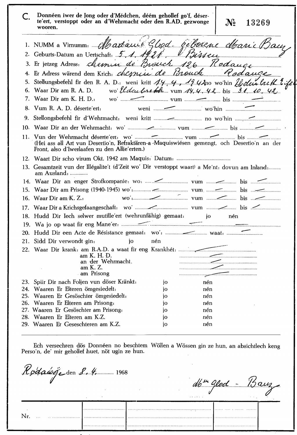 Banz épouse Glod Marie