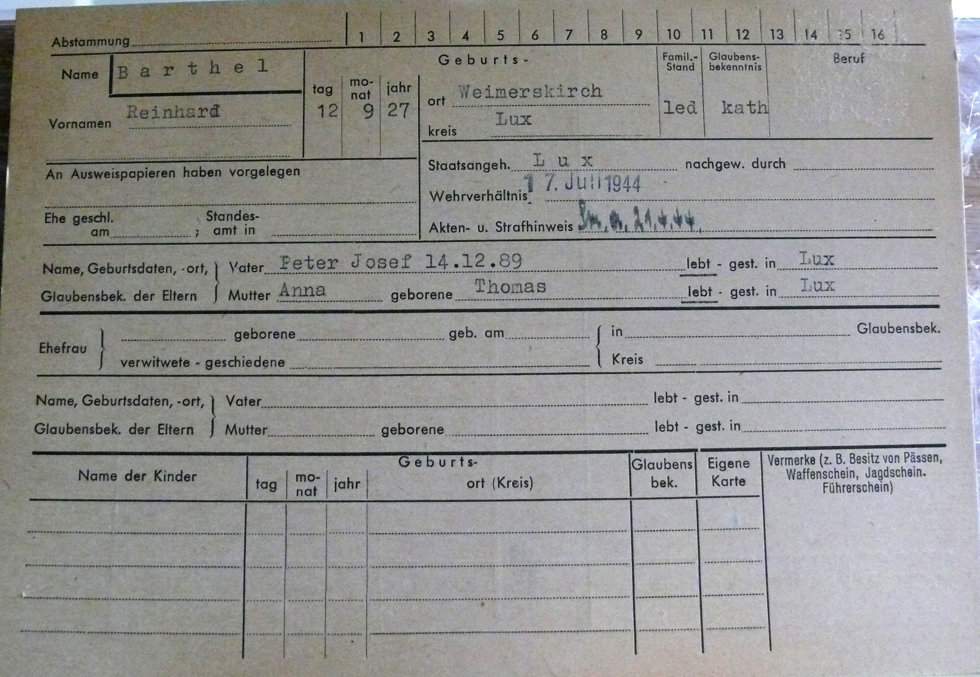 Nom, prénom, nom pendant l'occupation