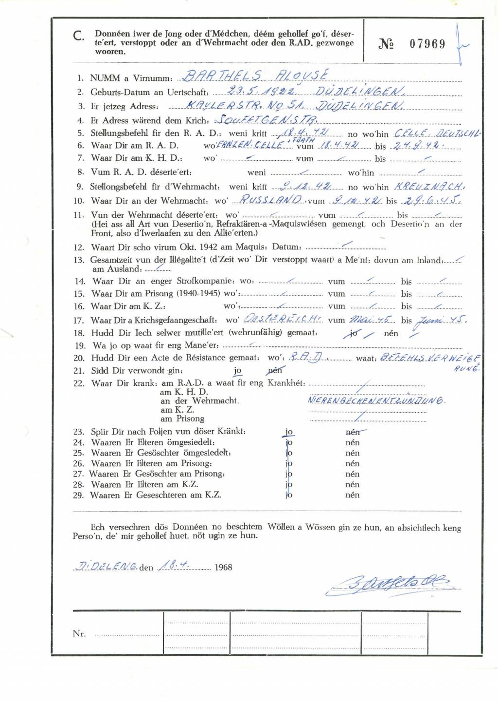 Nom, prénom, nom pendant l'occupation