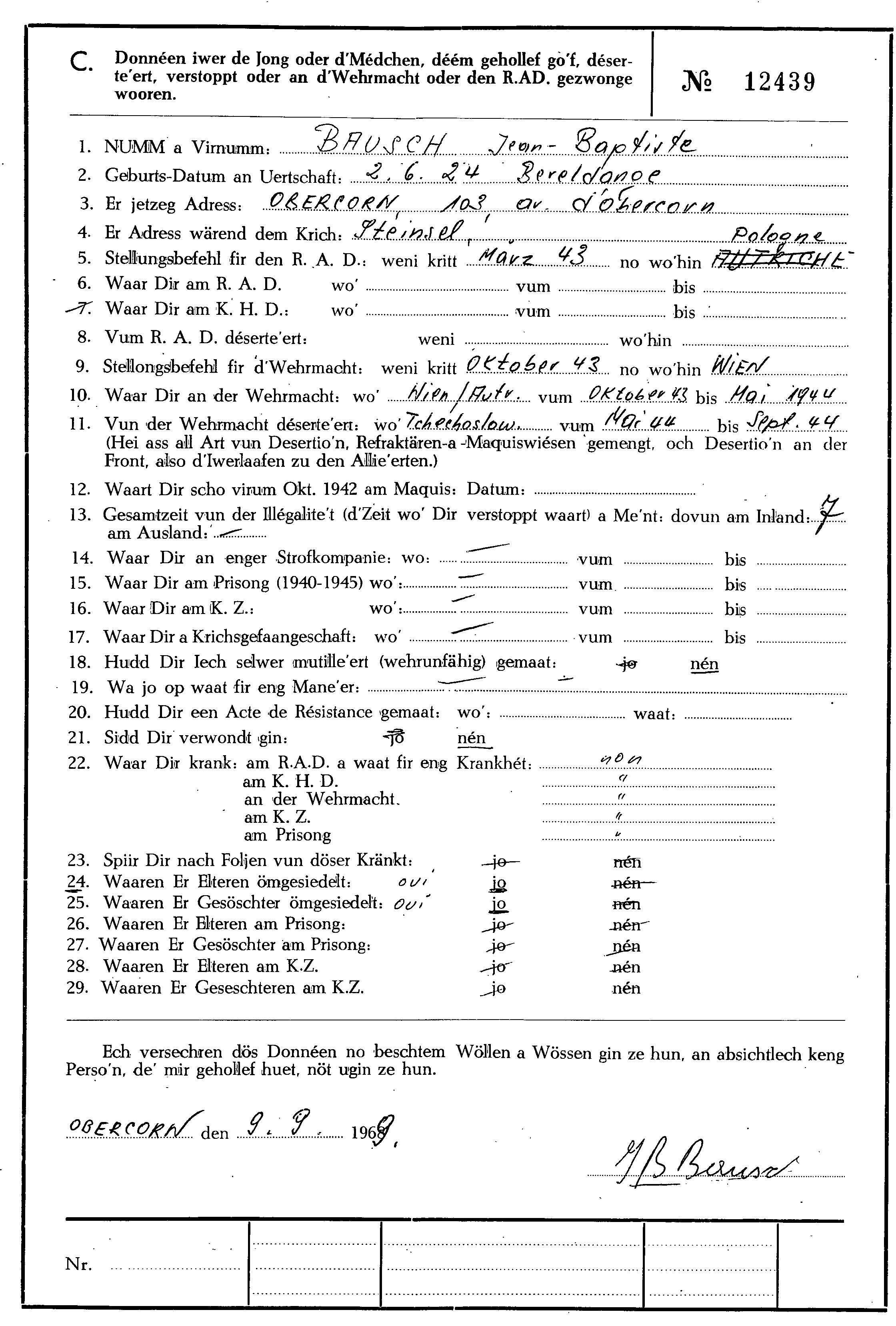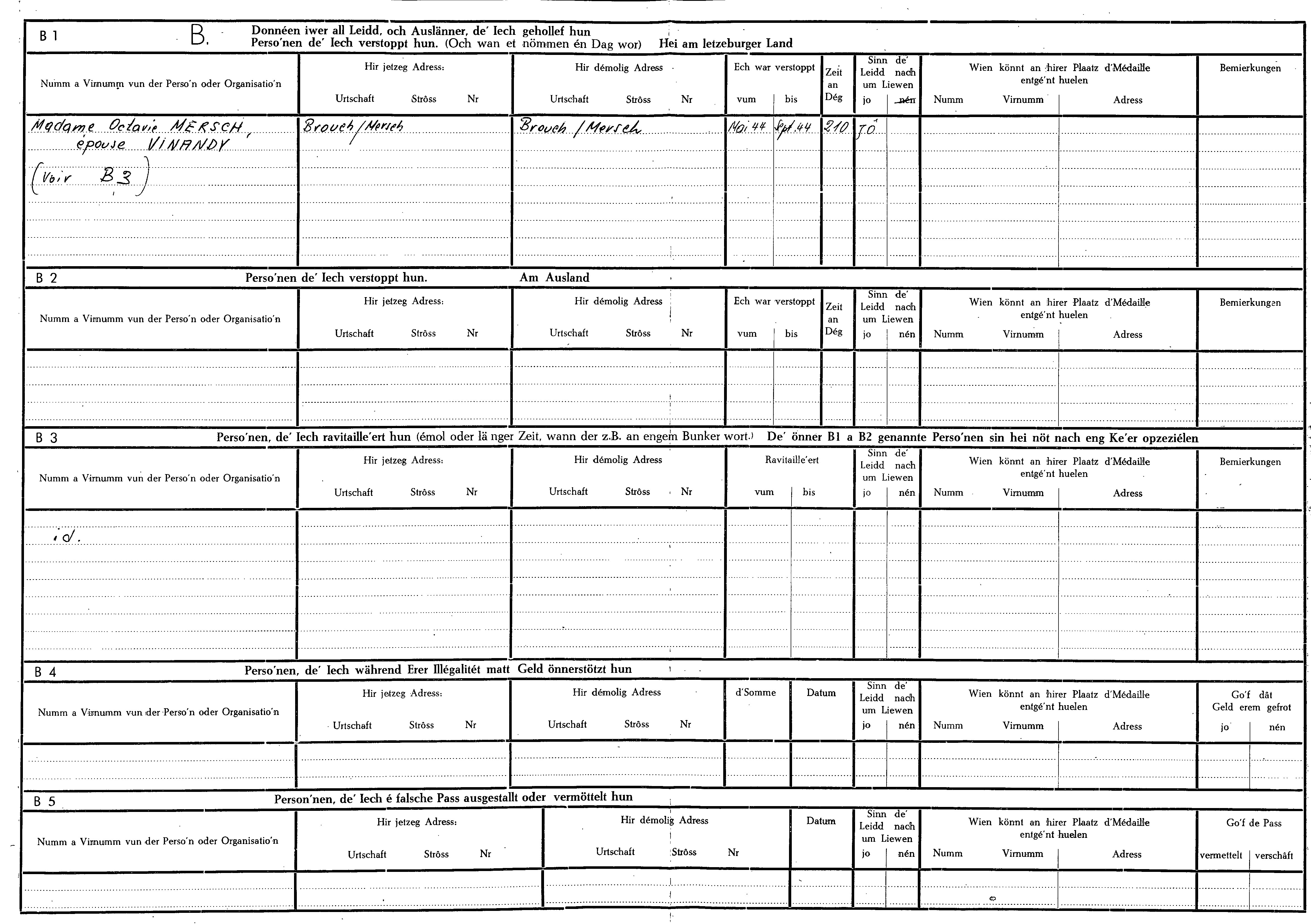 Nom, prénom, nom pendant l'occupation