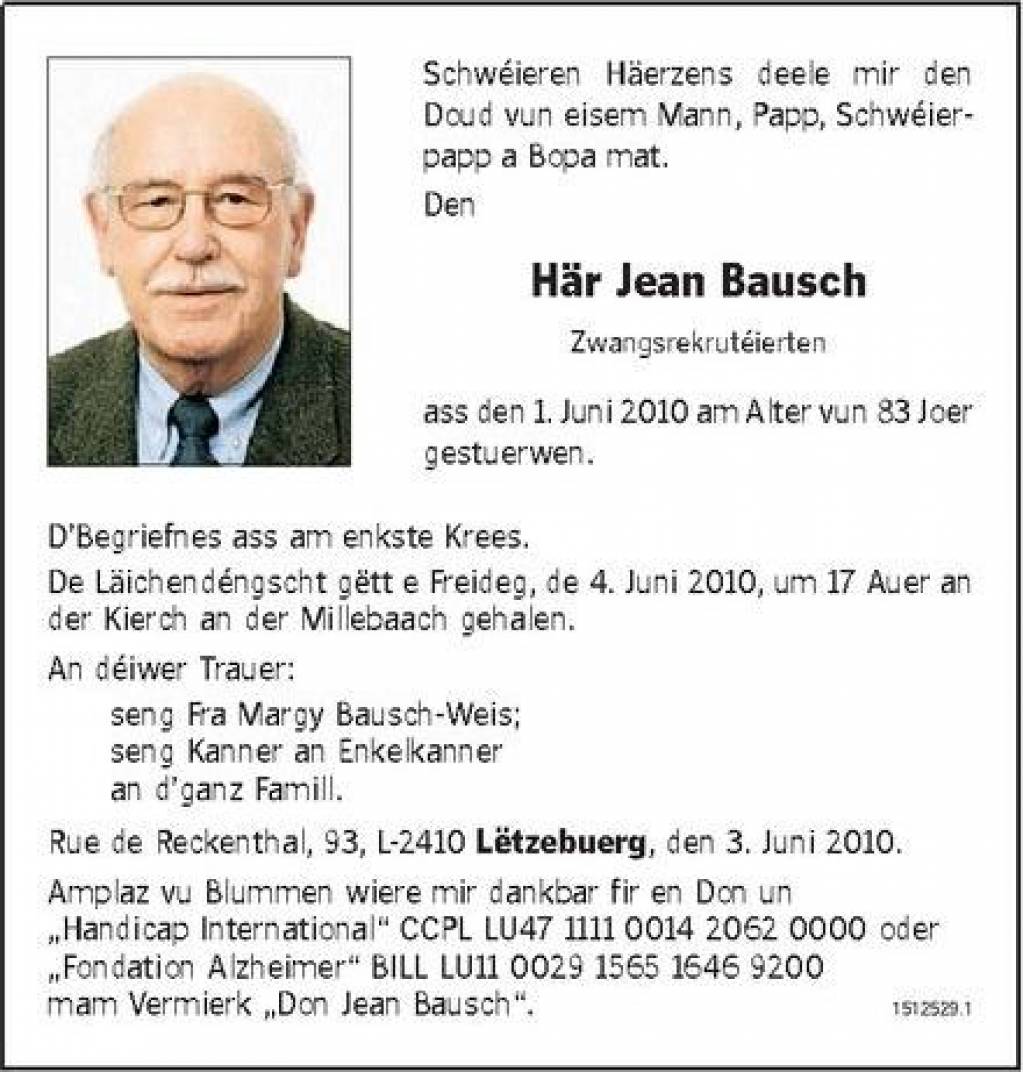 Bausch Jean Bausch Jean.jpg Télécharger le document Bausch Jean1.jpg Télécharger le document Divers RAD Russ 6_14 BEHM 1.JPG Télécharger le document