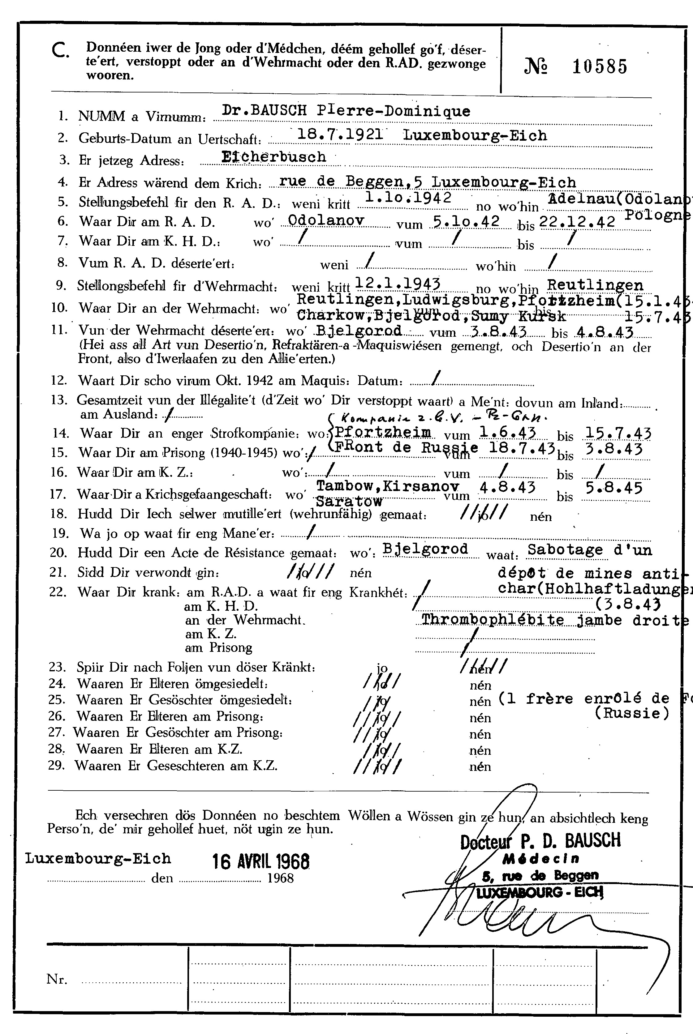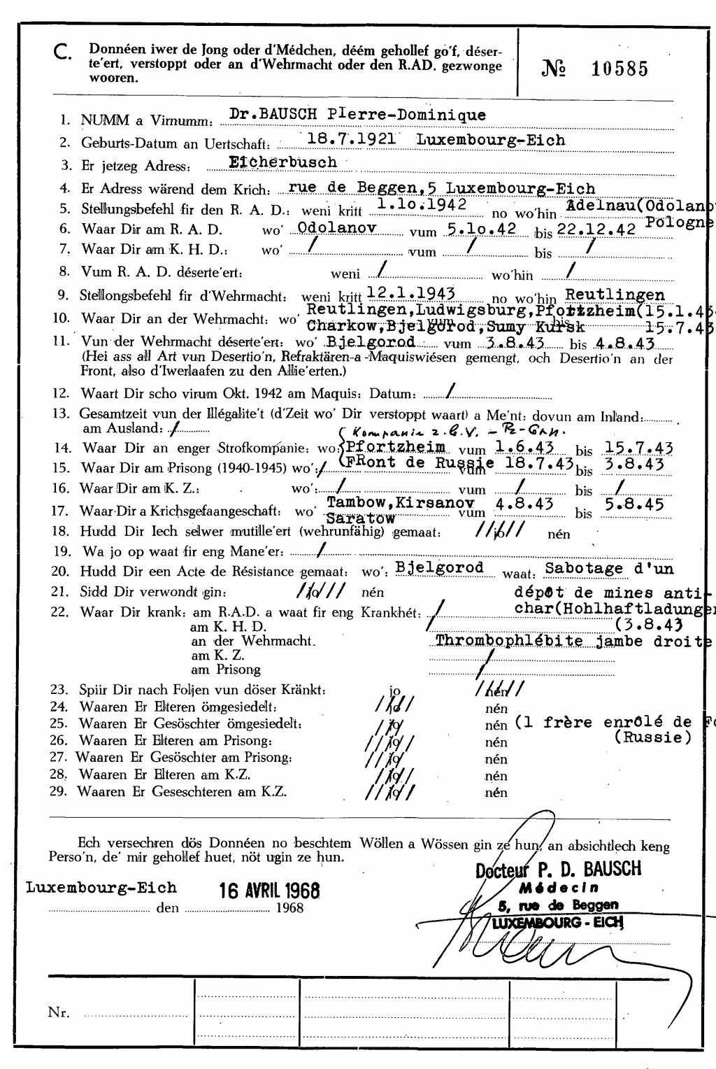 Nom, prénom, nom pendant l'occupation