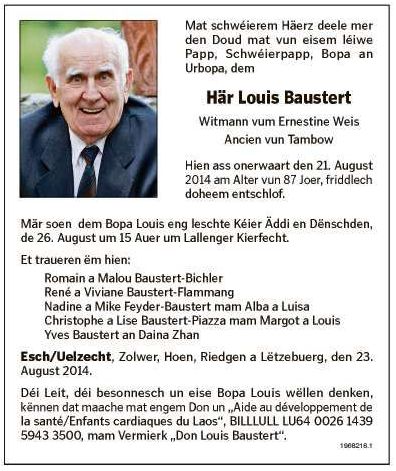 Baustert Louis Baustert_Louis_03091926_Sanem_21082014_EschAlzette.jpg Télécharger le document img380.jpg Télécharger le document img381.jpg Télécharger le document img382.jpg Télécharger le document img383.jpg Télécharger le document