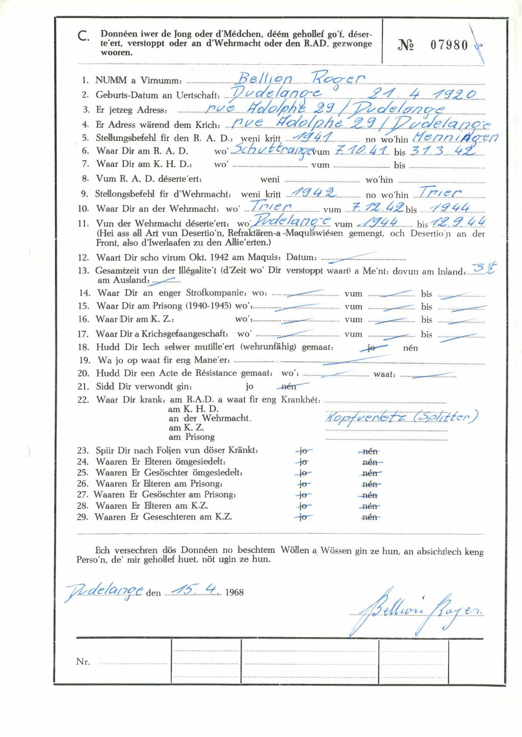 Bellion Roger 21041920 Dudelange 1.jpg Télécharger le document 2.jpg Télécharger le document 3.jpg Télécharger le document Bellion_Roger_21041920_Dudelange_Fonds_WEIRICH_Jos_HOLLERICH_Box_9_2018.jpg Télécharger le document