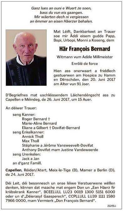 Bernard_Francois_Beles 21_Bernard_Francois_03111925_Beles_20062017_Hamm_LW_24062017.jpg Télécharger le document Bernard_Francois_03111925_BELES_LW_04122015.jpg Télécharger le document MRN 1.jpg Télécharger le document 2.jpg Télécharger le document 3.jpg Télécharger le document