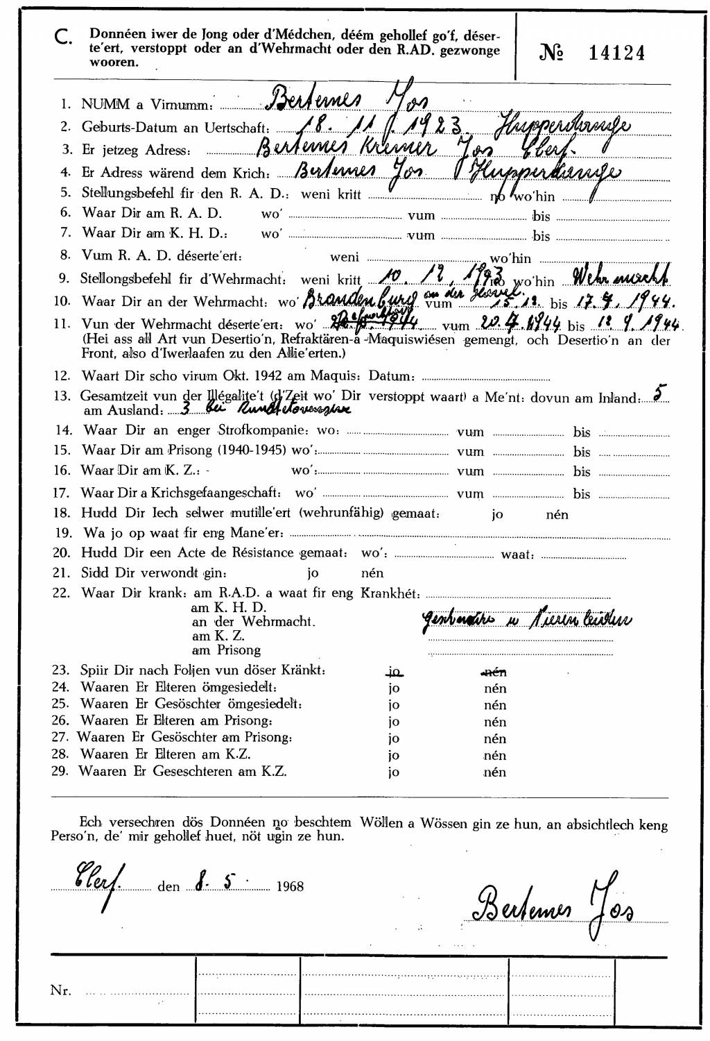 Nom, prénom, nom pendant l'occupation