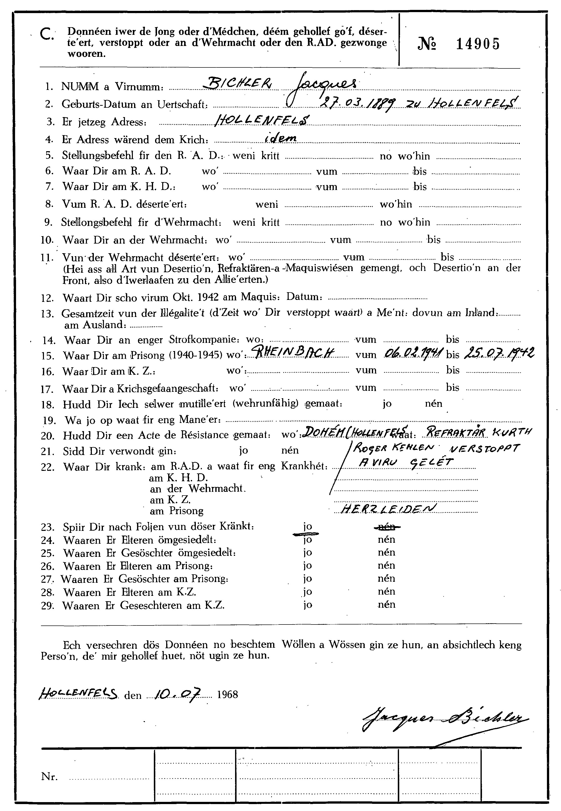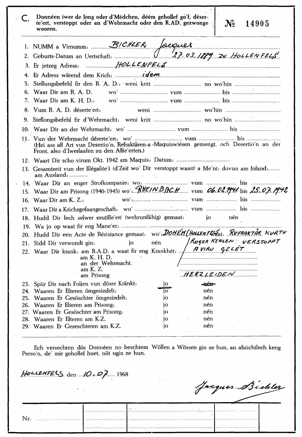 Nom, prénom, nom pendant l'occupation
