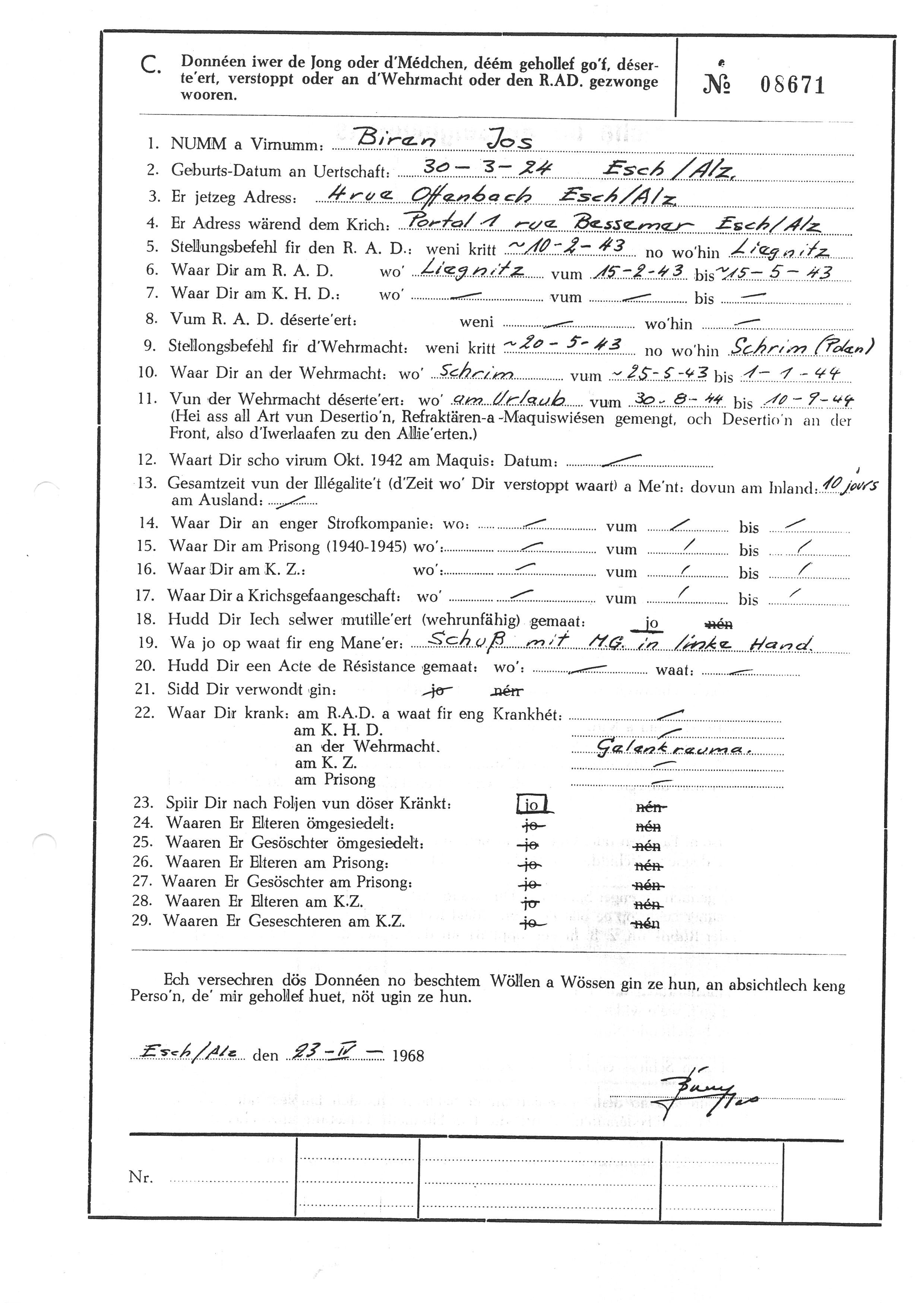 BIREN Jos 30031924 Esch sur Alzette 1.jpg Télécharger le document 2.jpg Télécharger le document 3.jpg Télécharger le document Biren_Jos_30031924_EschAlzette_Archive_HOLLERICH_mars_2018.jpg Télécharger le document