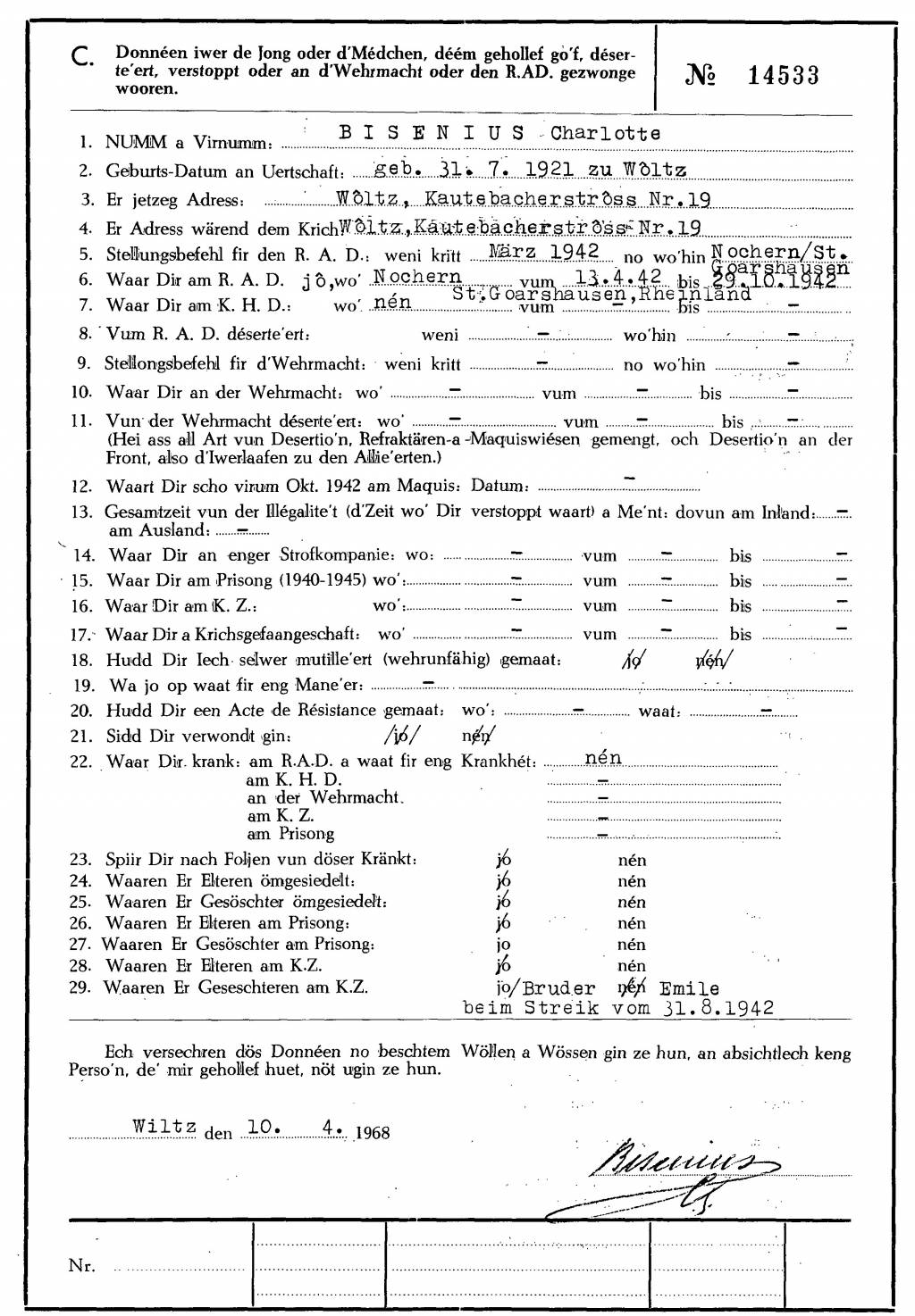 Nom, prénom, nom pendant l'occupation