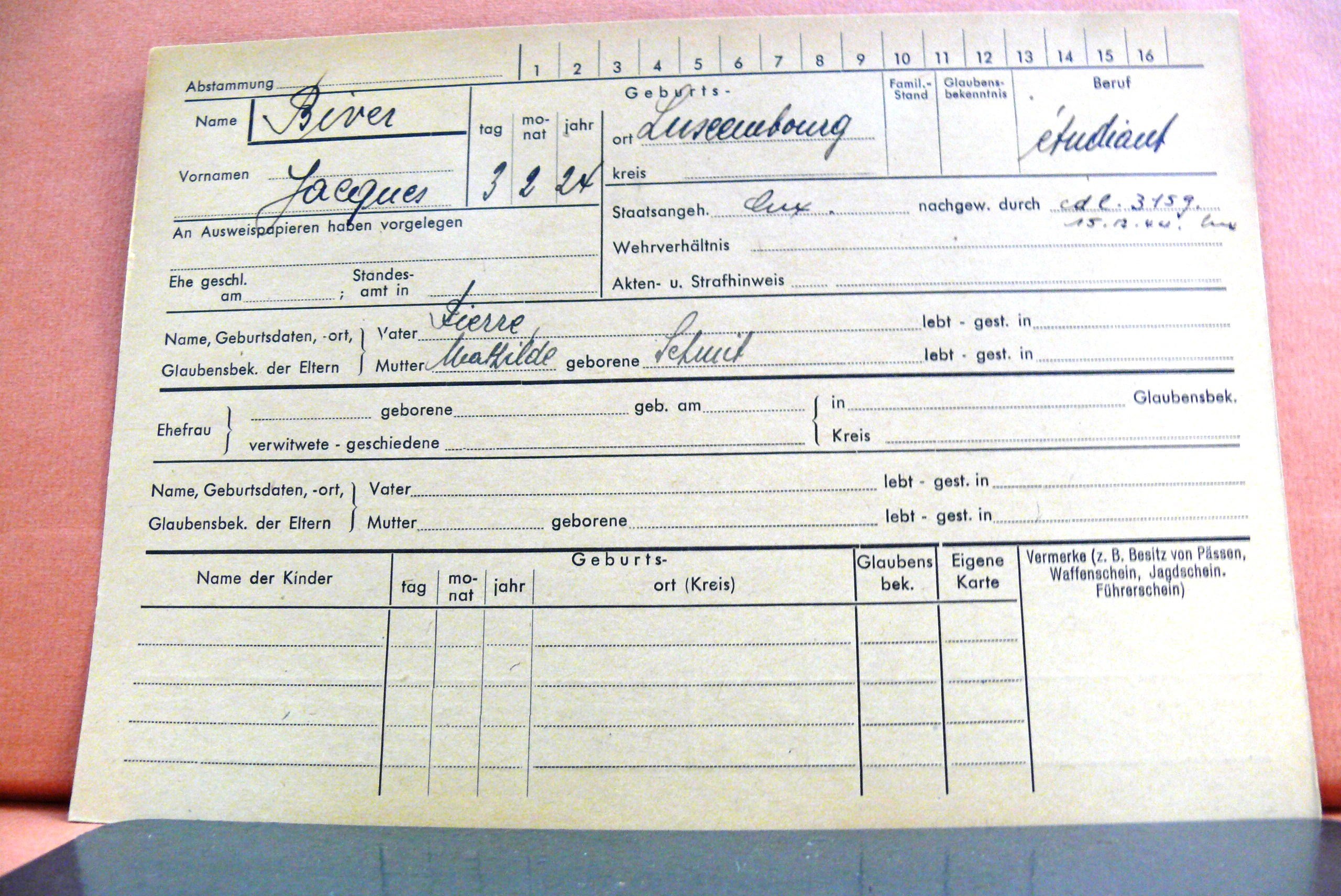 Nom, prénom, nom pendant l'occupation