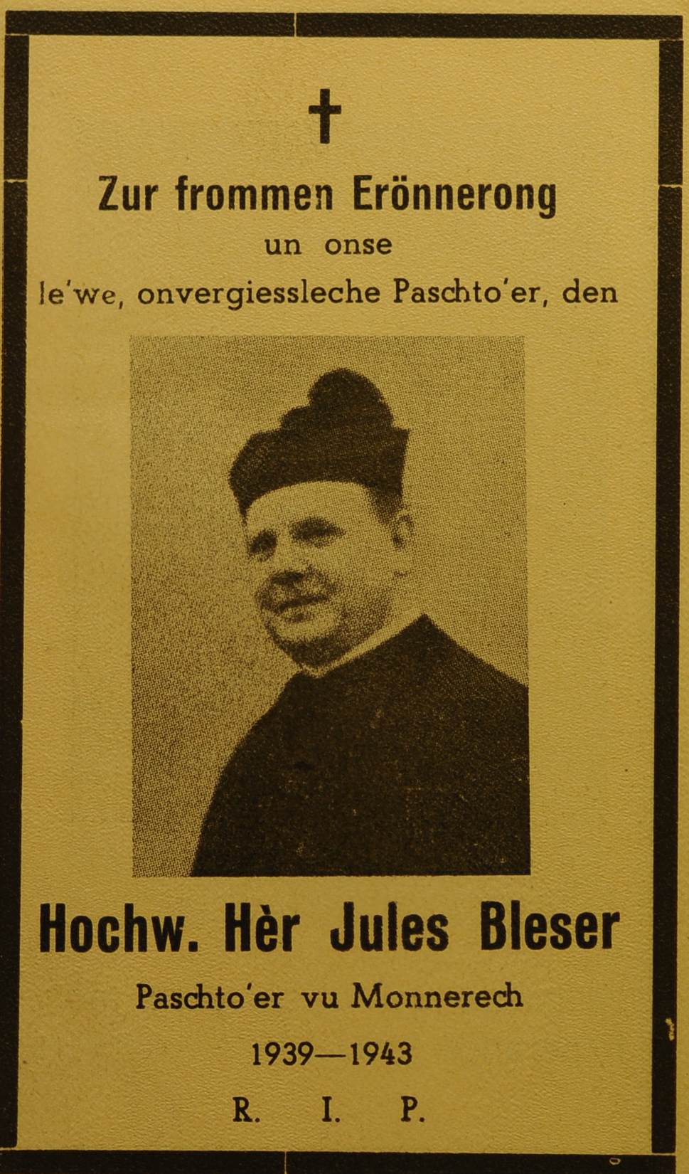 Bleser Jules 1897Die Lux Kirche im Zweiten Weltkrieg 1991 img694.jpg Télécharger le document Divers Img2057.jpg Télécharger le document Zwangsrekrutiert3AH.jpg Télécharger le document Totenbilder Klerus BEHM Michel 1.JPG Télécharger le document 2.JPG Télécharger le document 3.JPG Télécharger le document 4.JPG Télécharger le document