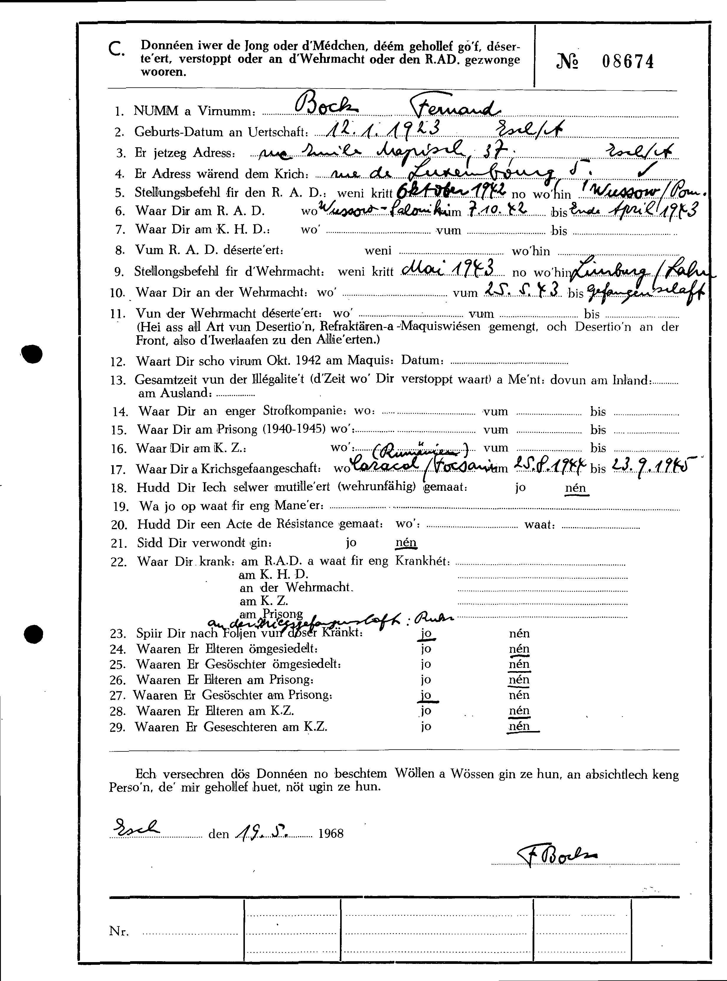 BOCK Fernand 12011923 Esch sur Alzette 1.jpg Télécharger le document 2.jpg Télécharger le document 3.jpg Télécharger le document Divers Bock Fernand Gustav 12011923 Esch Alzette 03072007.pdf Télécharger le document