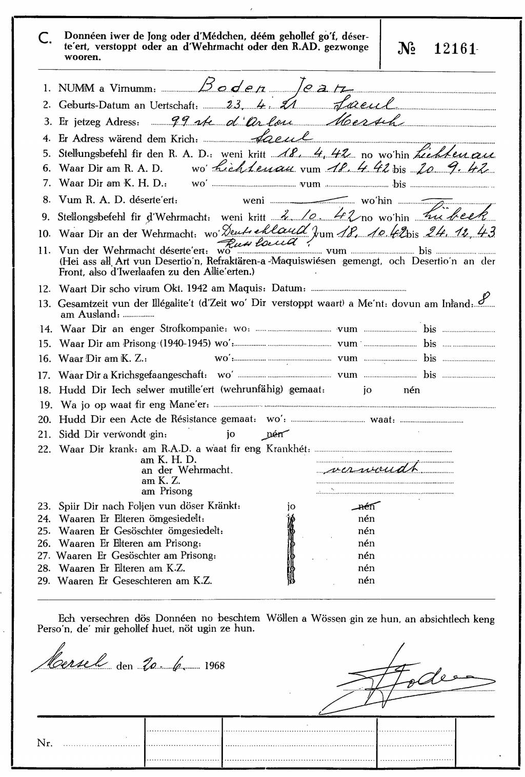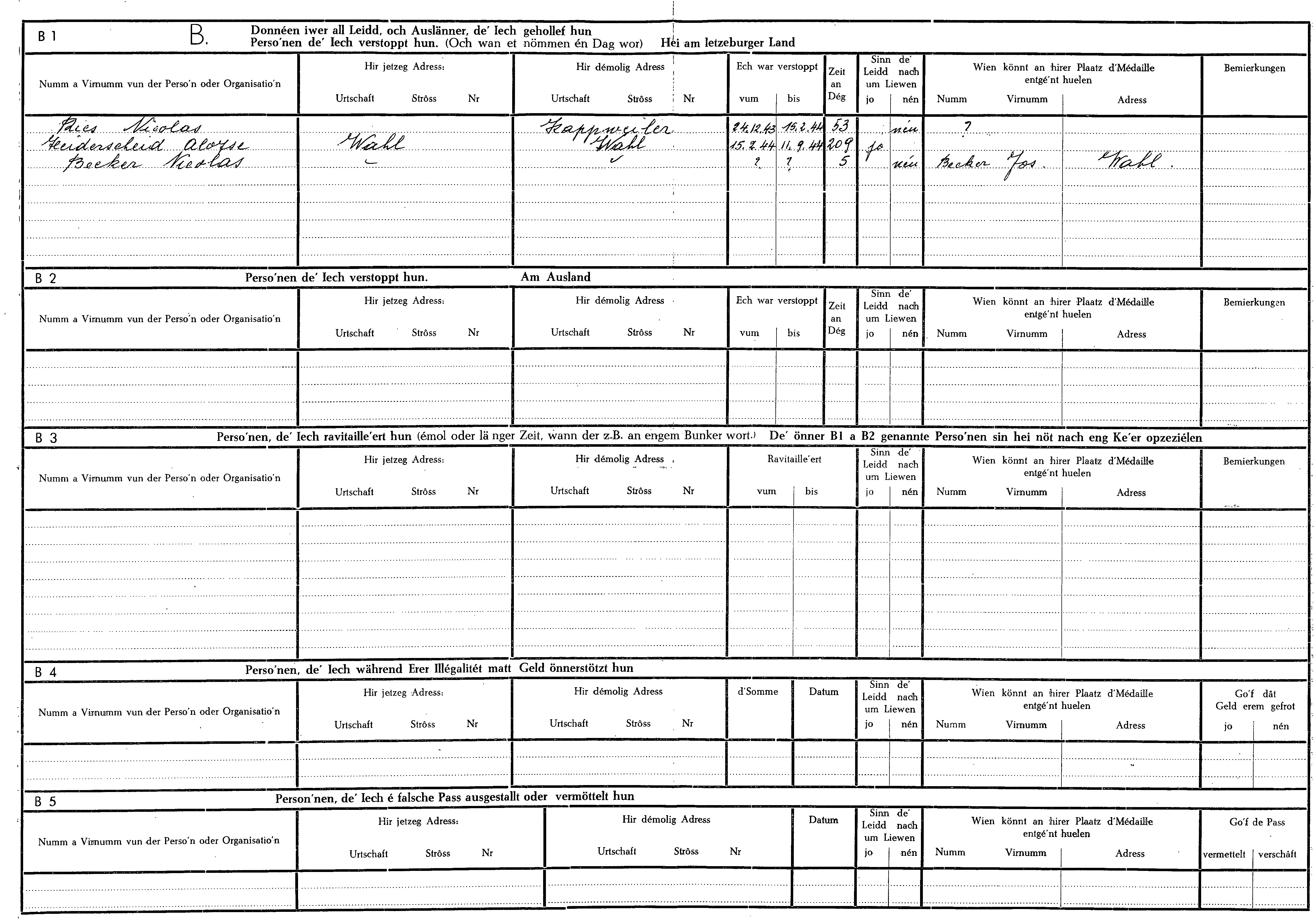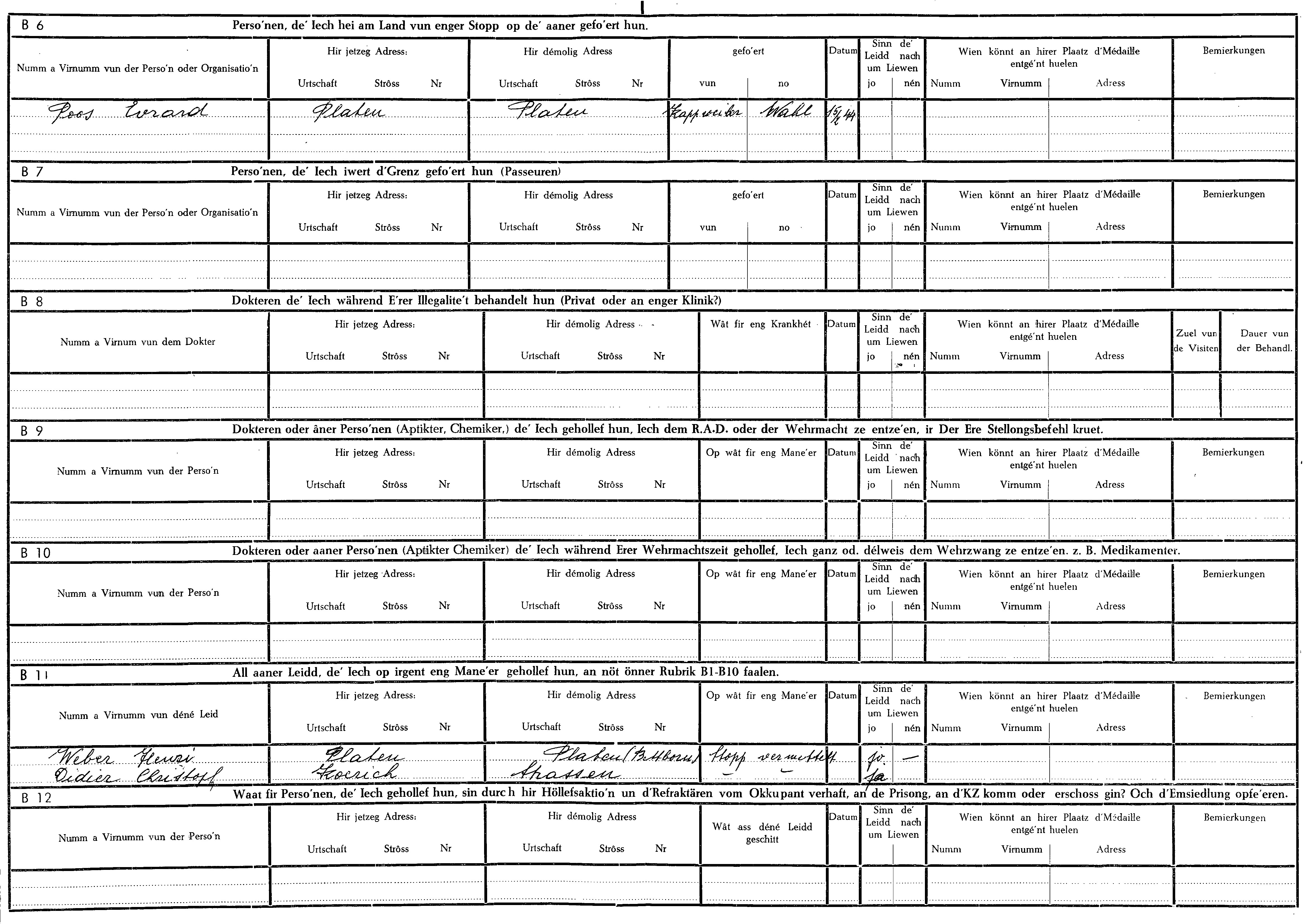 Nom, prénom, nom pendant l'occupation