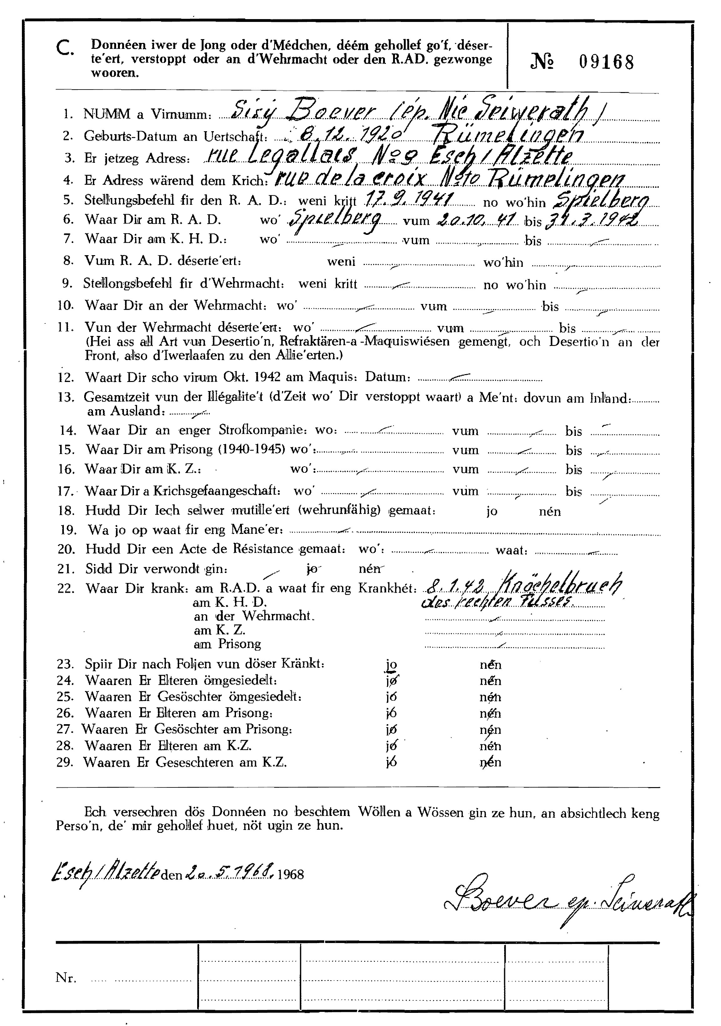 SEIWERATH epouse de BOEVER Sisy 08121920 Rumelingen 1.jpg Télécharger le document 2.jpg Télécharger le document 3.jpg Télécharger le document