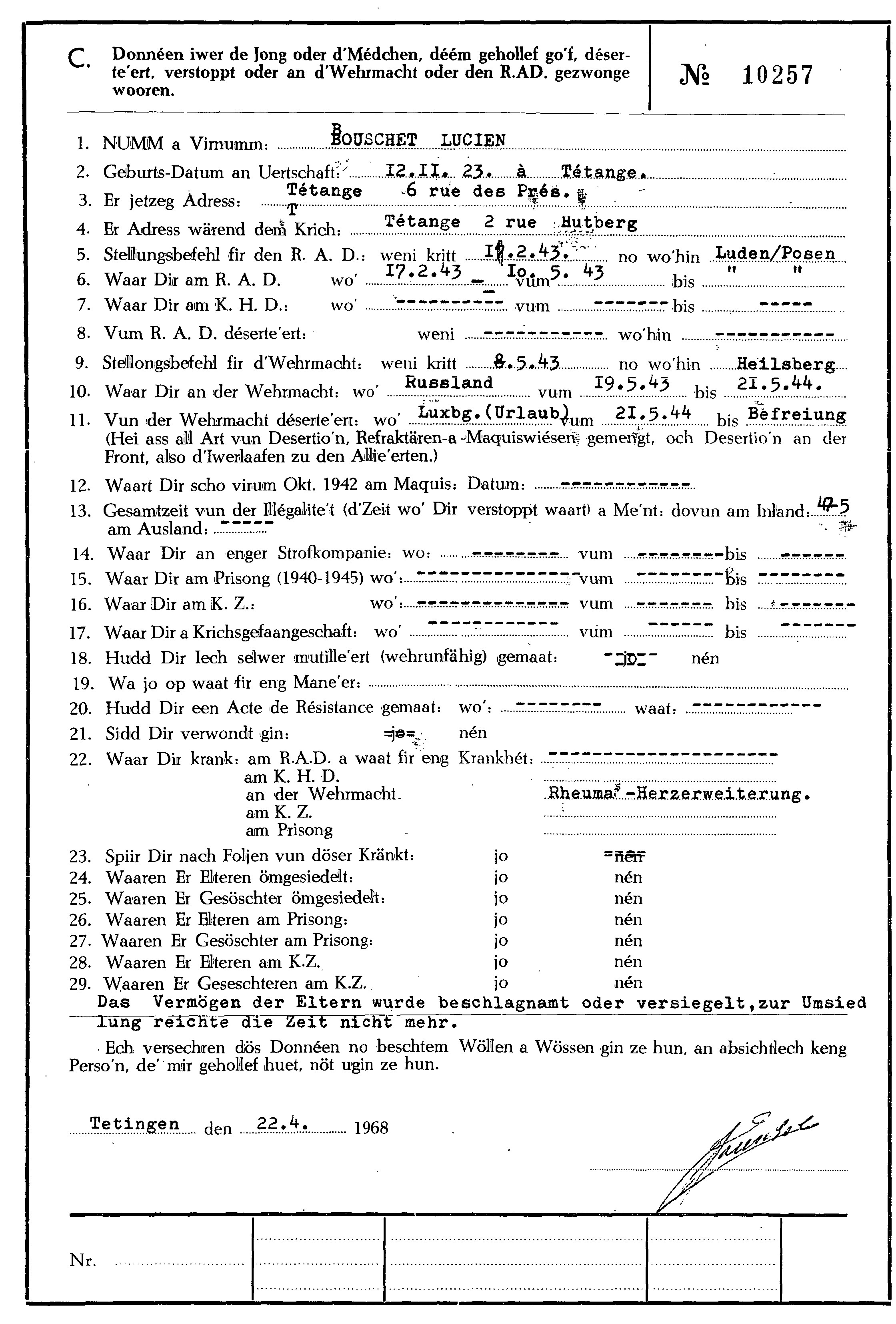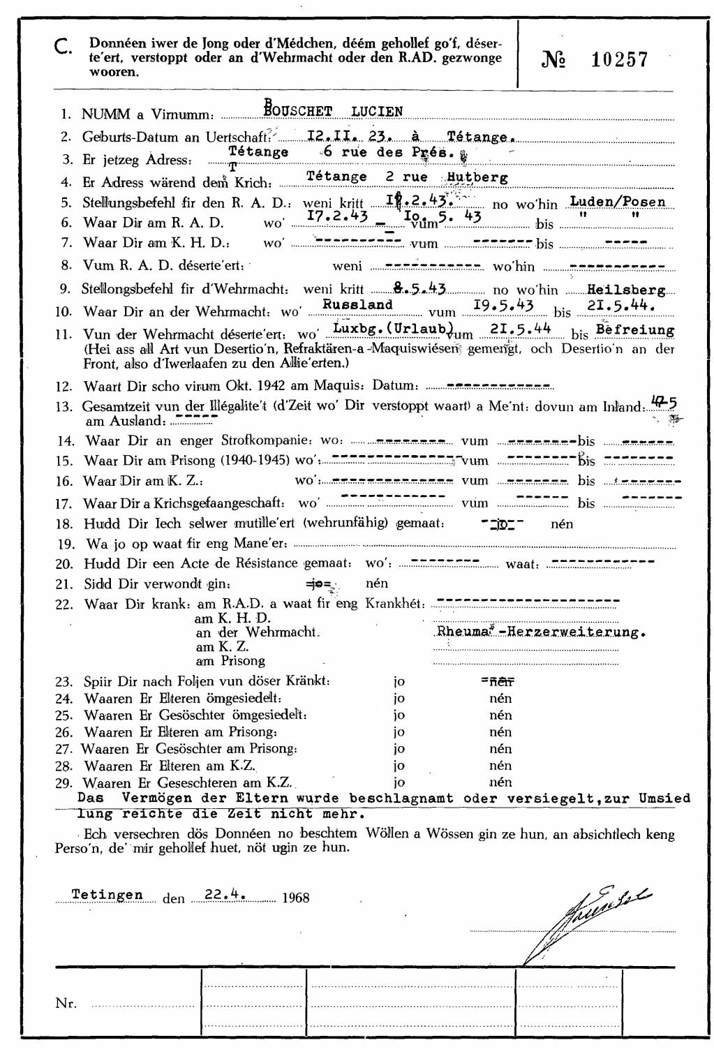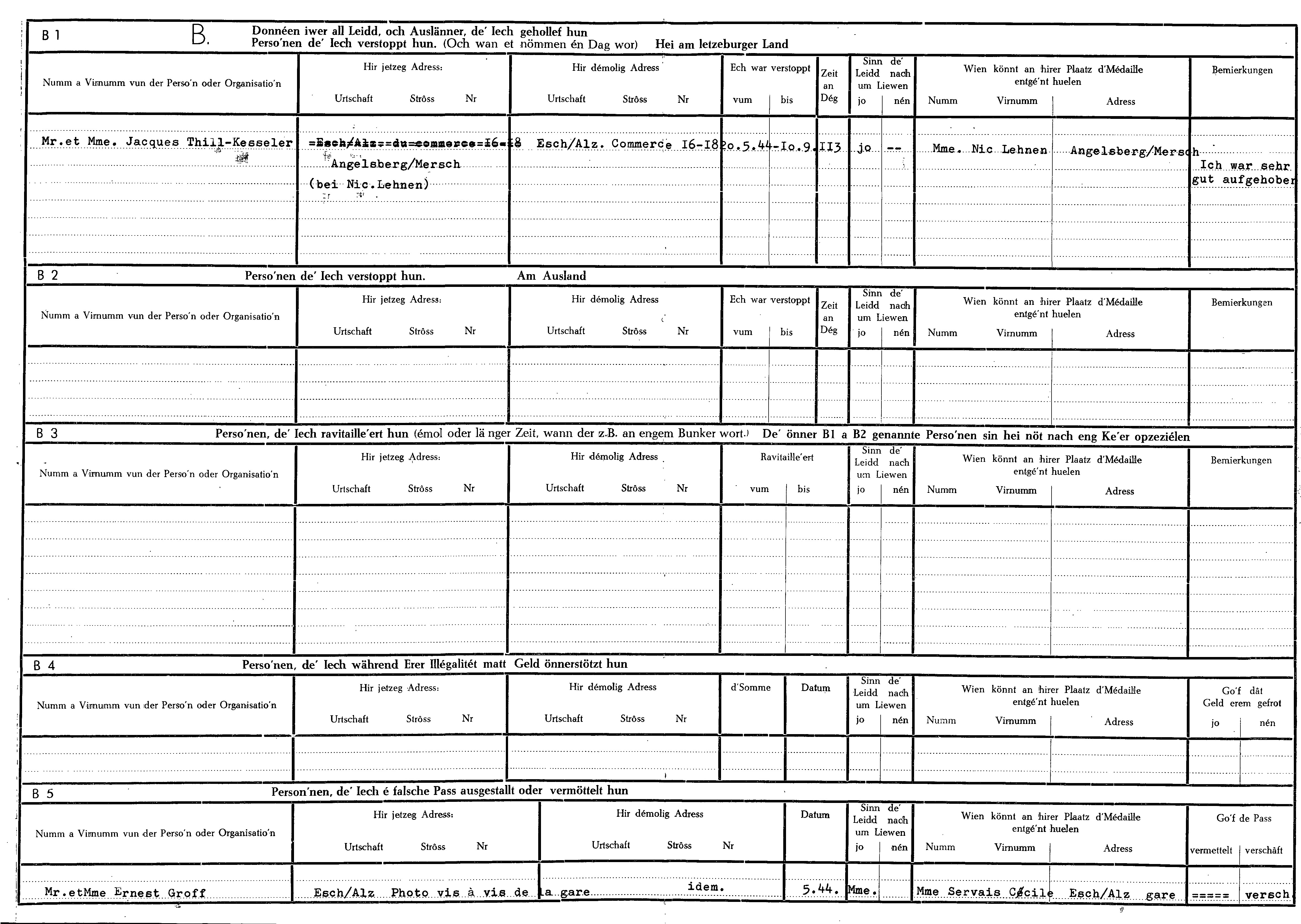 Nom, prénom, nom pendant l'occupation