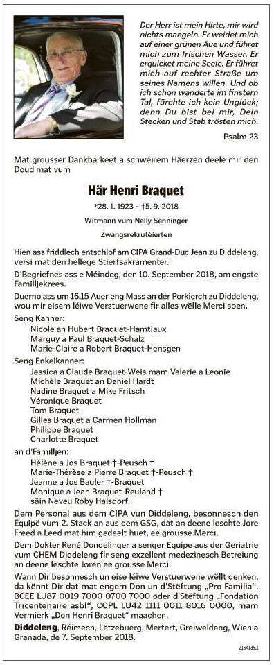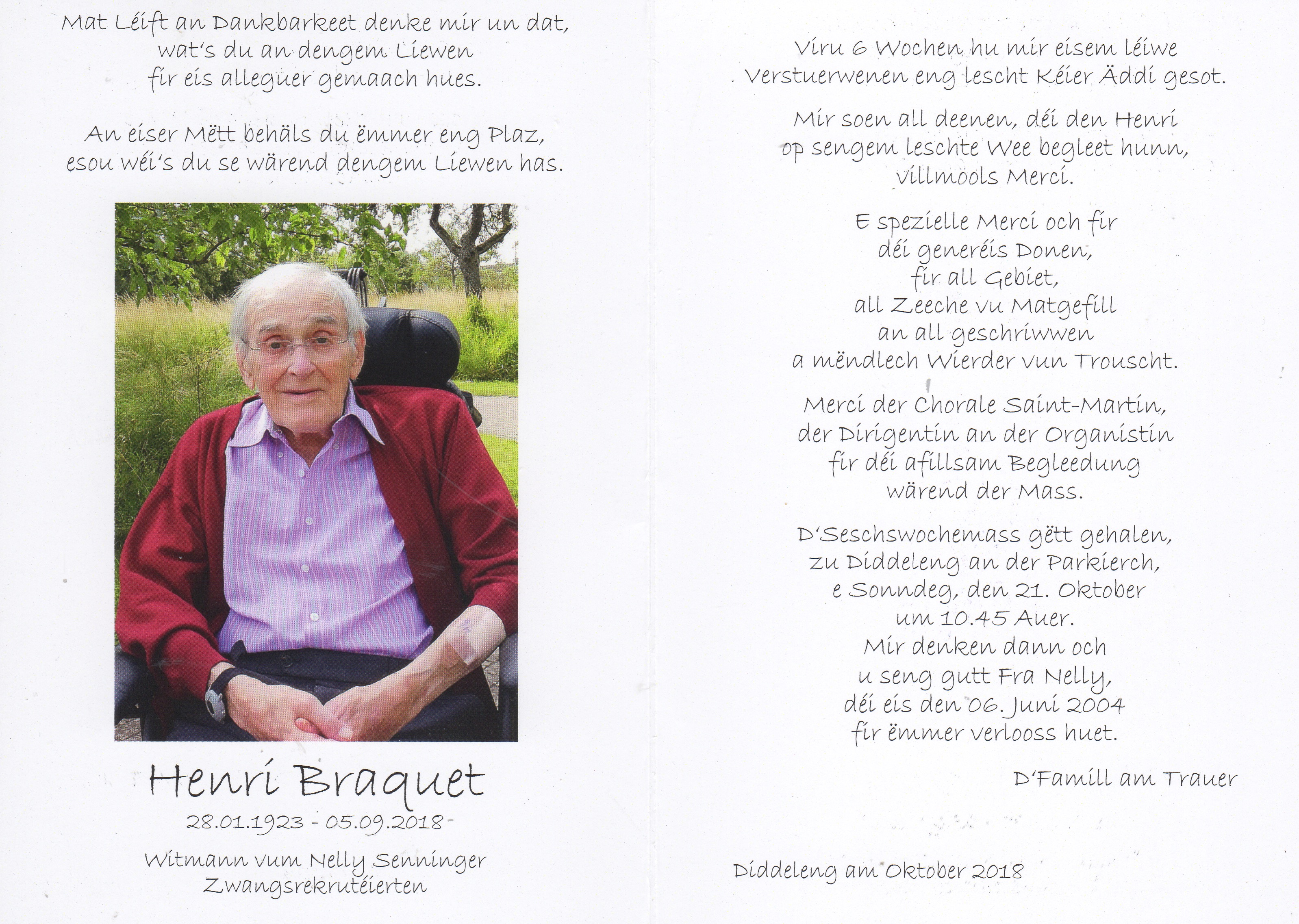 Extrait_Livre_TROSSEN_Marc_2018_Verluere_Joeren_Band_III__Famille_Braquet Braquet_Henri_.jpeg Télécharger le document Braquet_Henri.jpeg Télécharger le document RIP_Braquet_Henri Braquet_Henri 2.jpeg Télécharger le document Braquet_Henri_.jpeg Télécharger le document Braquet_Henri_28011923-05092018_Dudelange_LW_07092018.jpg Télécharger le document