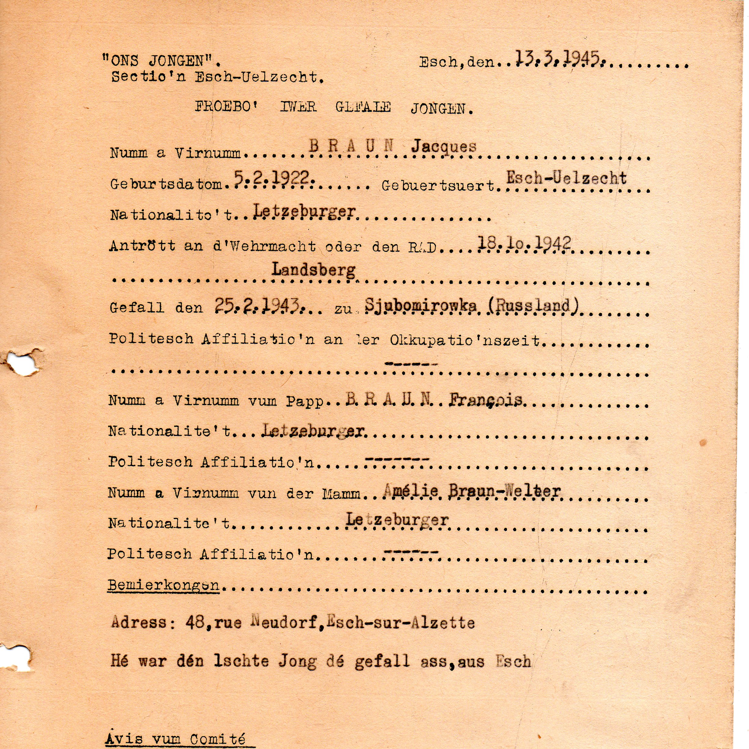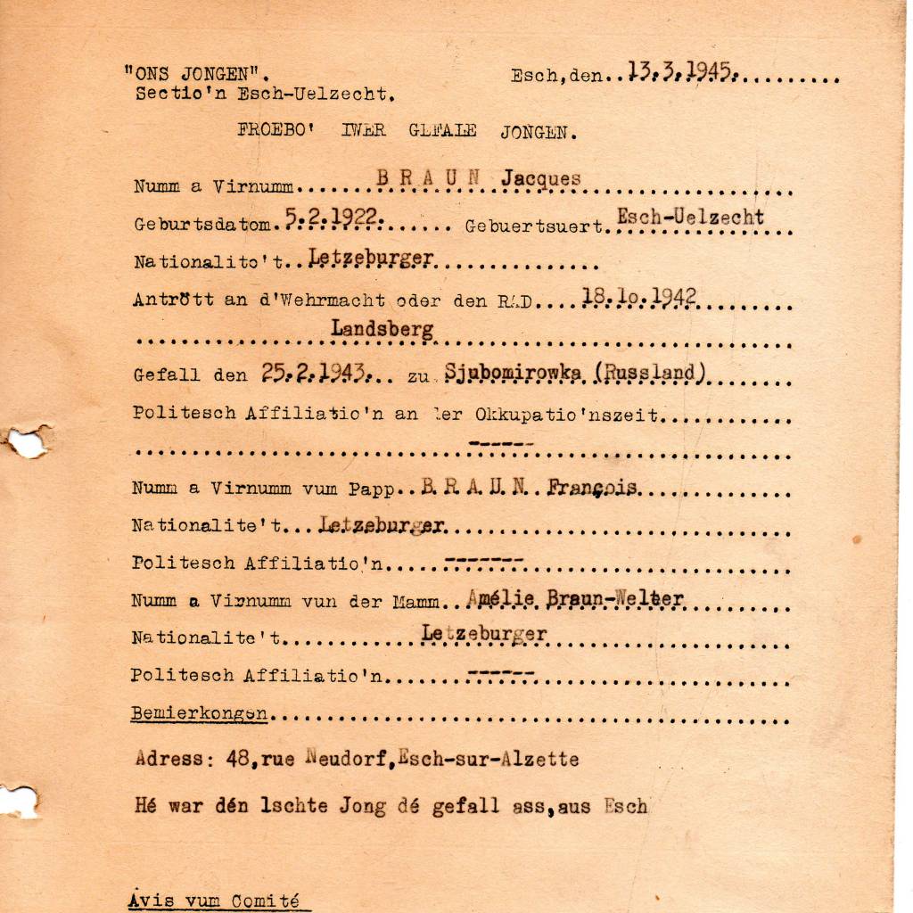 Nom, prénom, nom pendant l'occupation