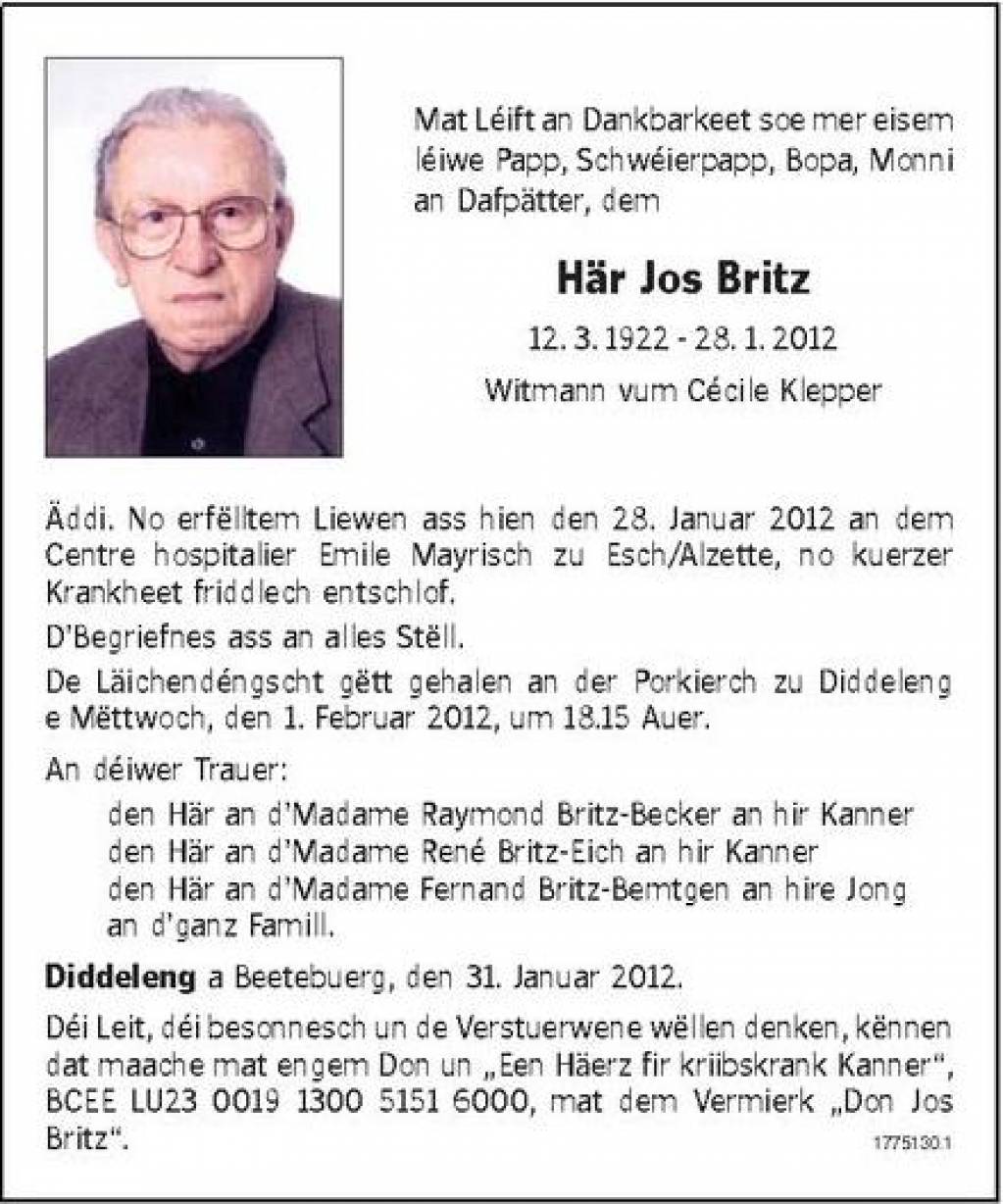 Britz Jos 12031922 Schouweiler [Untitled]001.jpg Télécharger le document Britz Jos.jpg Télécharger le document Britz Joseph.jpg Télécharger le document Jos Britz.jpg Télécharger le document
