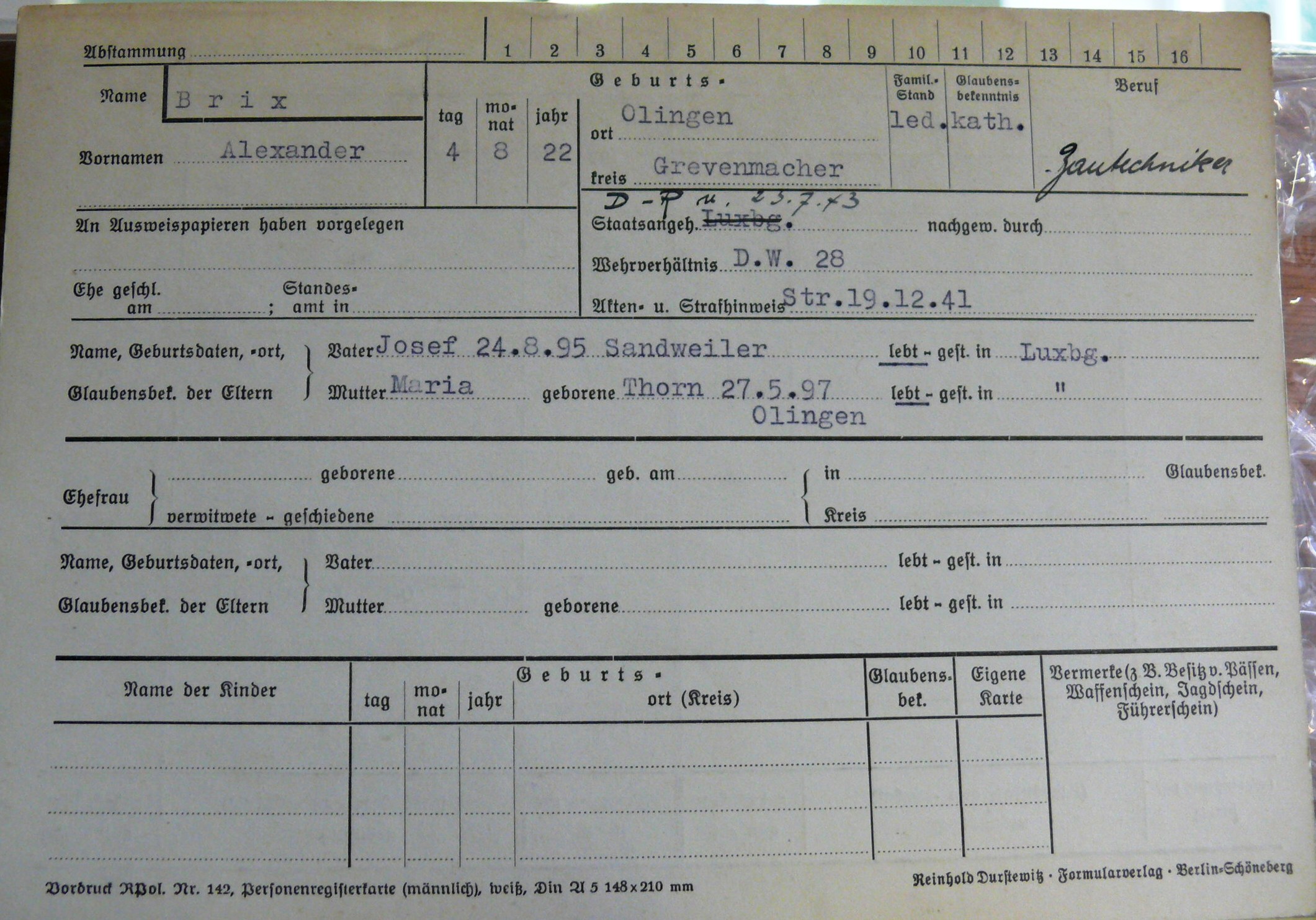 Nom, prénom, nom pendant l'occupation