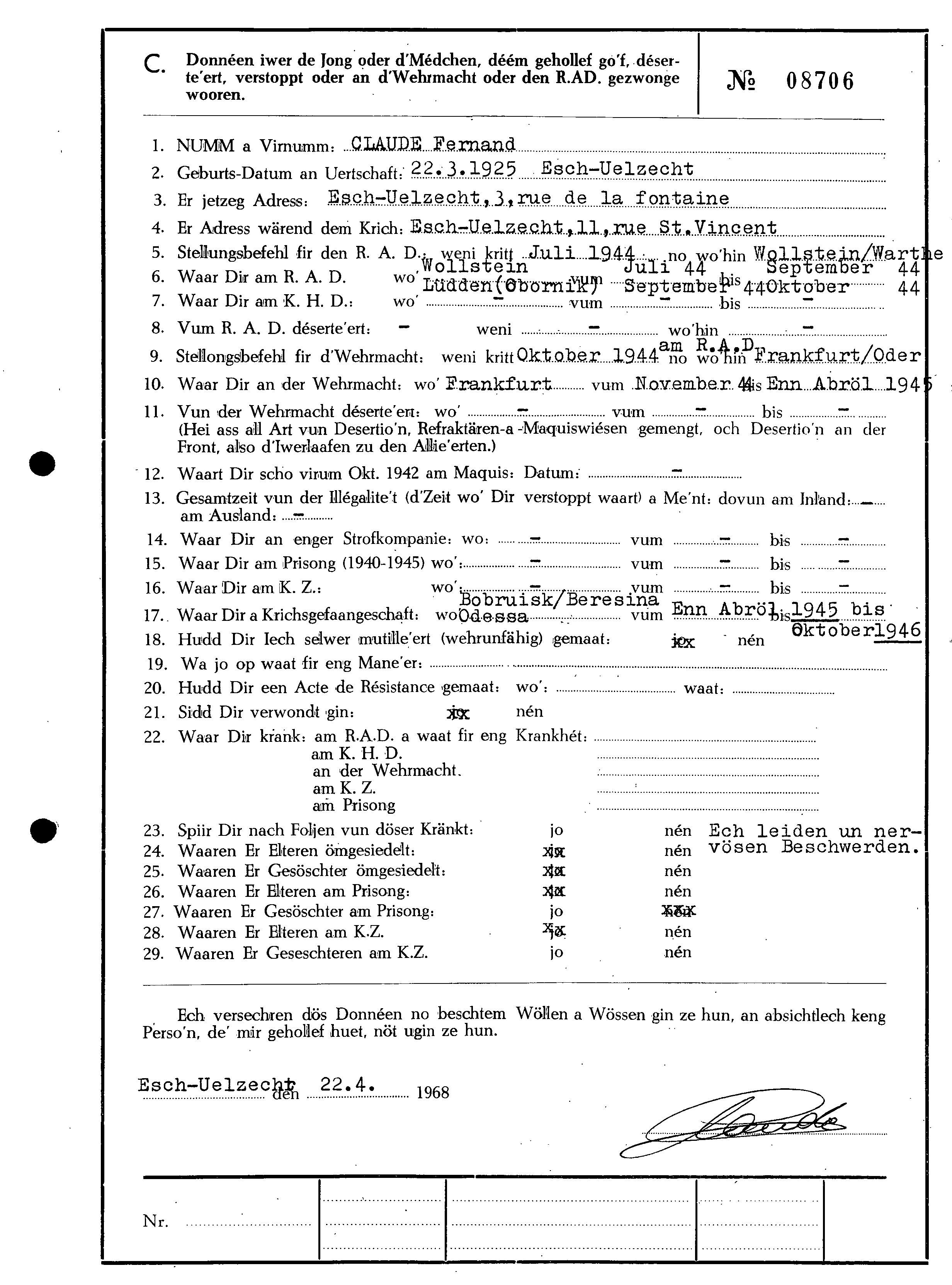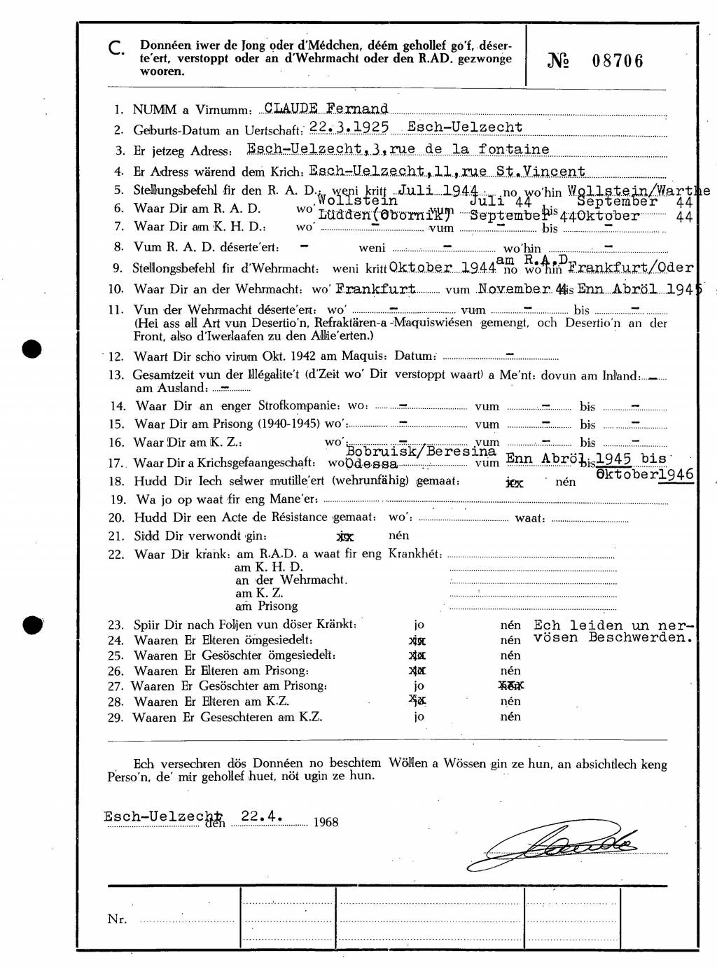 CLAUDE Fernand 22031925 Esch sur Alzette 1.jpg Télécharger le document 2.jpg Télécharger le document 3.jpg Télécharger le document Divers RAD Wollstein 5_31 BEHM 1.JPG Télécharger le document Rapad.jpg Télécharger le document