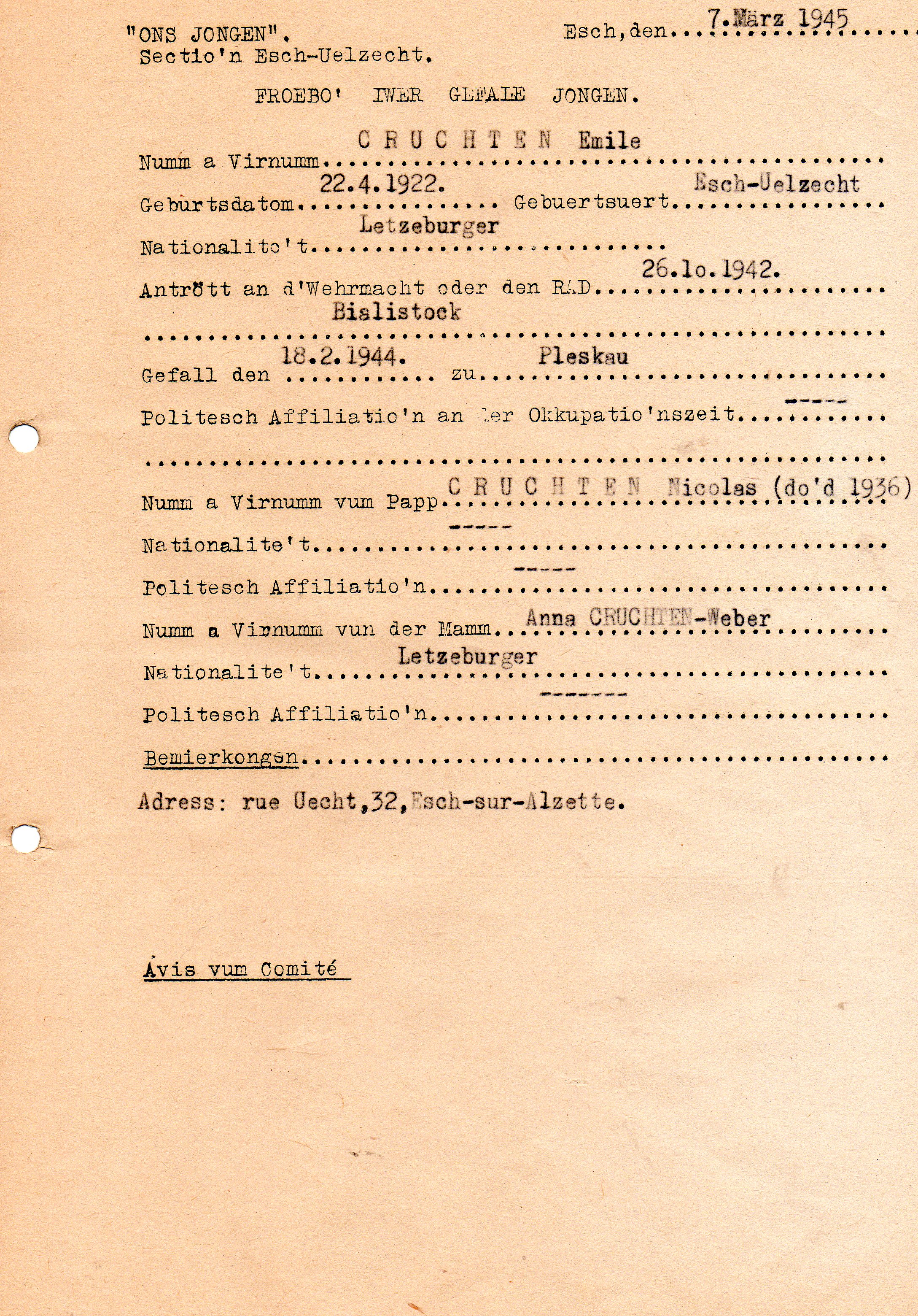 Divers Cruchten Emil.JPG Télécharger le document Cruchten_Emile_22041922_ESCH_ALZETTE.jpg Télécharger le document Img0960.jpg Télécharger le document