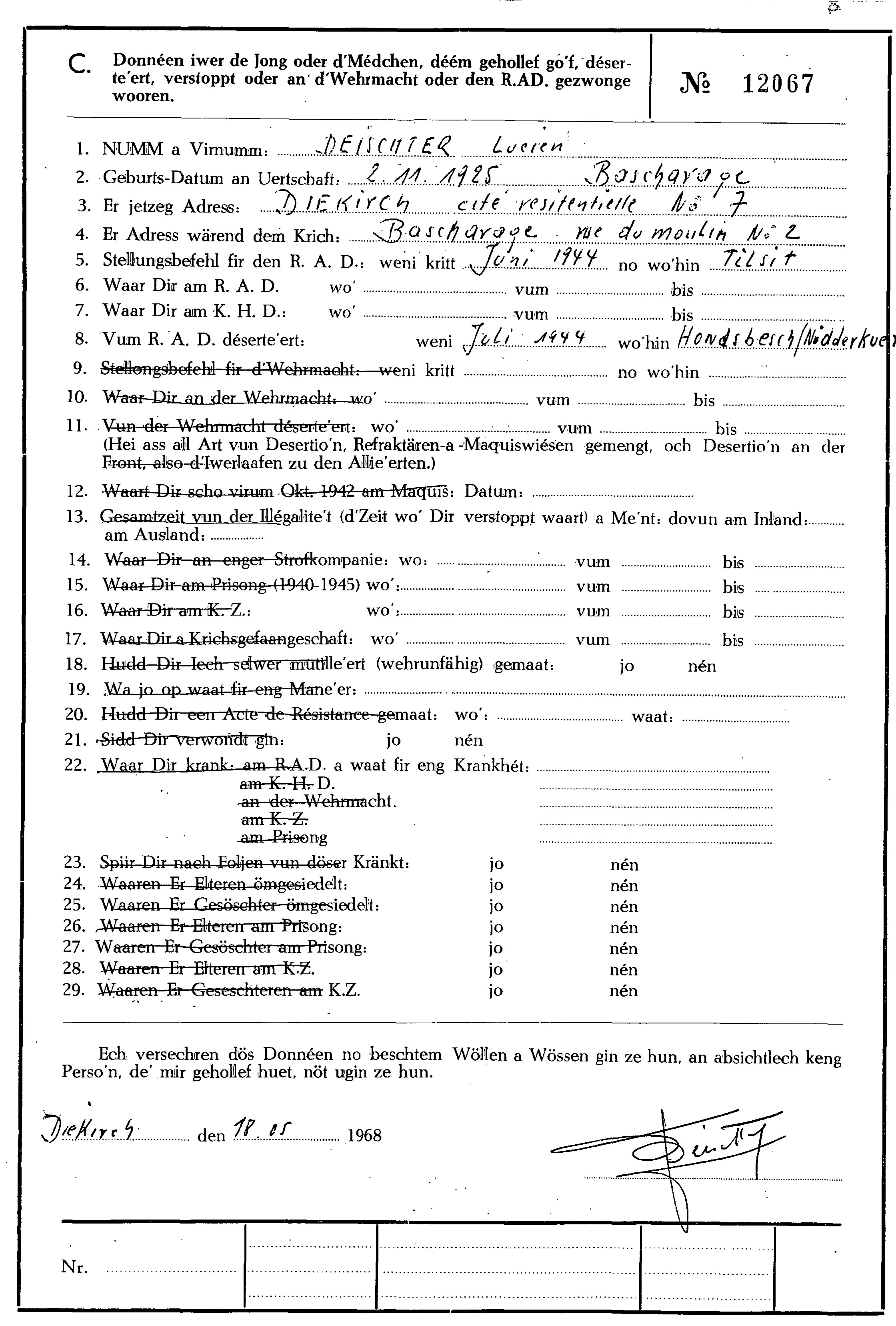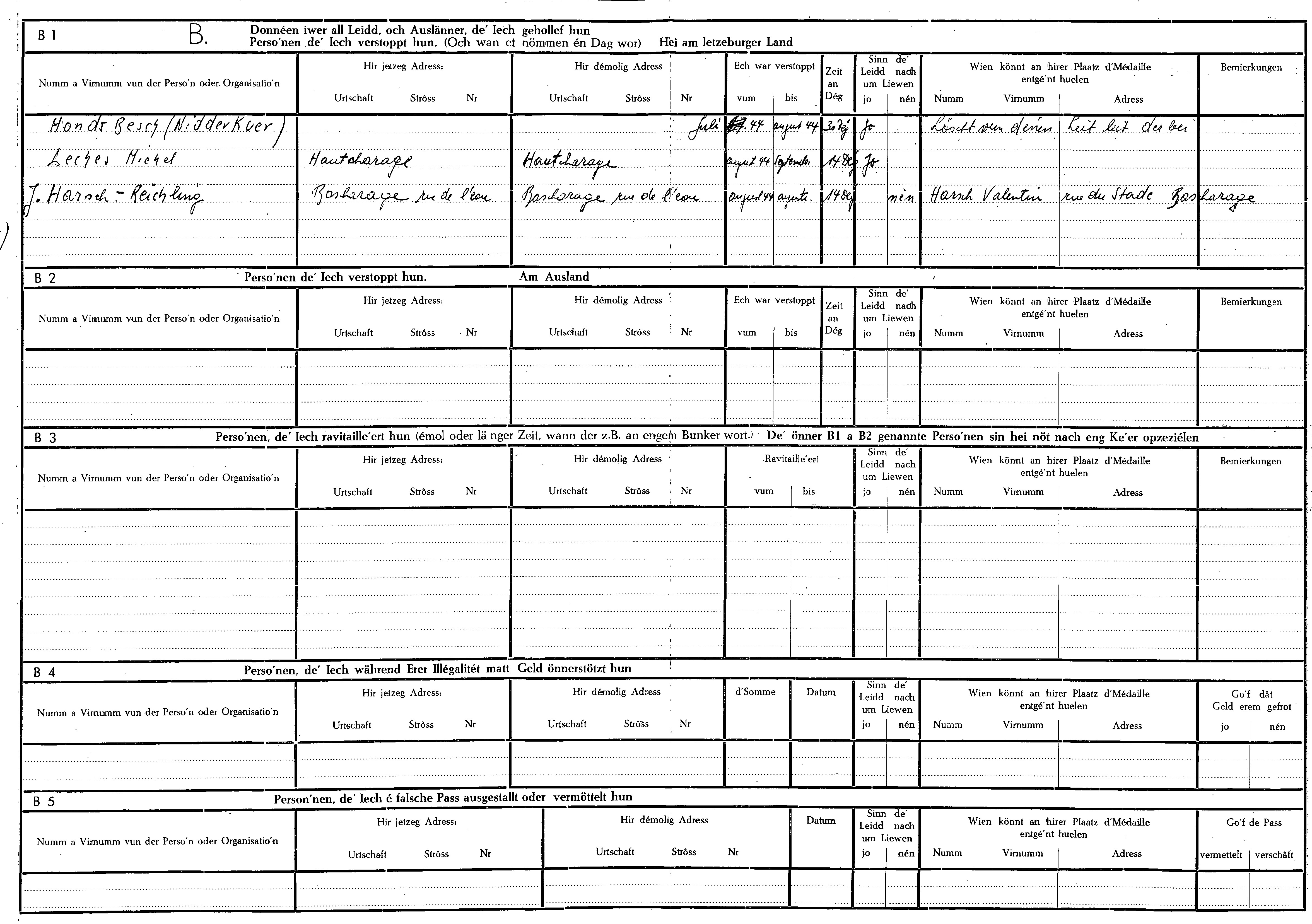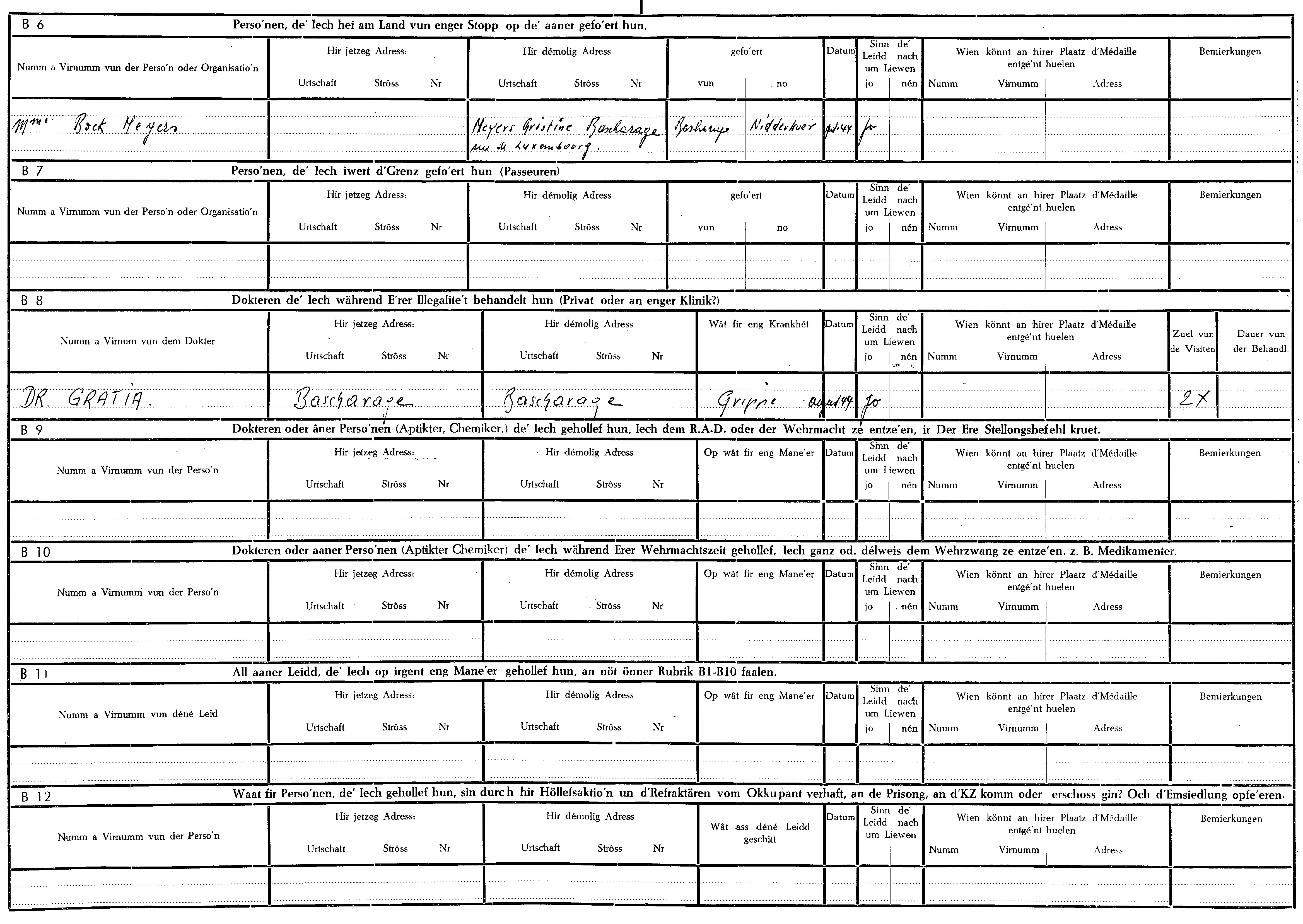 Nom, prénom, nom pendant l'occupation