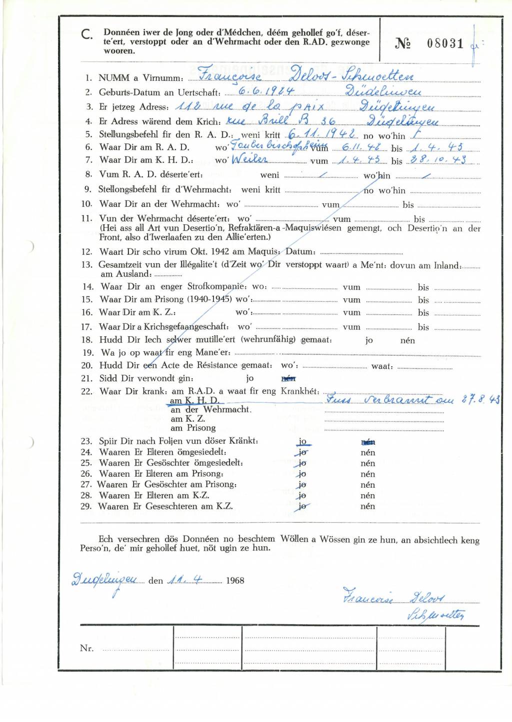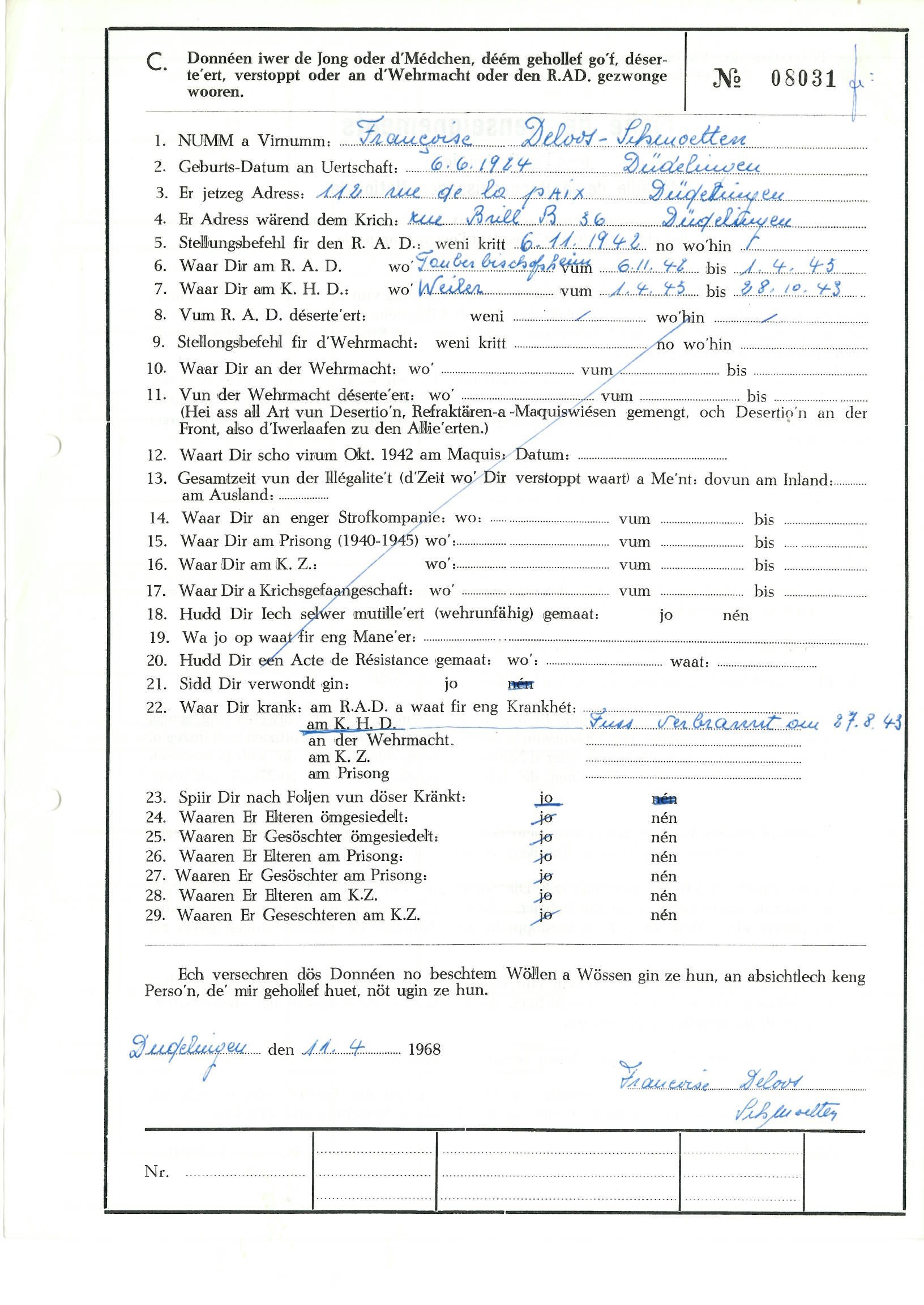 Nom, prénom, nom pendant l'occupation